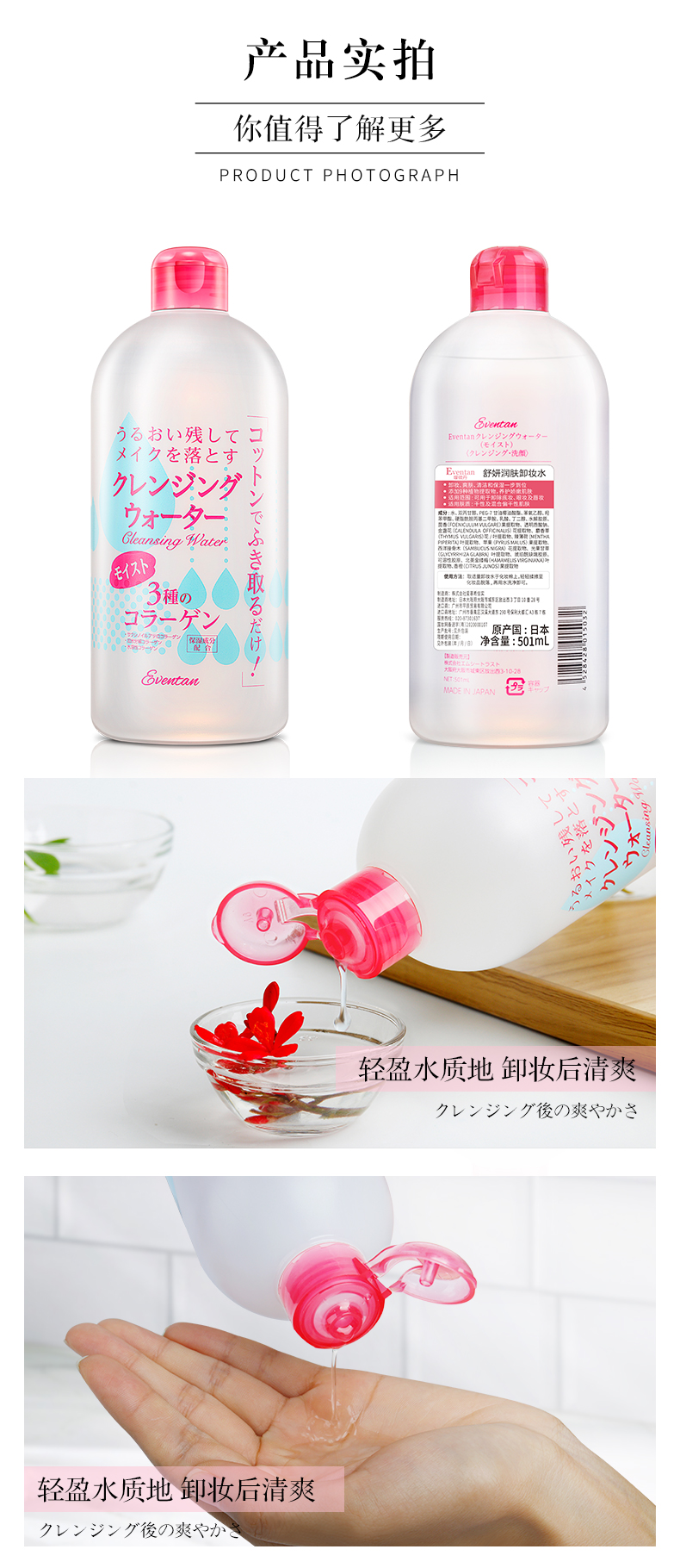 日本进口瑷微丹舒妍润肤超大容量卸妆水