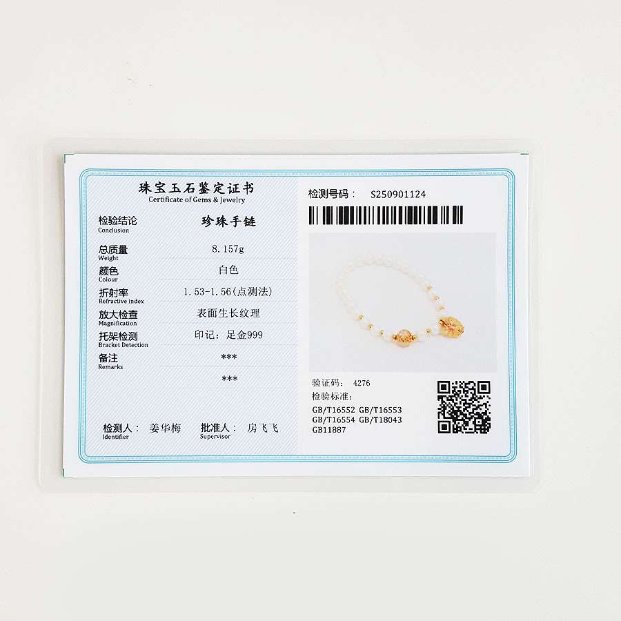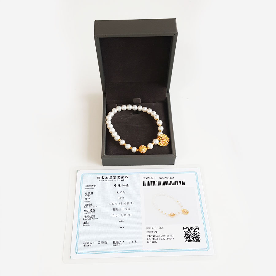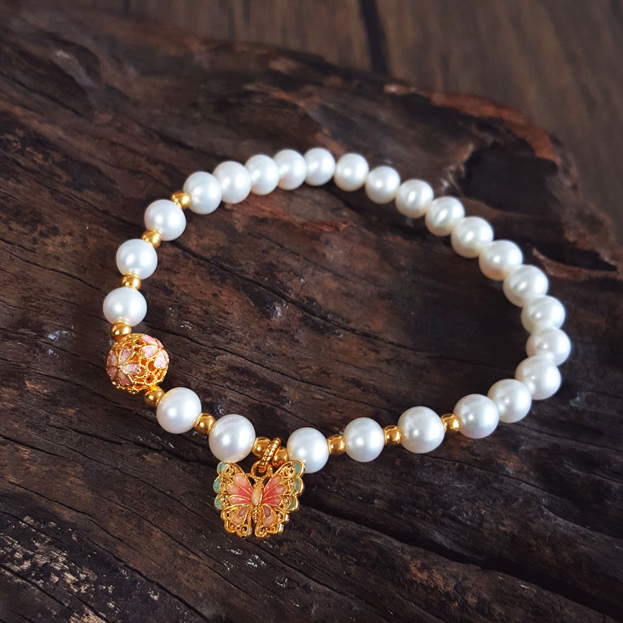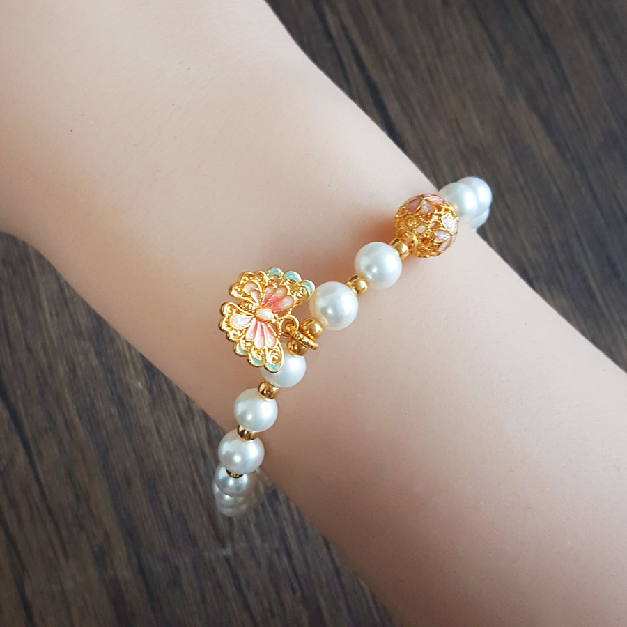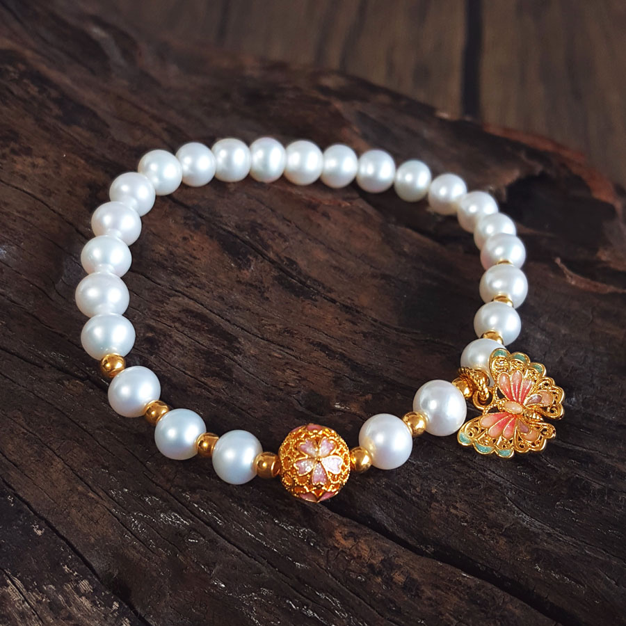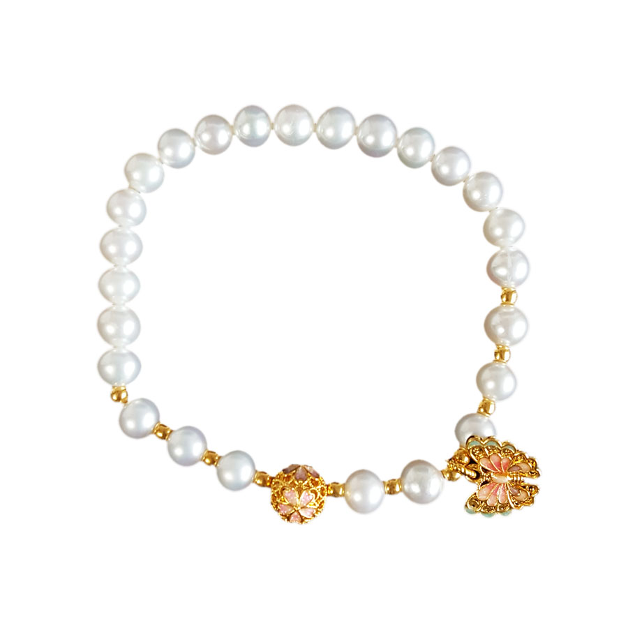 名称 | 足金珐琅蝴蝶和绣球饰品配约6.3MM天然珍珠手串 |