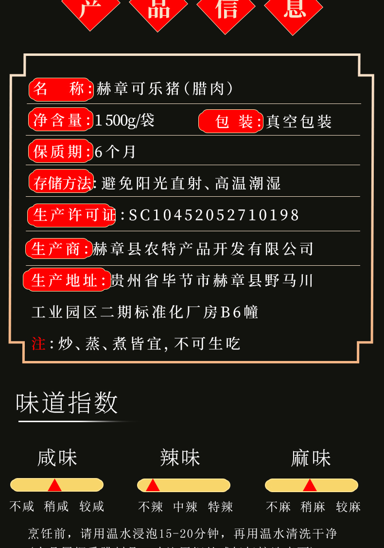 【地标】【非遗】贵州毕节赫章县黔玉超赫章可乐猪腊肉1.5kg/盒