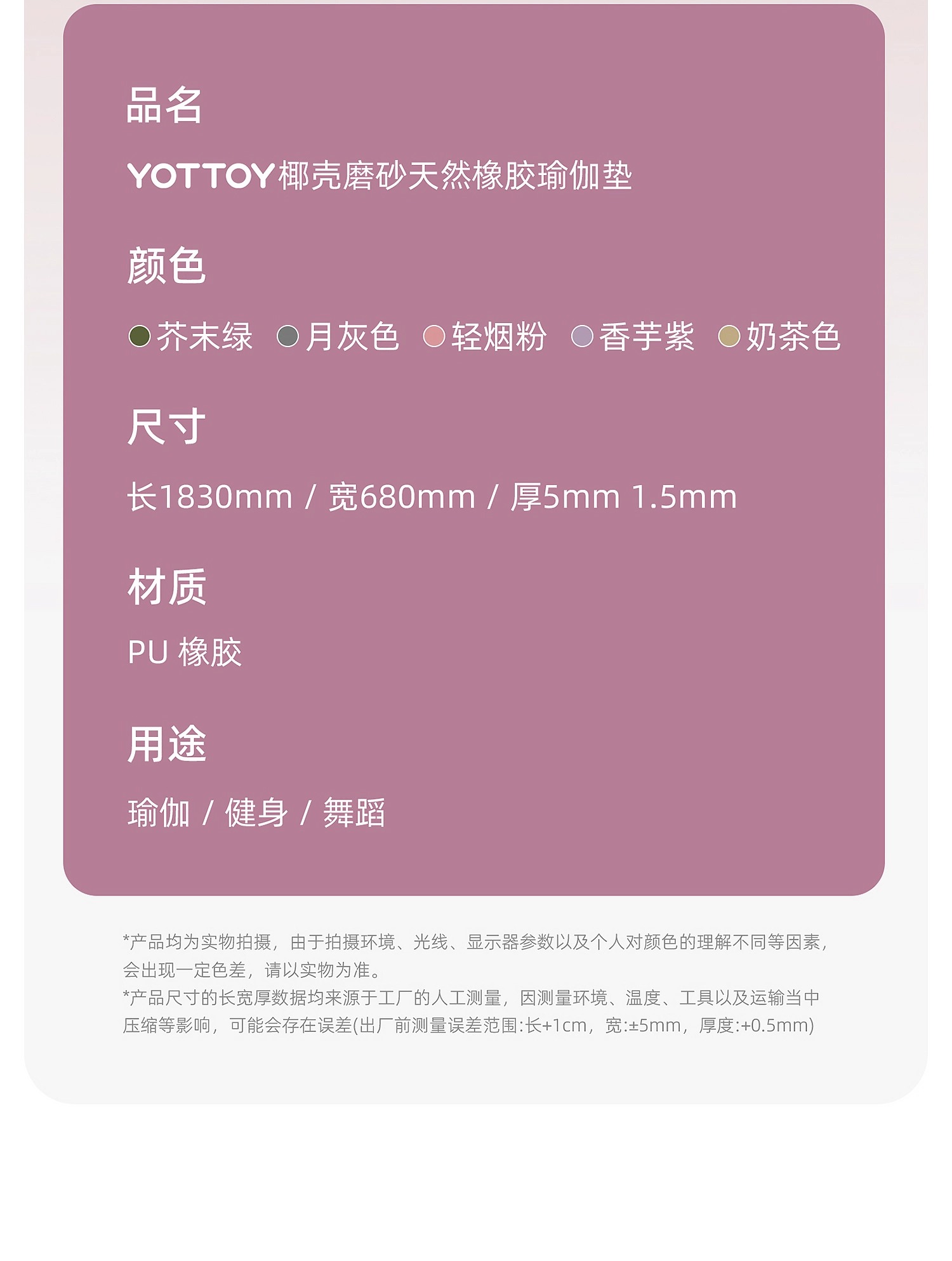 瑜伽垫【YOTTOY】椰壳瑜伽垫天然橡胶2025新款专业防滑pu家用健身垫减震静音