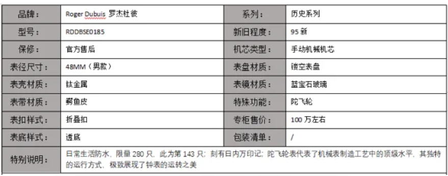 【95新】Roger Dubuis 罗杰杜彼历史系列RDDBSE0185钛金属48MM陀飞轮手动机械机芯男表 051022LV01