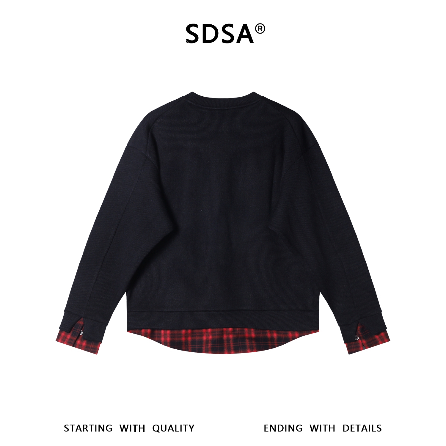 35702SDSA男士秋冬新款痞帅男装韩版潮牌下摆拼接圆领卫衣百搭时尚上衣