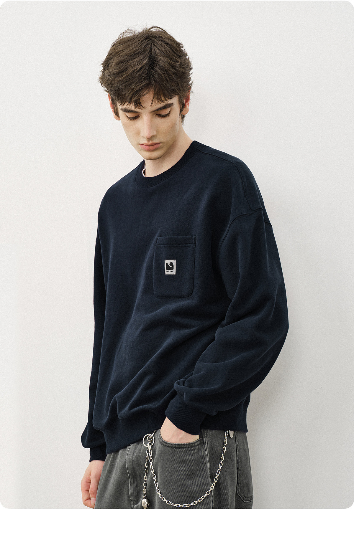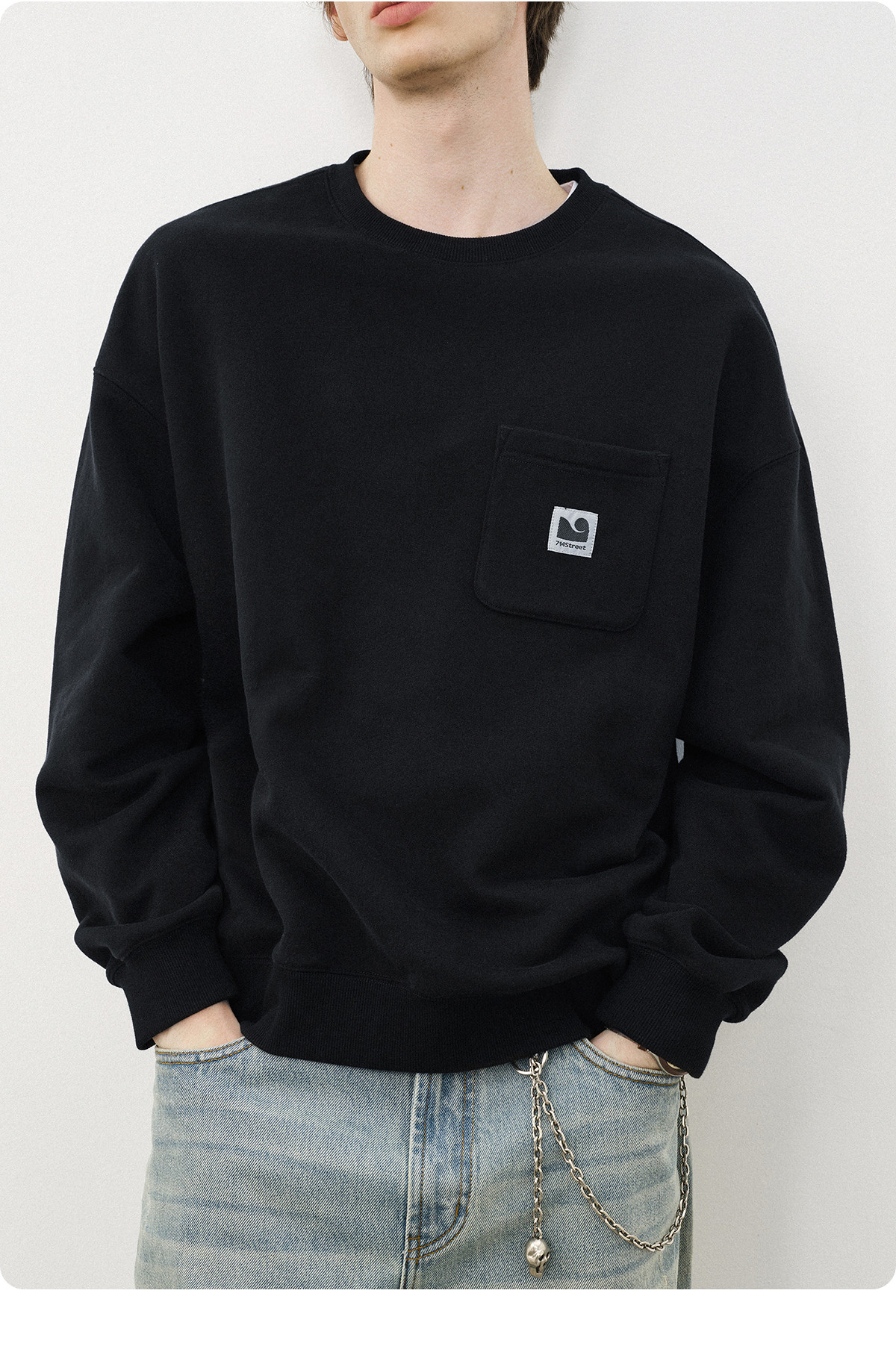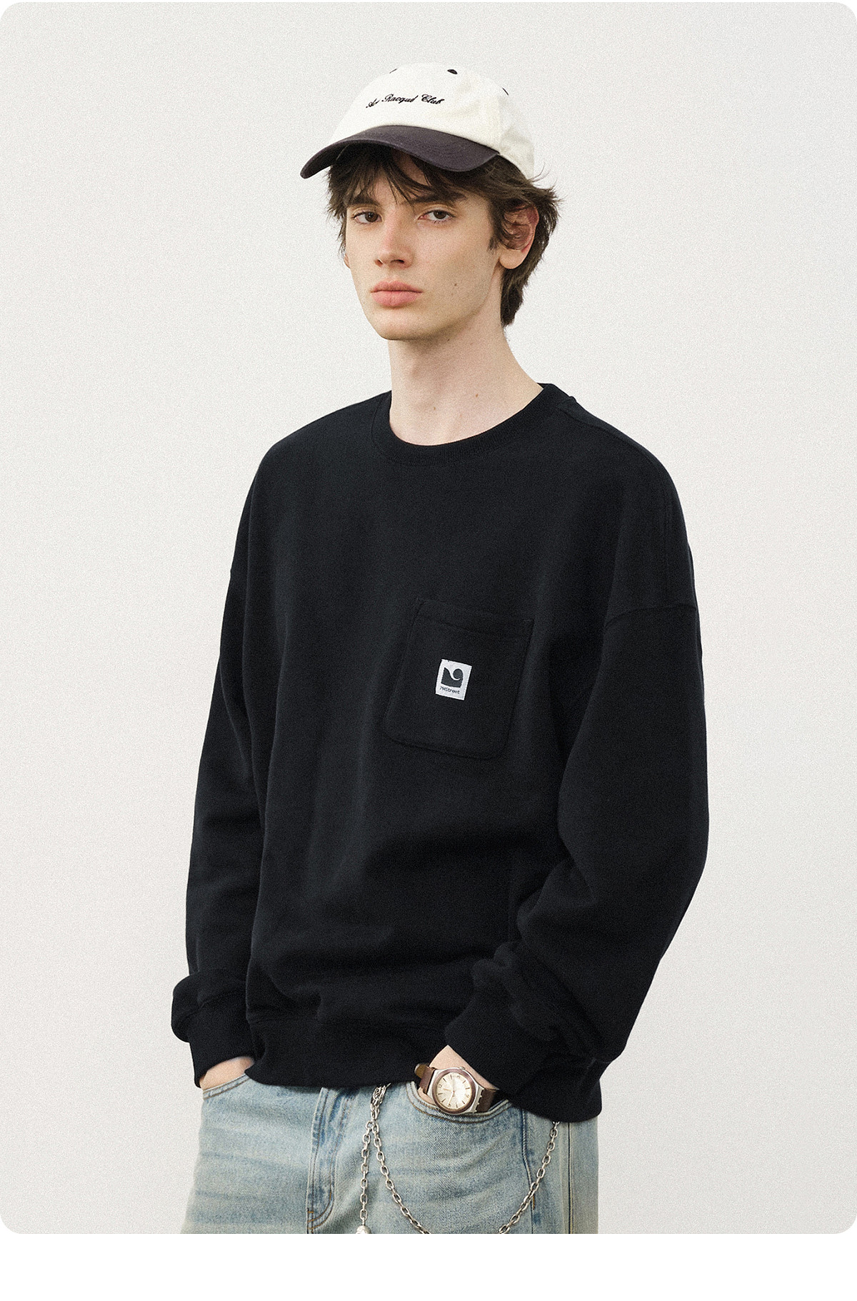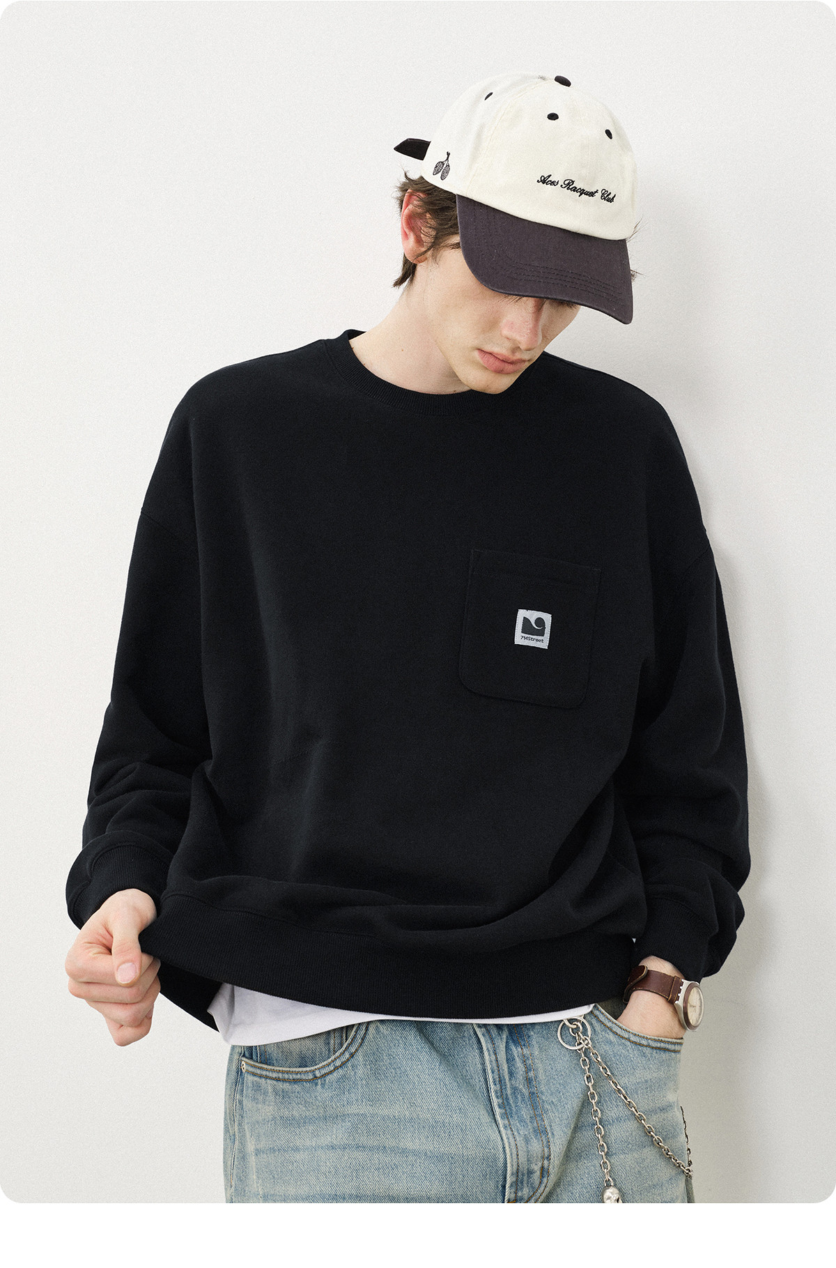 714street国潮宽松落肩口袋抓绒卫衣男2025秋冬新款情侣装长袖T恤