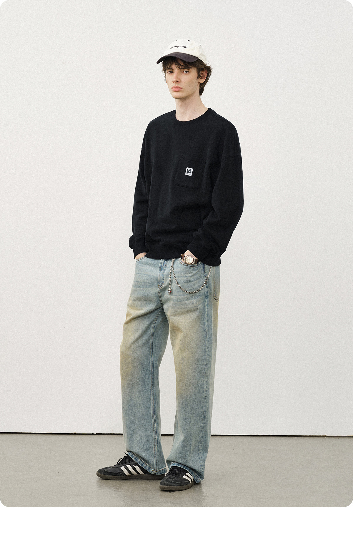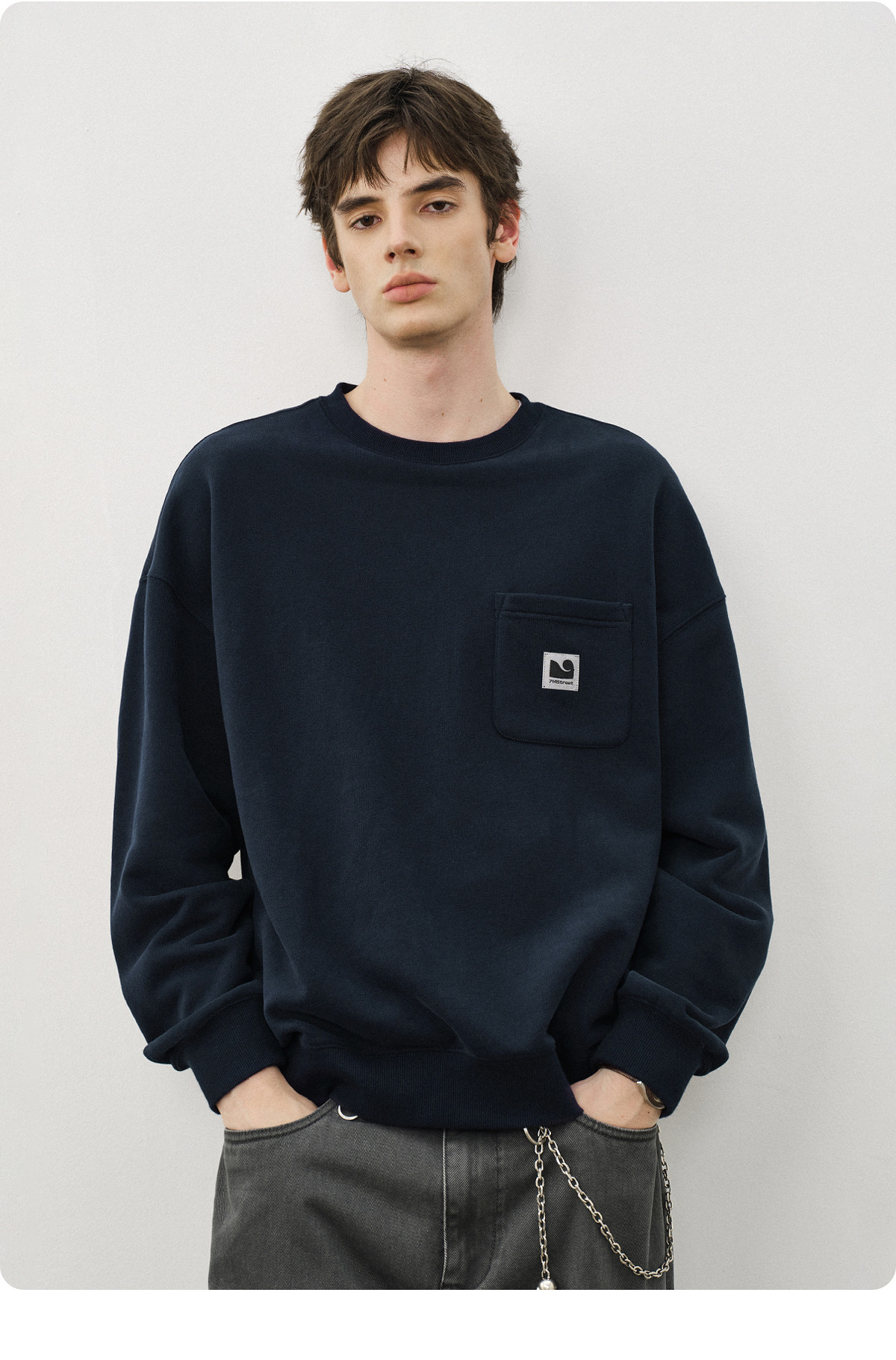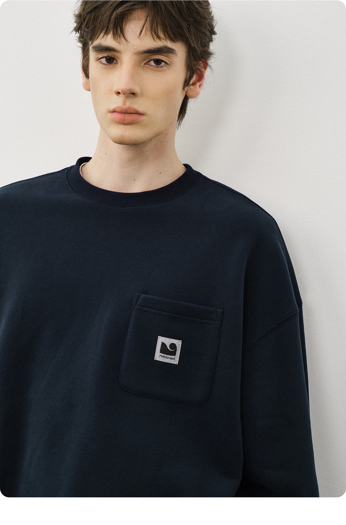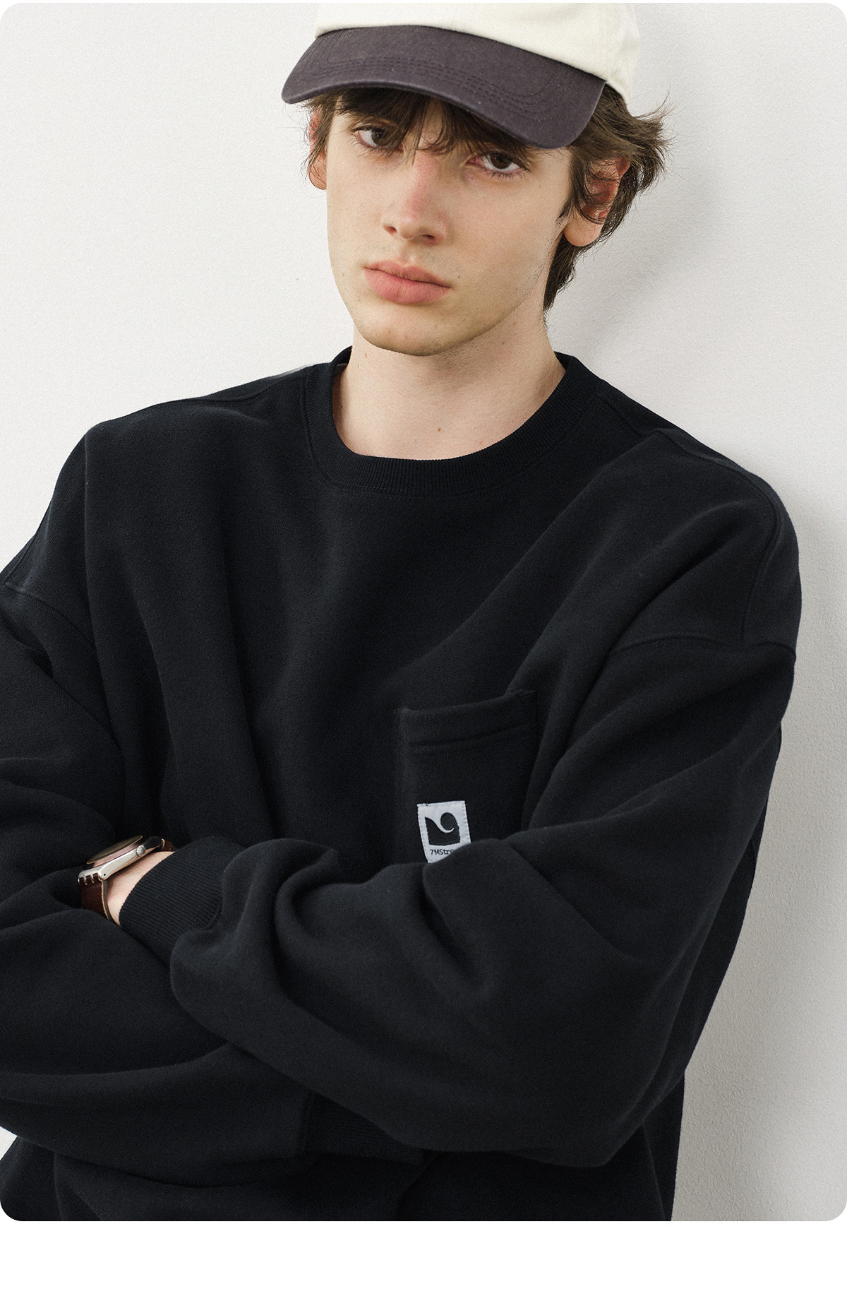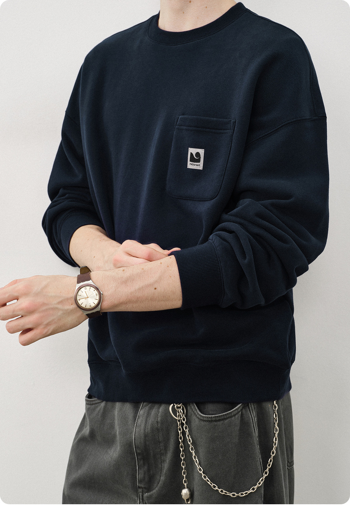 714street国潮宽松落肩口袋抓绒卫衣男2025秋冬新款情侣装长袖T恤