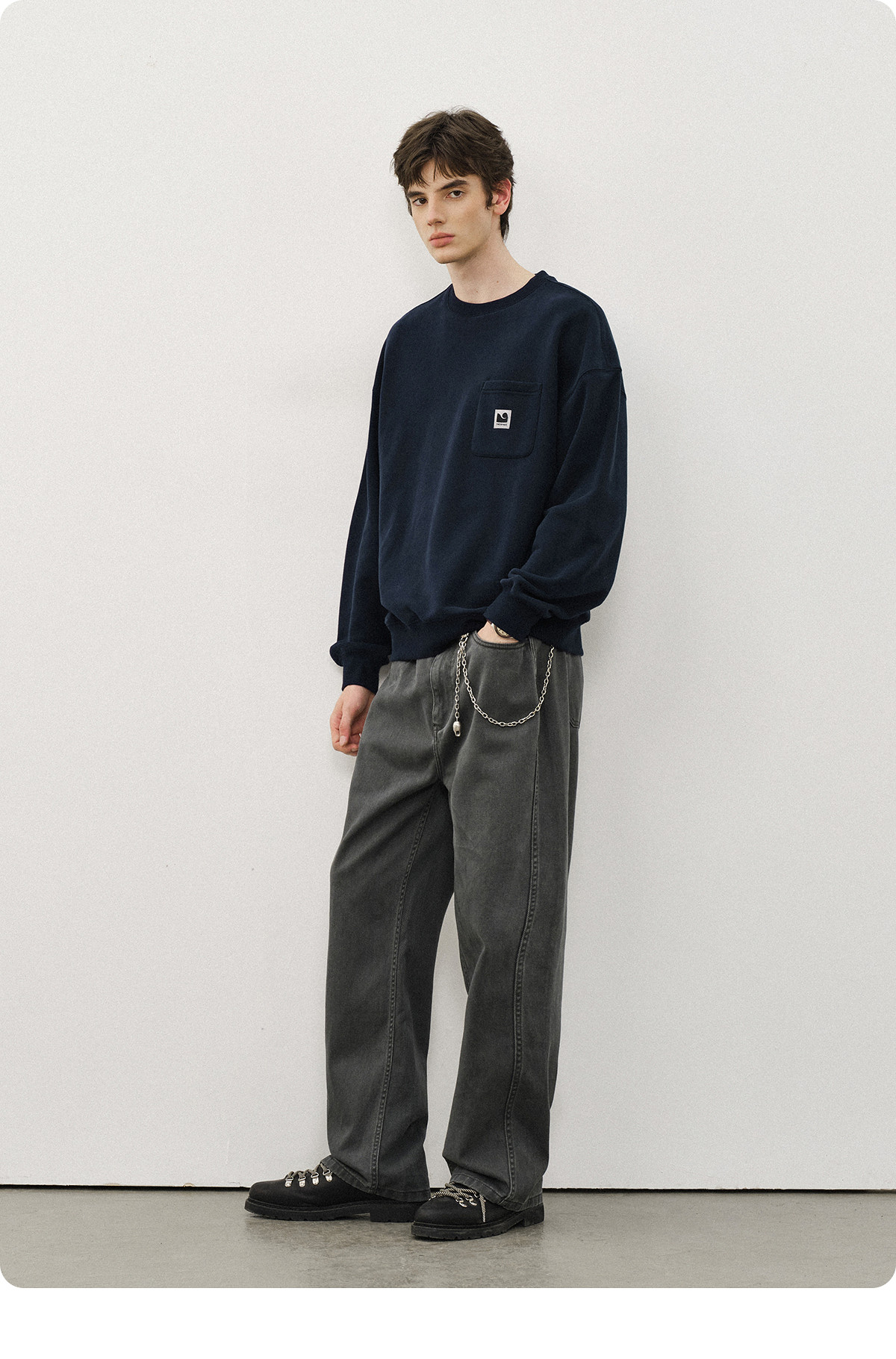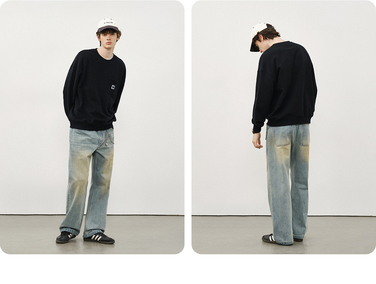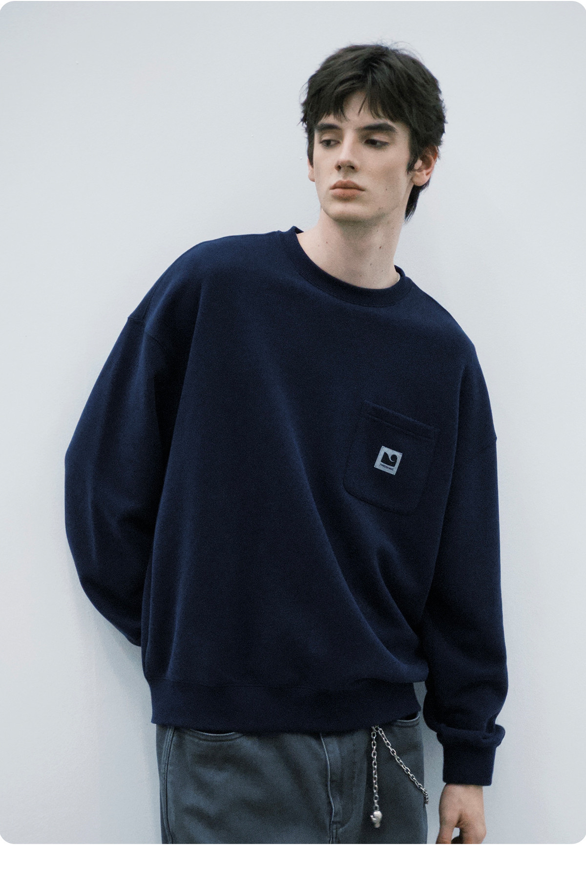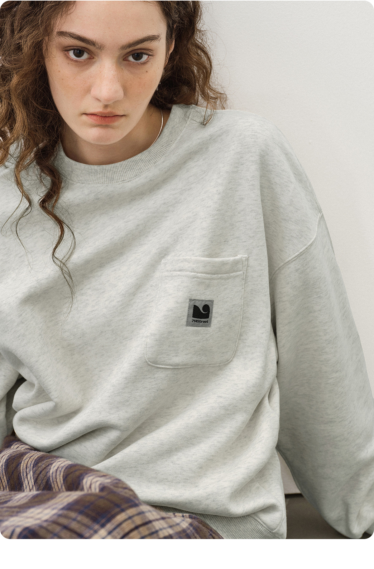 714street国潮宽松落肩口袋抓绒卫衣男2025秋冬新款情侣装长袖T恤