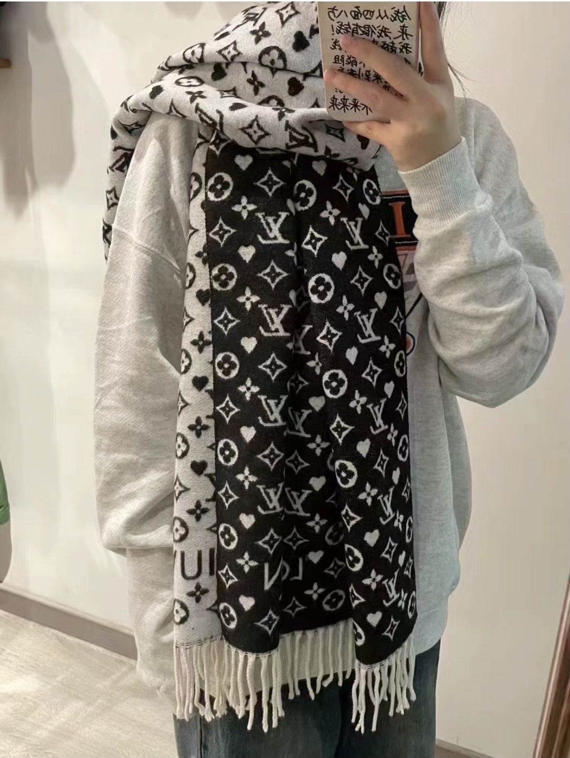 LV又一款秋冬款围巾,老花是LV最时髦的设计!!此款的特别之处就在于款式是Lv最经典最耐看的Monogram老花,又是长巾设计,非常好驾驭!!经典奢华!秋冬配这样的围巾真心好看!!!