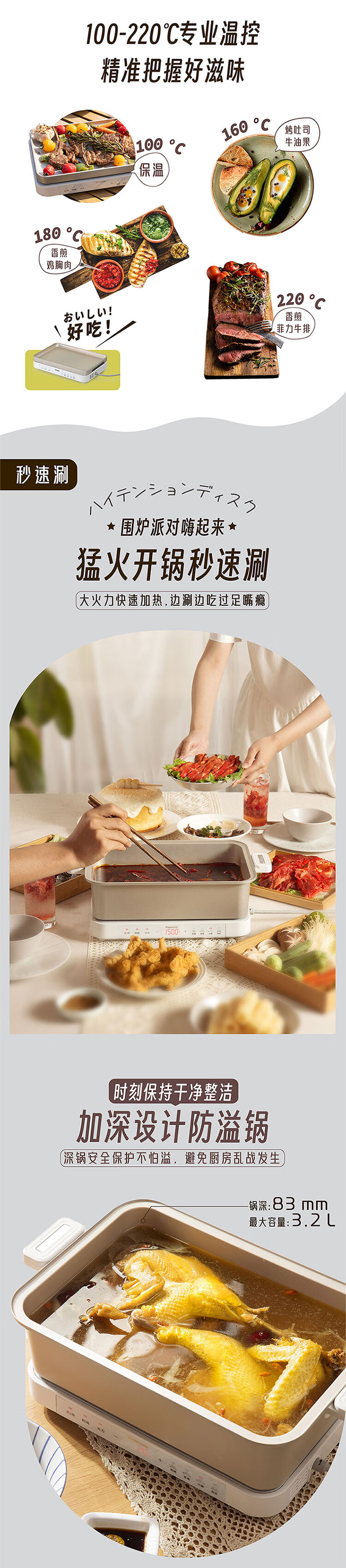 松下(Panasonic)多用途锅 烧烤盘 家用电火锅电蒸锅 多功能锅 大功率分体式料理烧烤蒸煮一体锅NF-H1