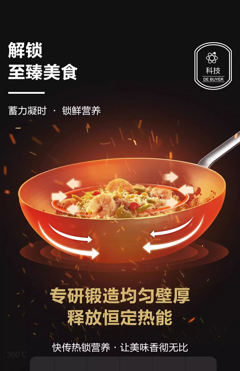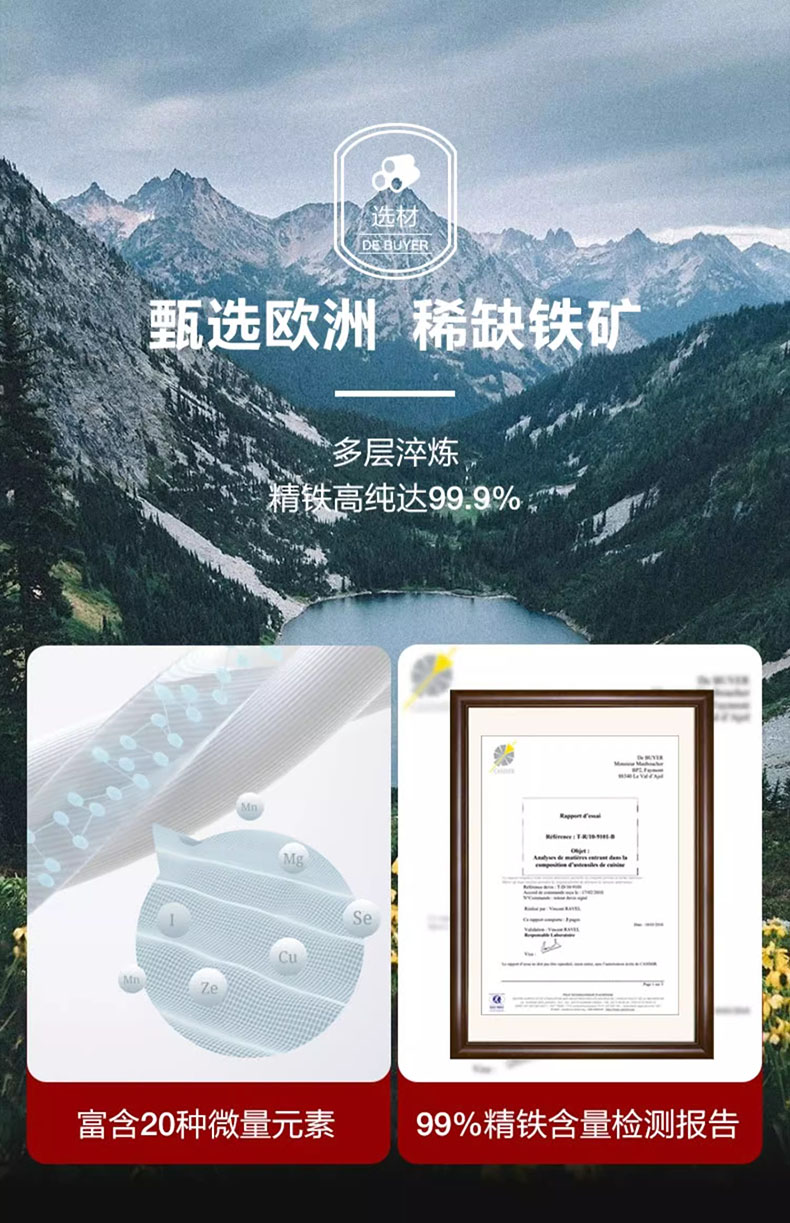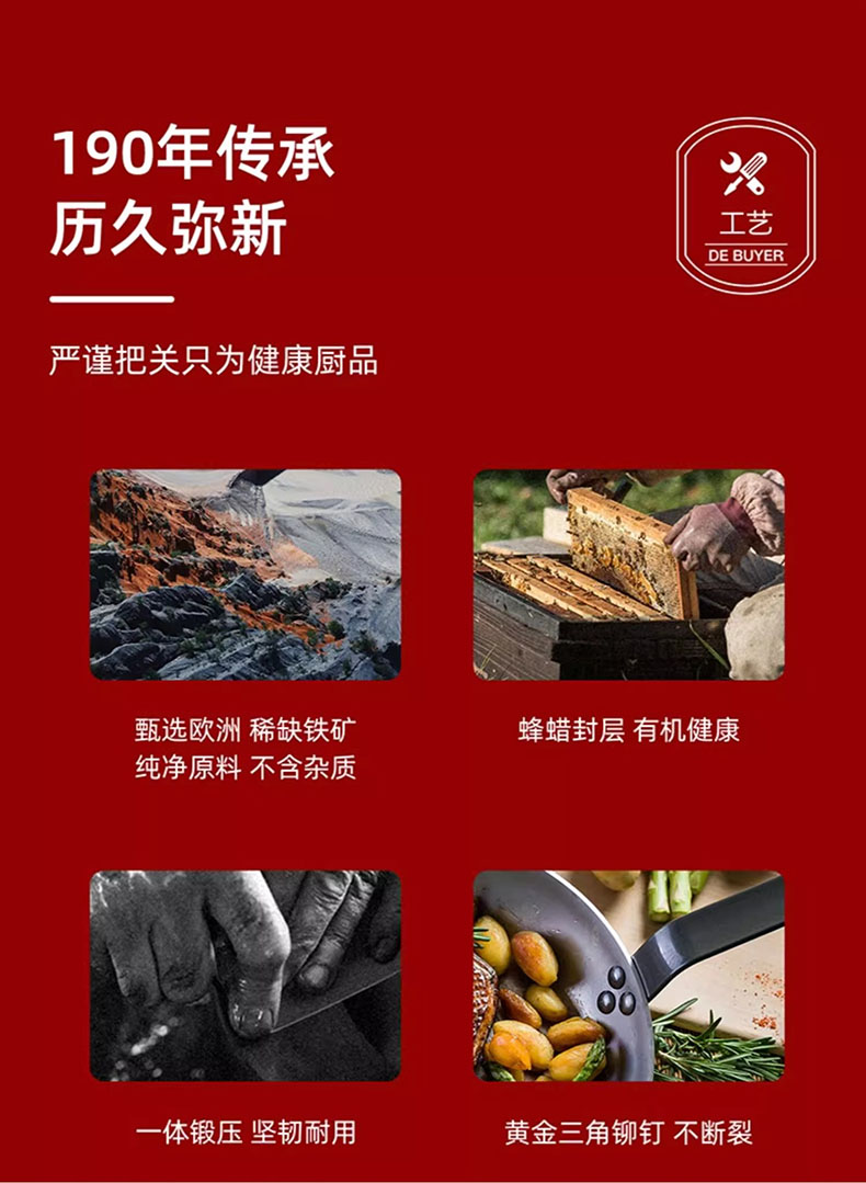 "DeBuyer德佰尔 MINERAL-B蜂蜡精铁 中式炒锅-蜂蜡-钢柄"