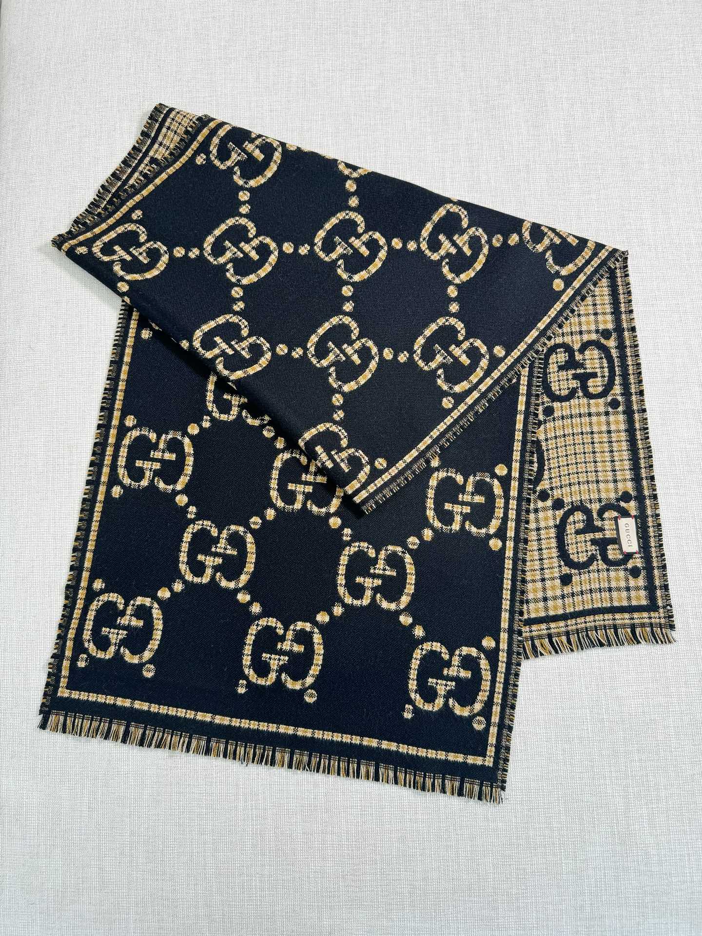 最大区别于市场,围巾两侧直线精美锁边,两头车线不掉须!全新对版专店,高级定位双𝐆提花,颜色一流、细节处理更到位 ,克重不用说 标签也是全新的!