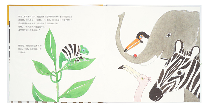 马克斯是只变色龙,或者说是一个技巧高超的“变身大师”。他十分在乎别人对他的看法,总喜欢把自己的皮肤变得和其他动物一样。在一次聚会上,有朋友问他:马克斯,你原来是什么样子的呢?这可把马克斯难倒了…… 变色龙如何把自己变为一条变色龙呢? ![]() |