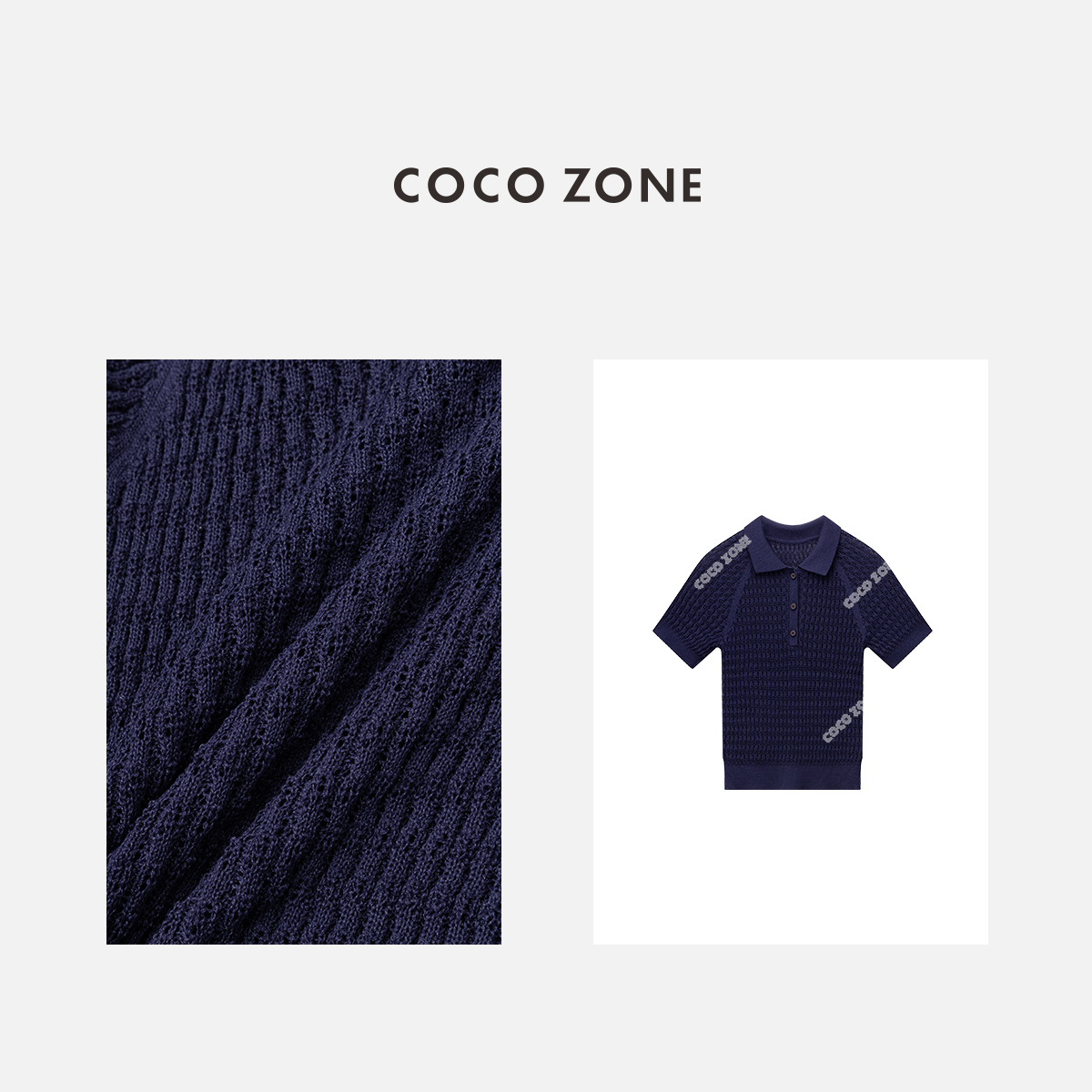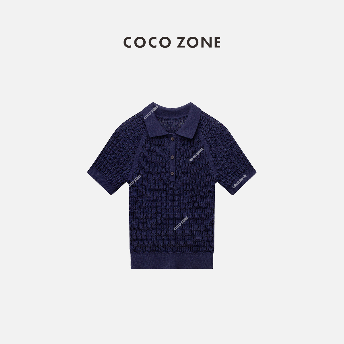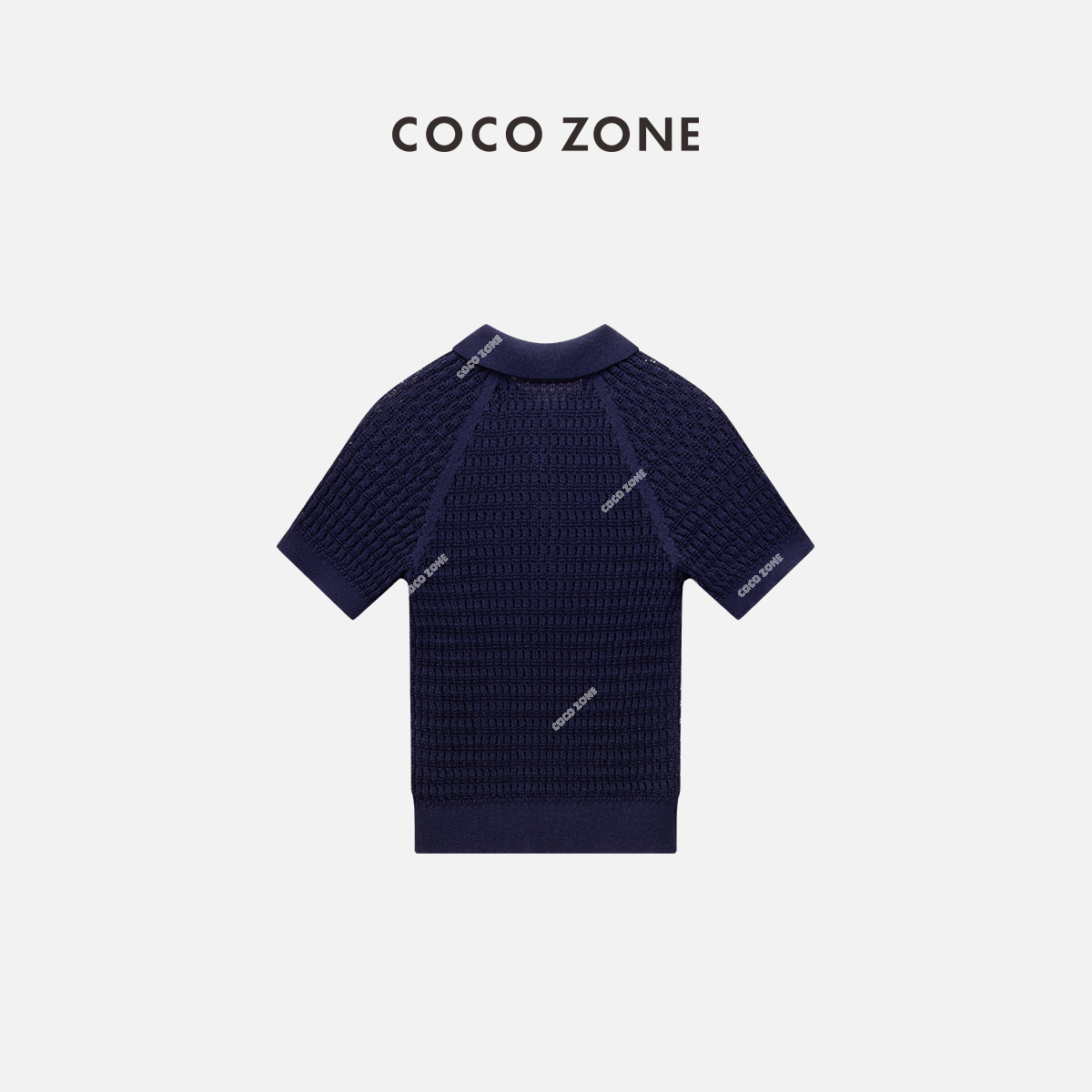COCO ZONE2024”艾蓝“时尚设计感POLO领针织衫短袖修身上衣CC1B0777