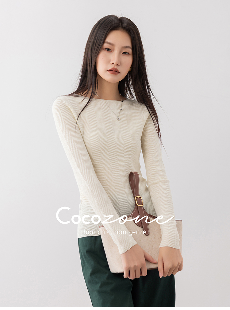 COO ZONE 刘一一 "鱼骨纹打底”岛精18针毛织上衣 CD2A2053