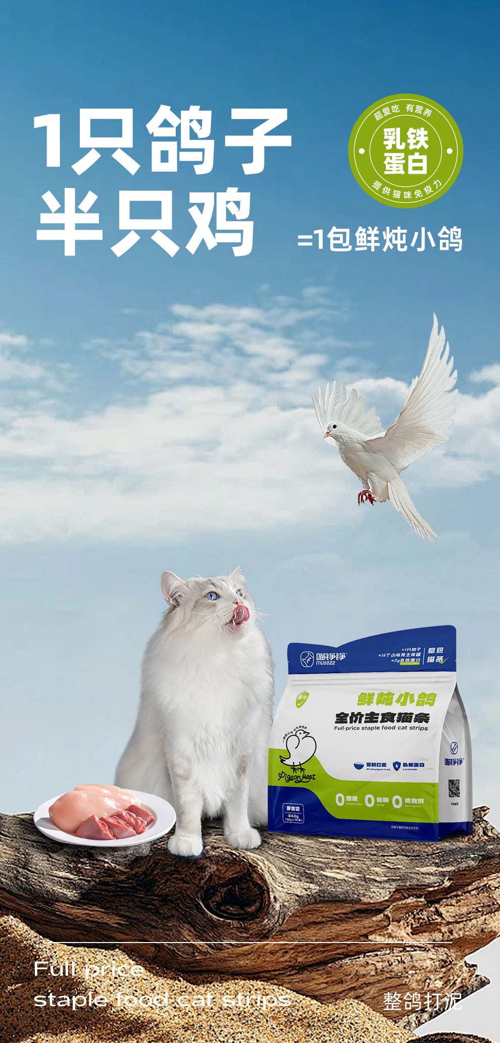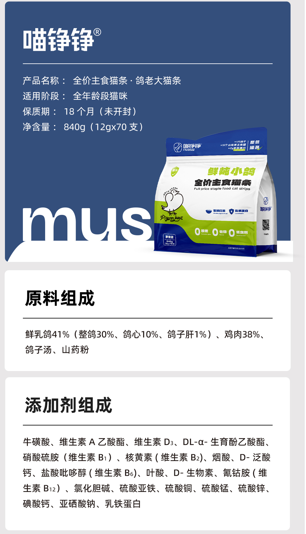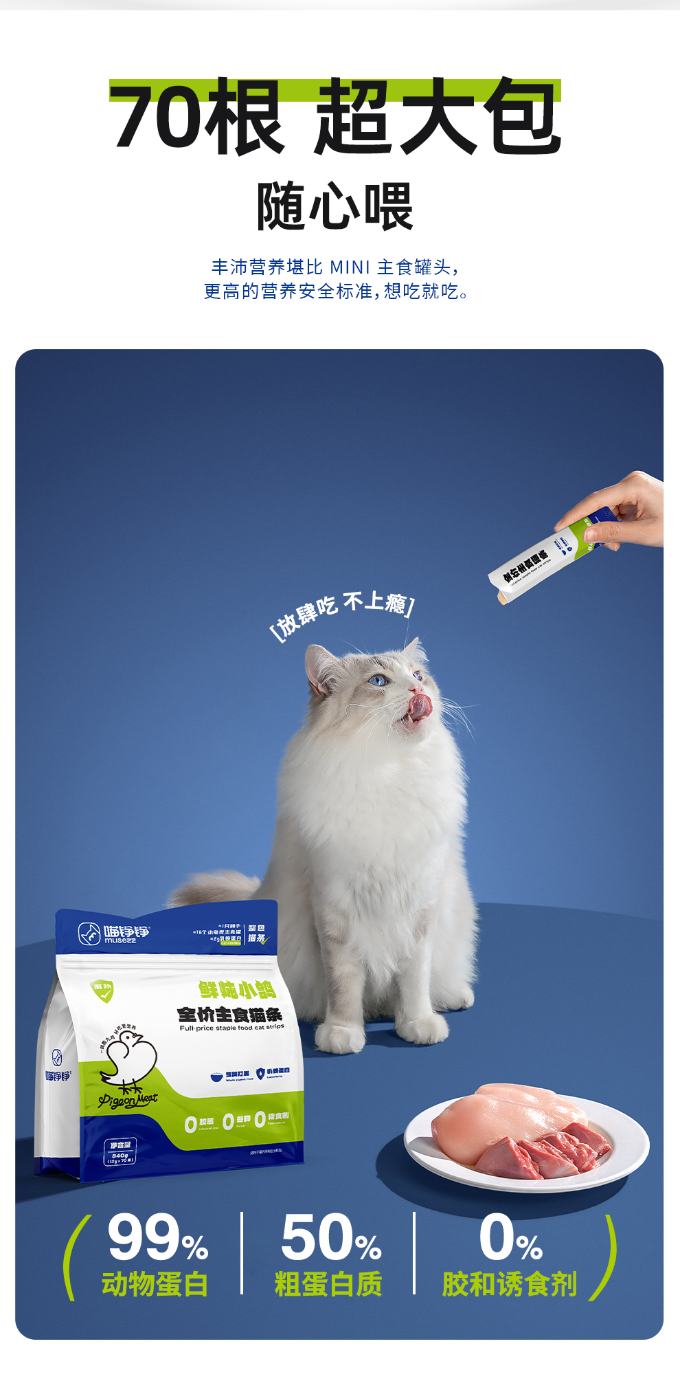 喵铮铮鸽老大全价主食猫条 12g*70支 低敏营养鸽肉湿粮零食