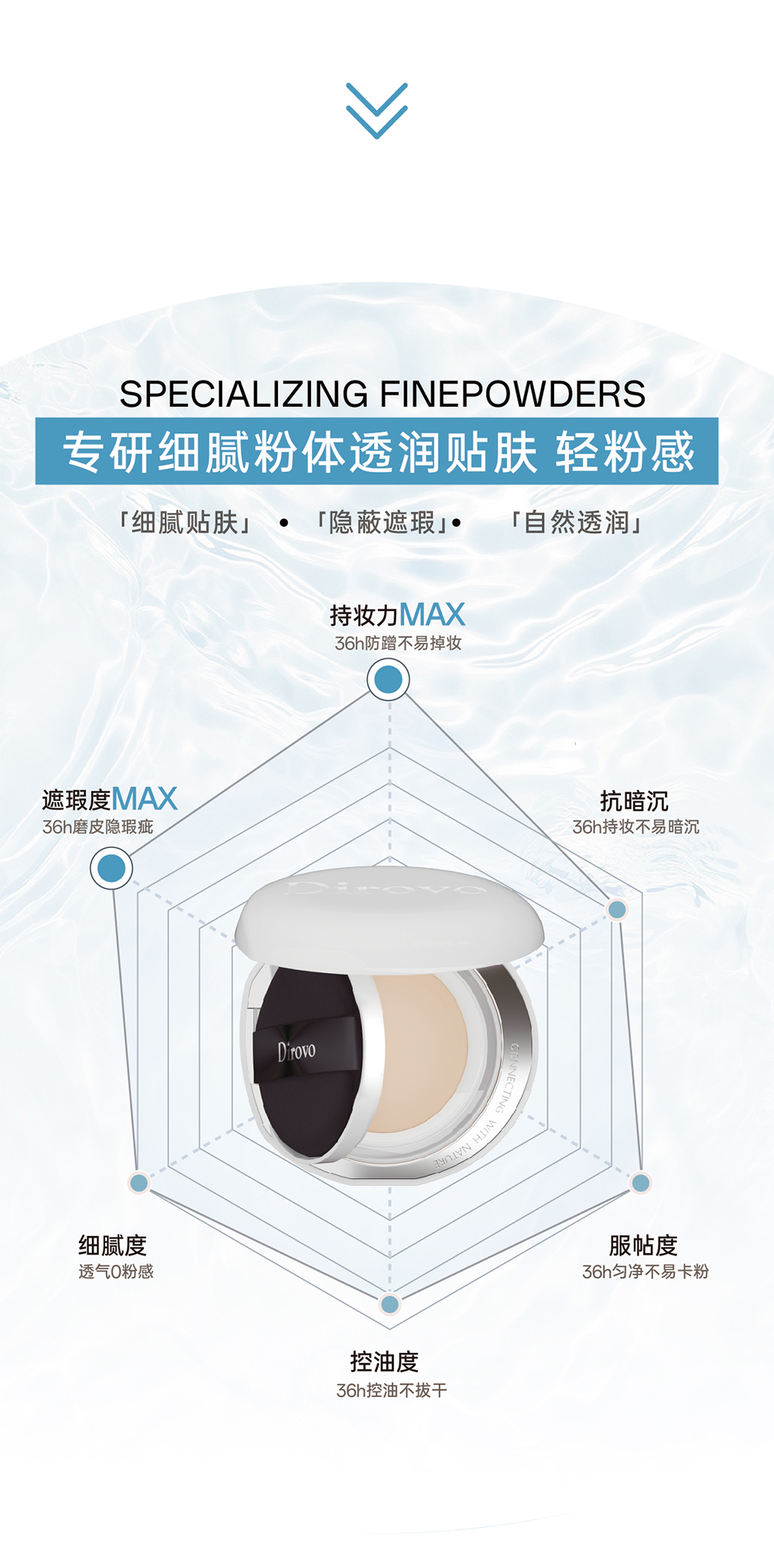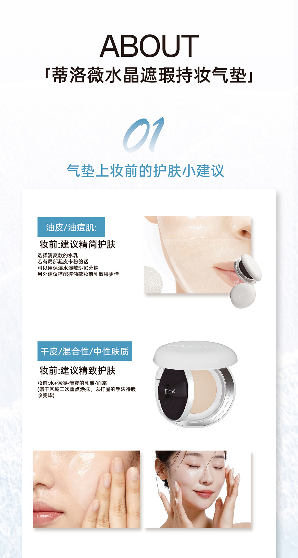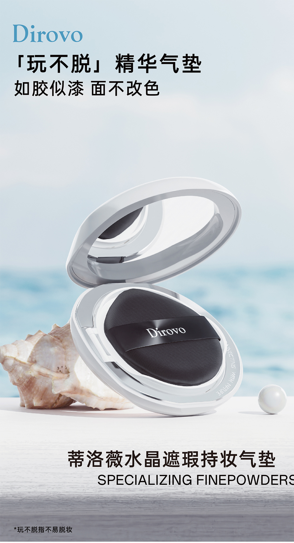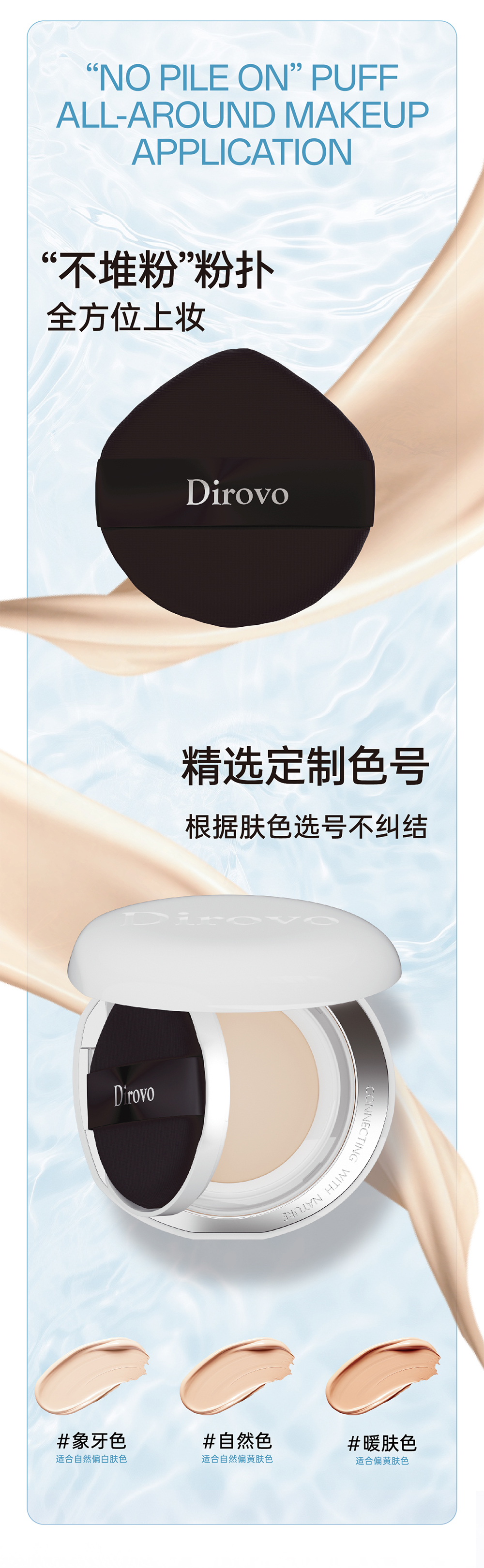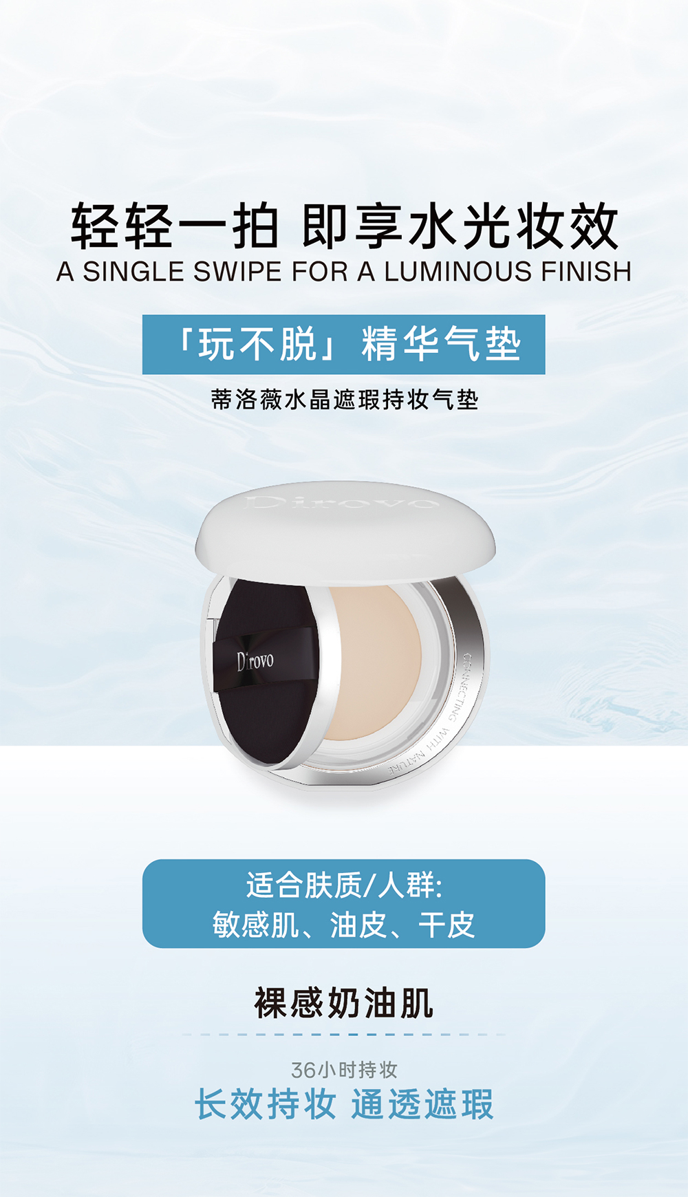 蒂洛薇臻颜沁润精华液+白色水晶遮瑕持妆气垫+波浪盖水散粉【粉扑颜色随机发】