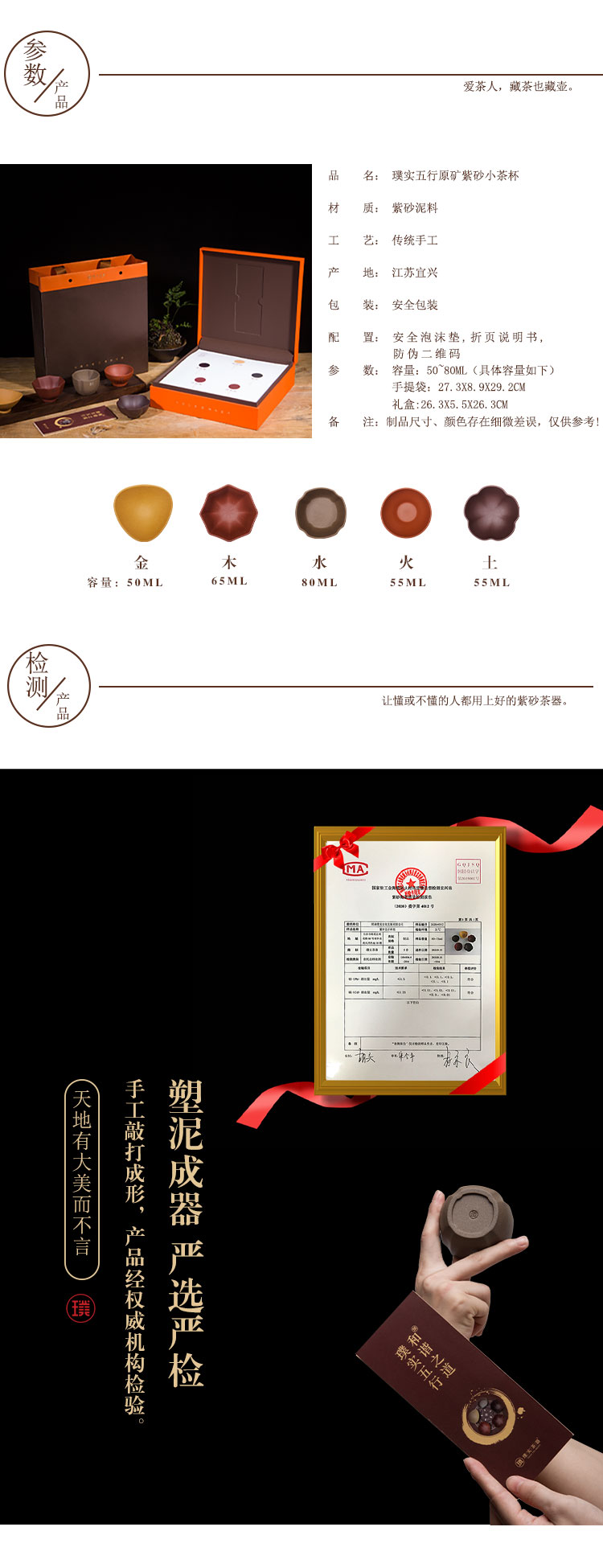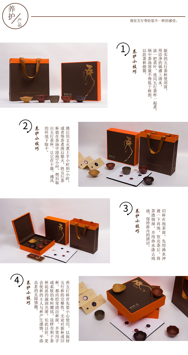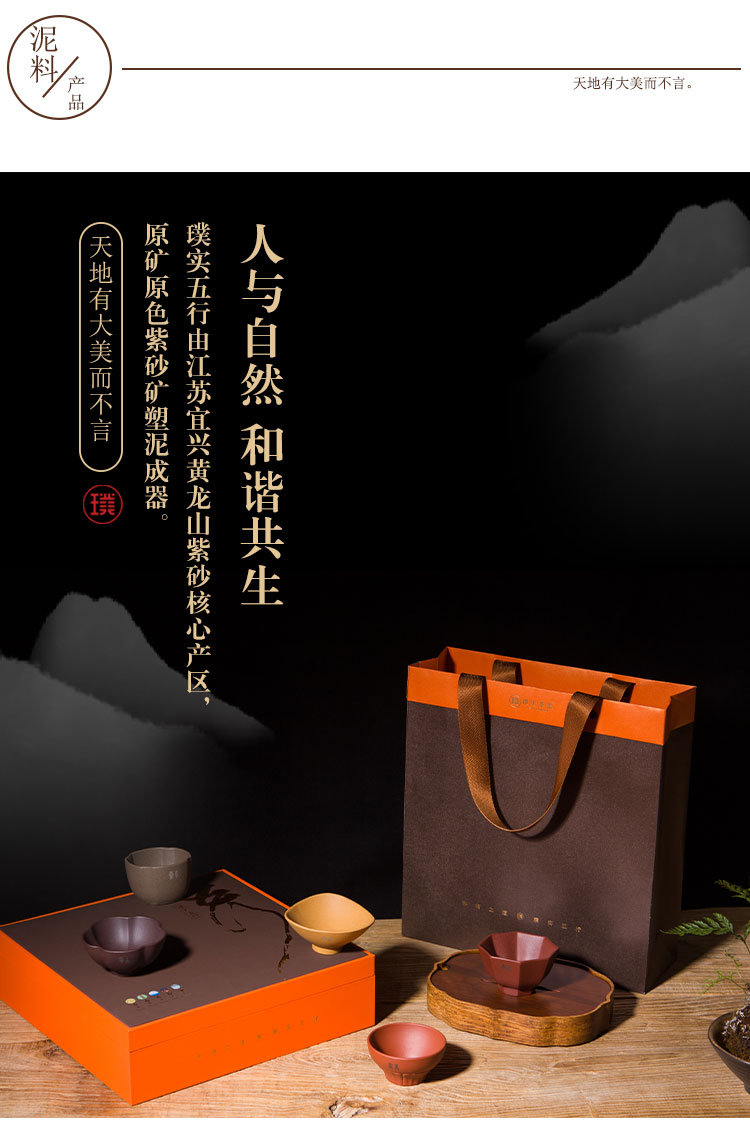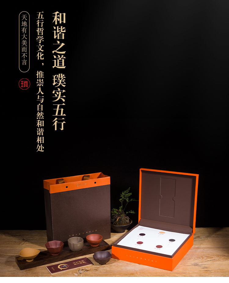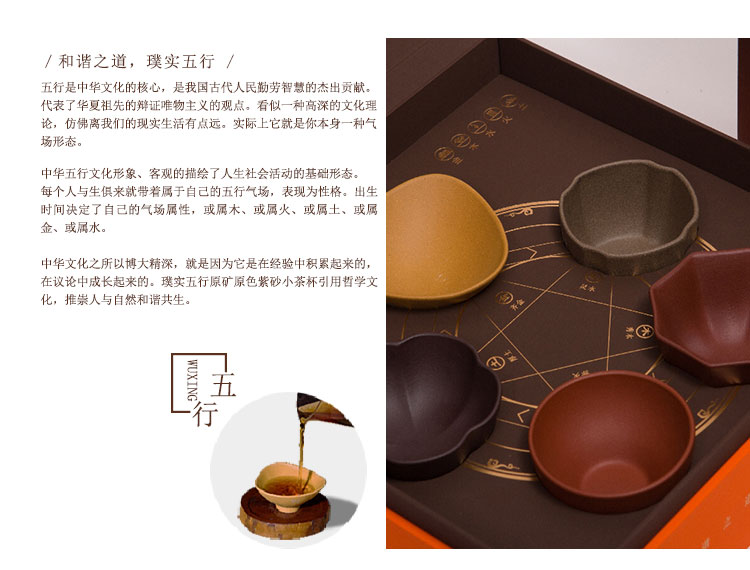 璞实茶器 璞实五行宜兴原矿紫砂五色杯品茗杯创意茶具礼品套装