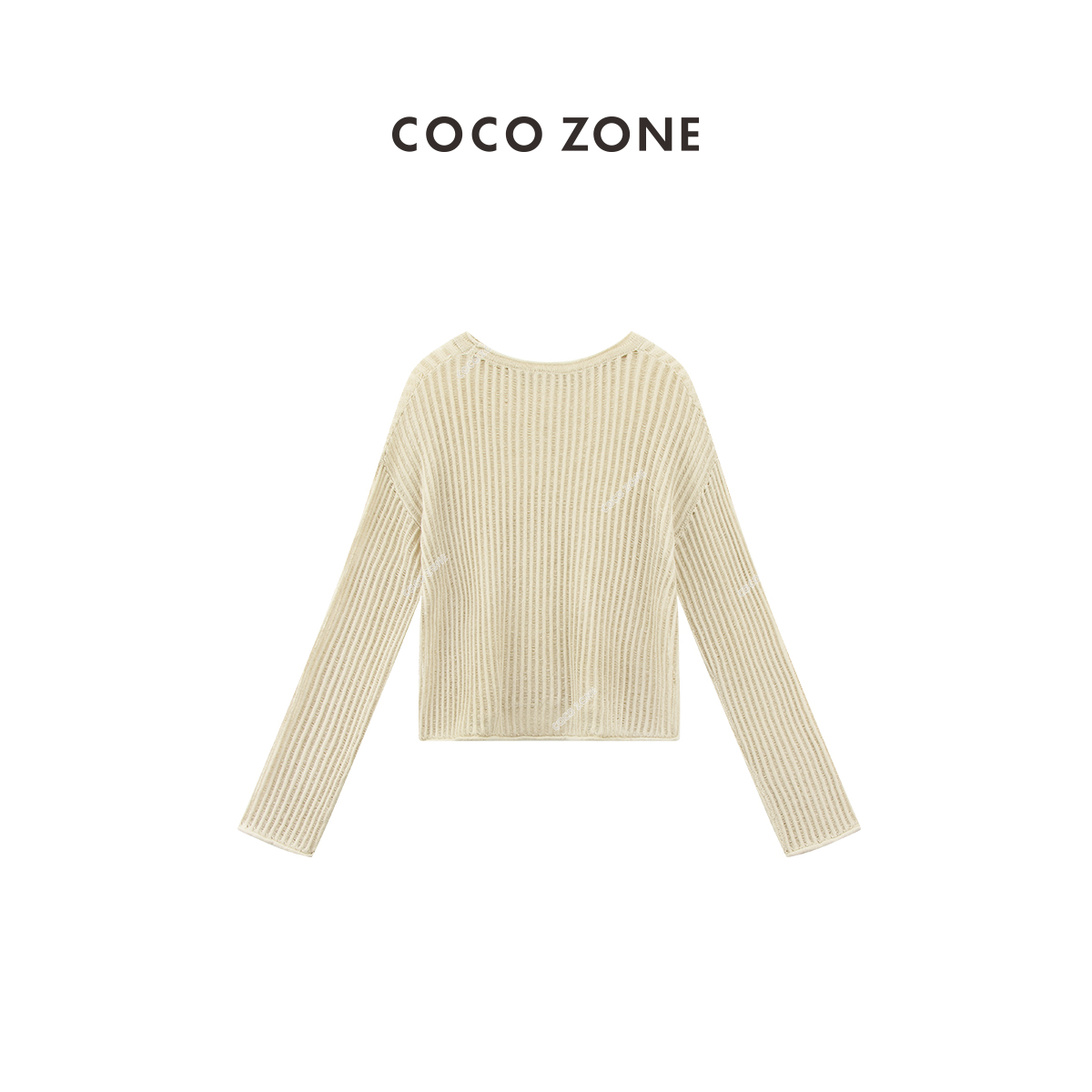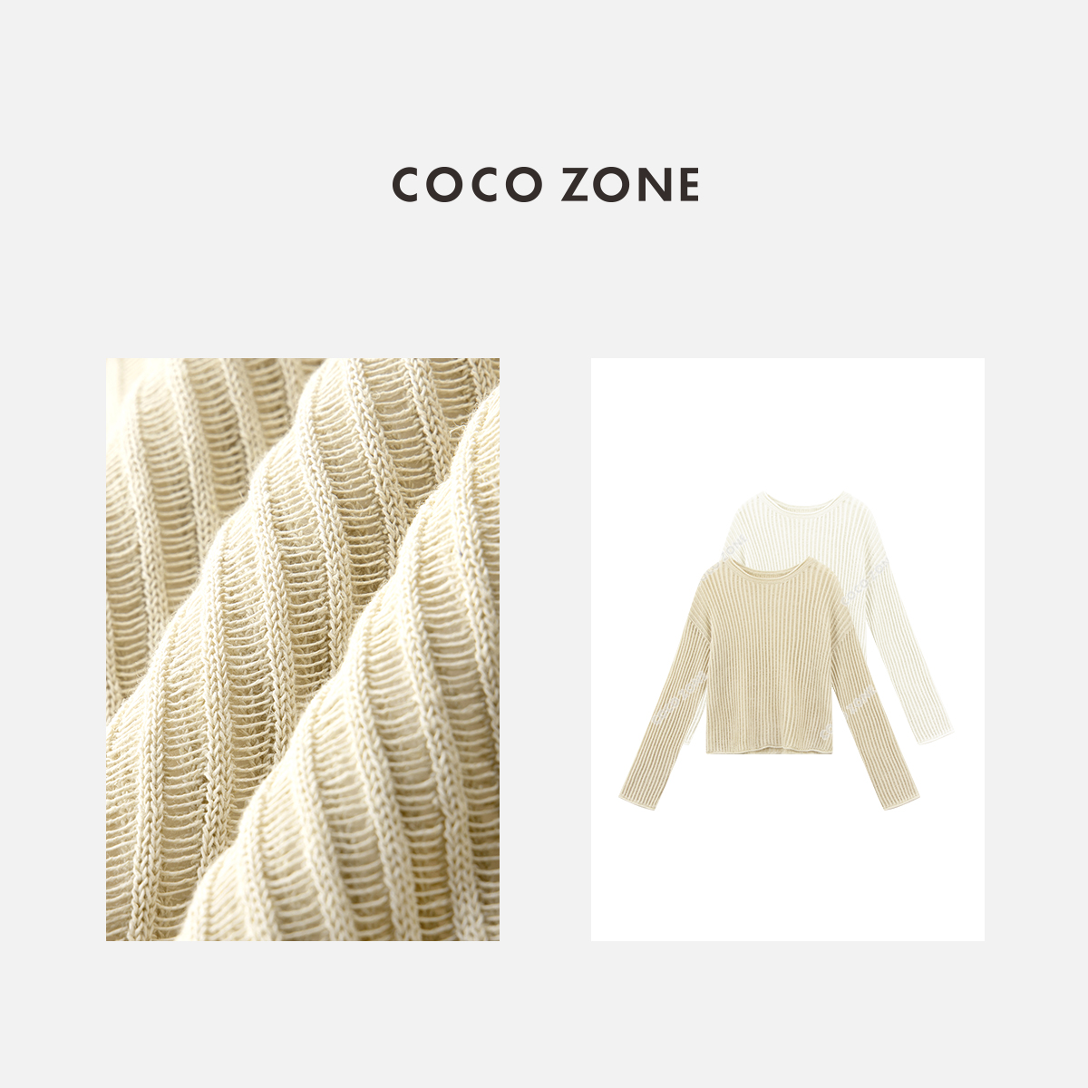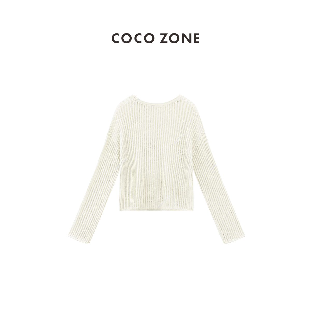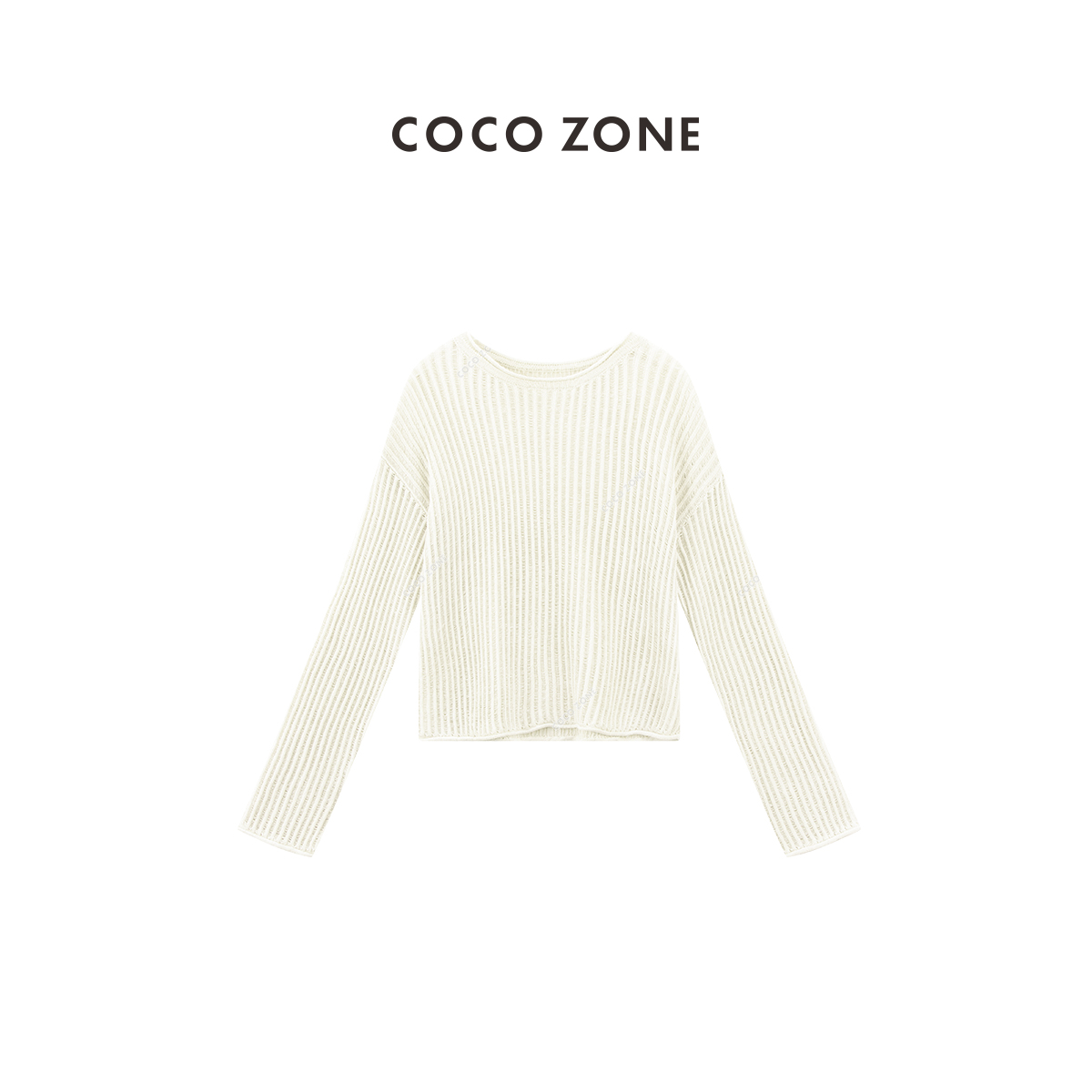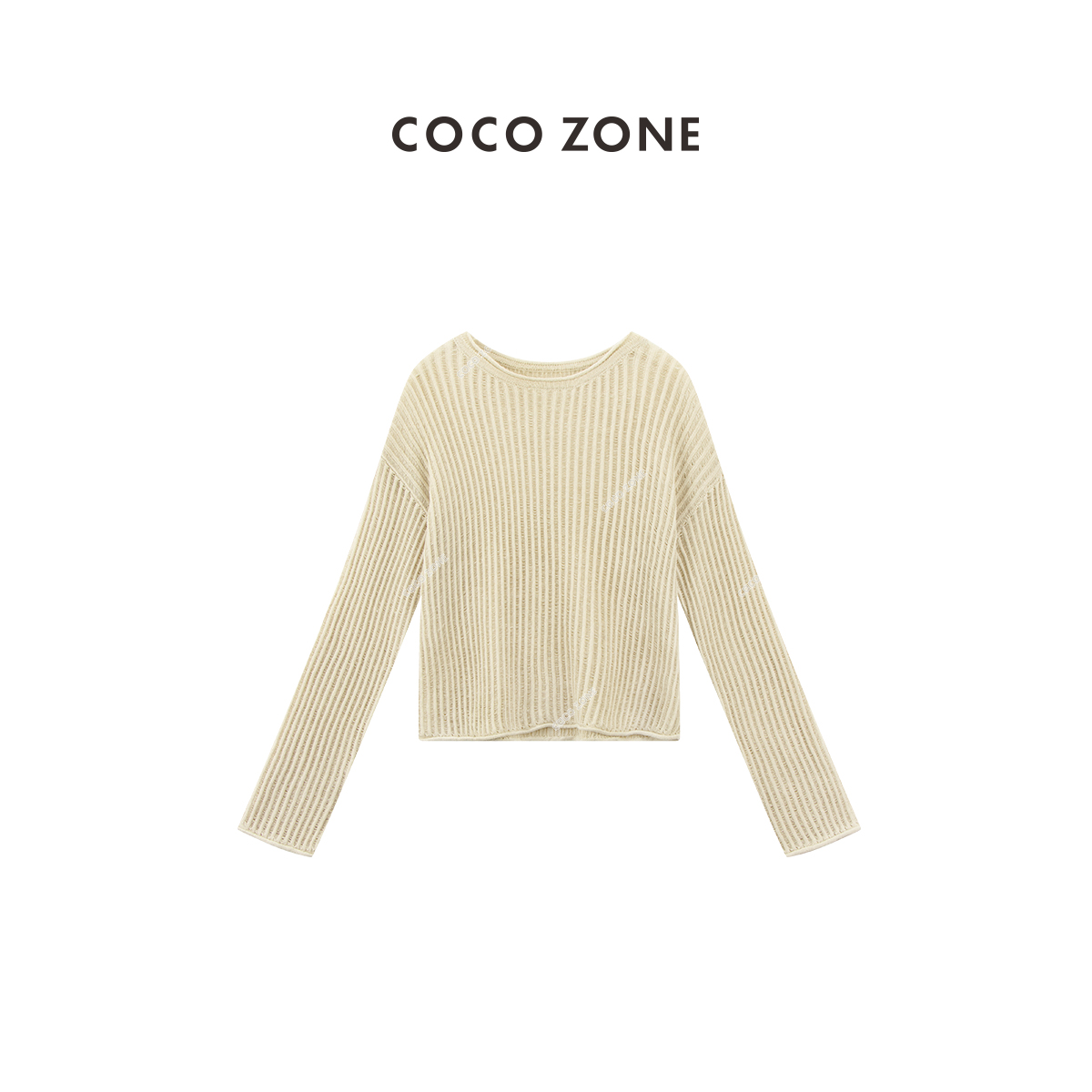 COCO ZONE"艾米”时尚设计感坑条圆领针织衫简约长袖百搭上衣CC1B0983