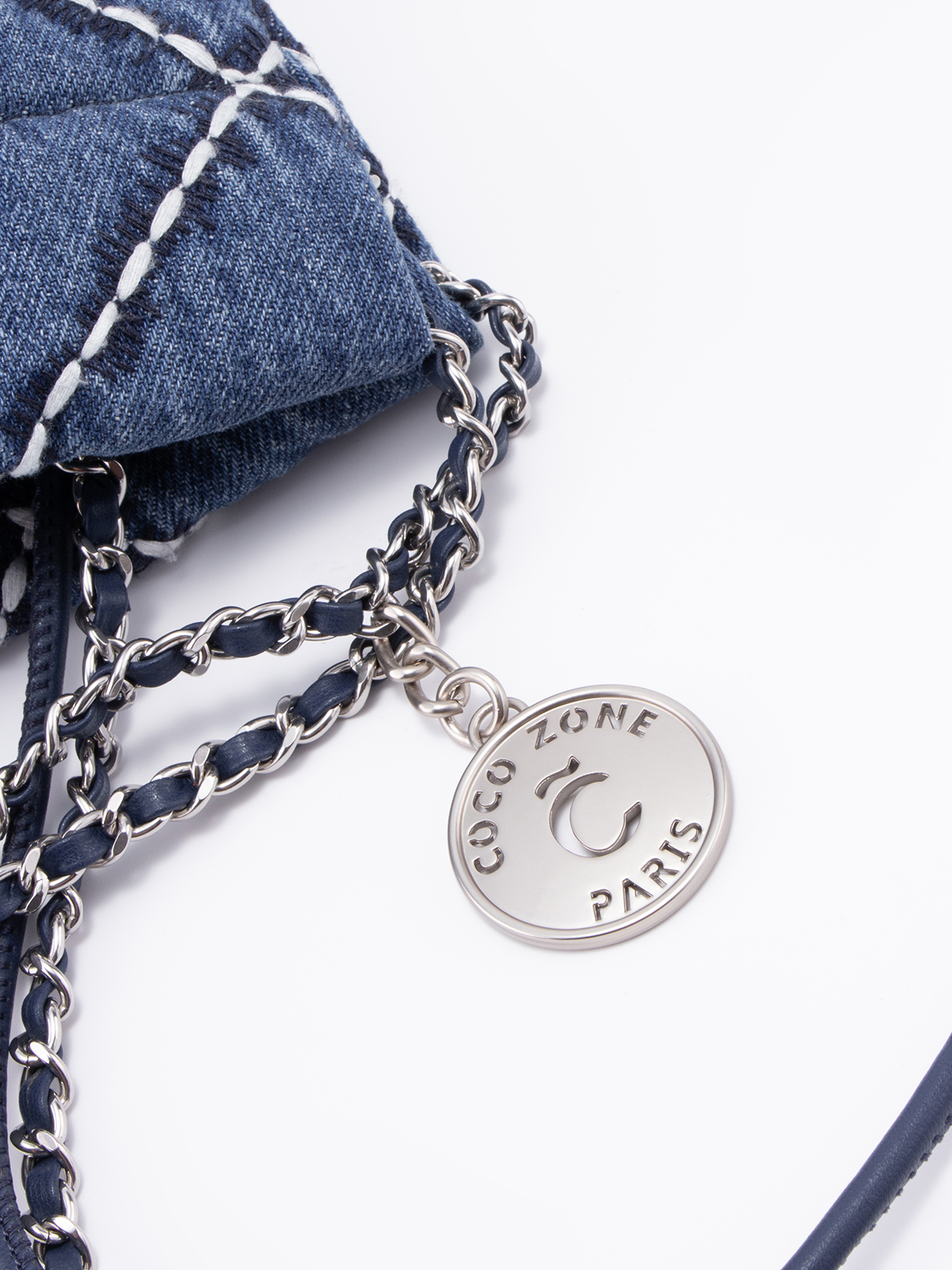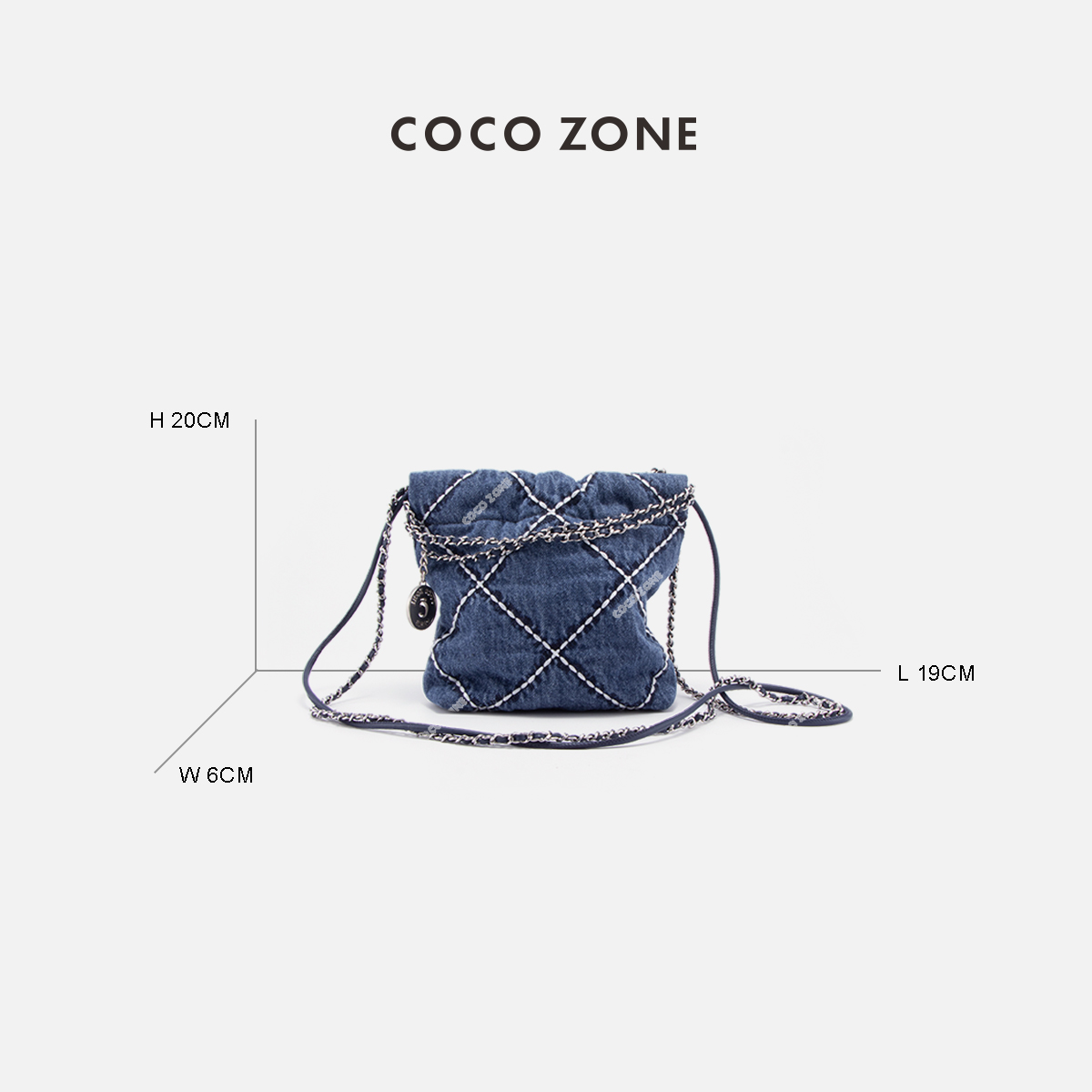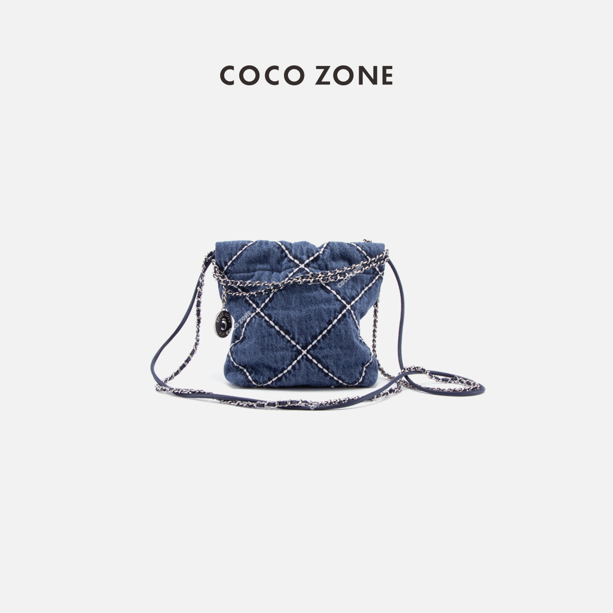 COCO ZONE2024小香风牛仔斜挎包菱格链条迷你手提包CC2B0771