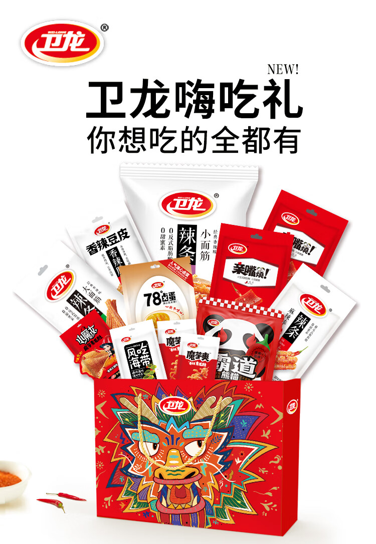【鼎】卫龙嗨吃礼休闲辣条零食礼盒1265g(升级款)