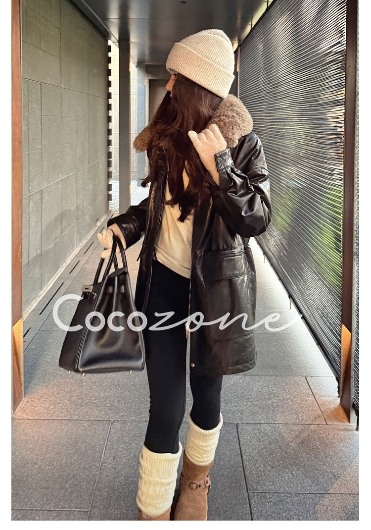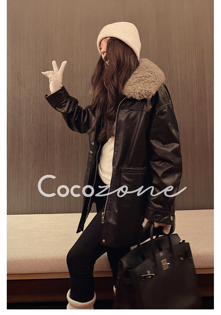 COCO ZONE 刘 一一 “年度战袍”头层小牛皮毛领拉链皮衣CD2A2940