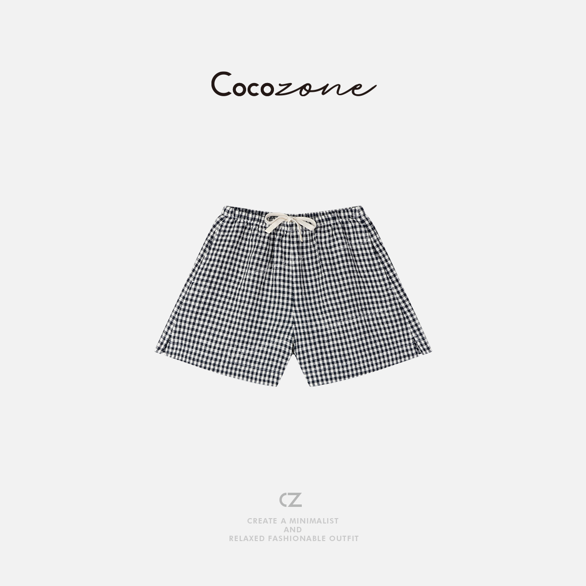 COCO ZONE 刘一一 2025新款撞色百搭抽绳格子休闲短裤CD1A0279