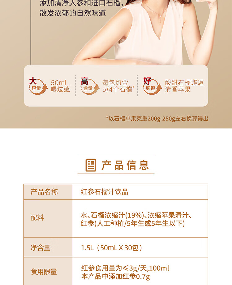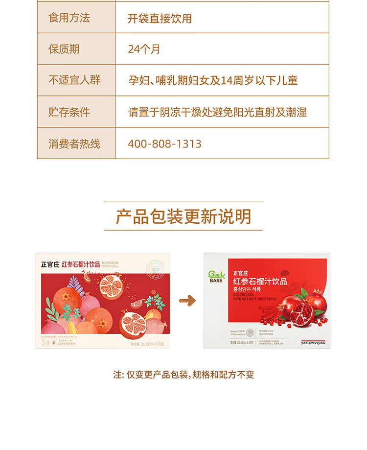 正官庄人参红参石榴液1.5L(50ml*30)含丰富皂苷 健康滋补礼物礼品