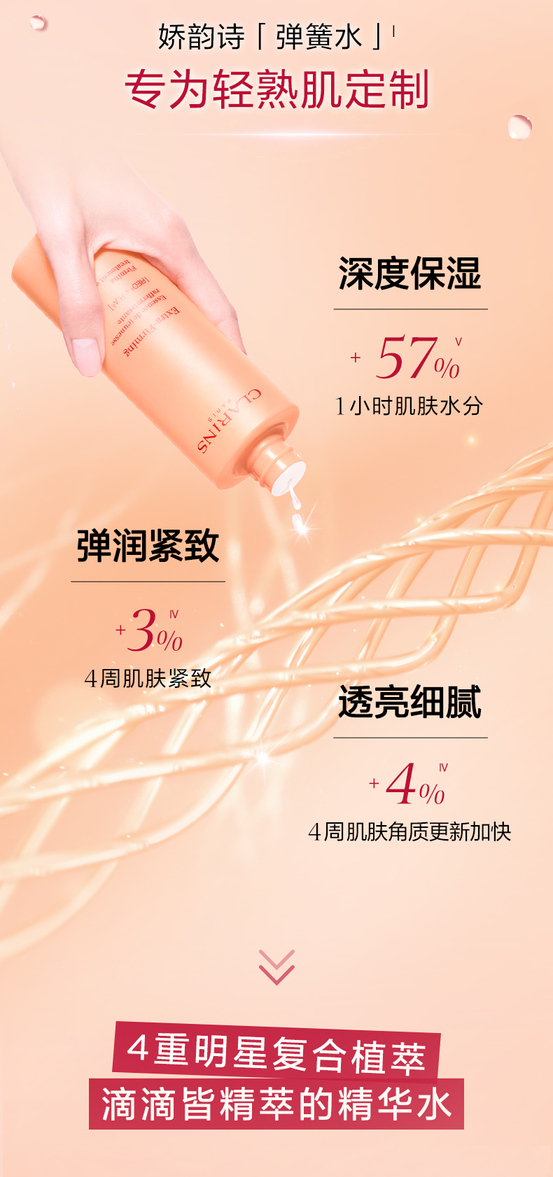 娇韵诗Clarins 焕颜弹力精华水200ml(新款弹簧水)小姐姐弹簧水保湿紧致清爽水润