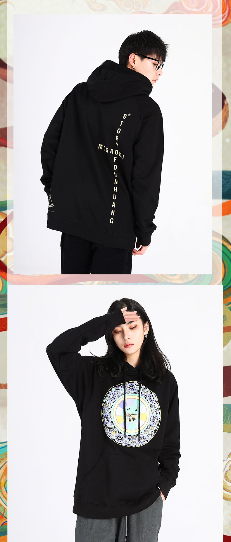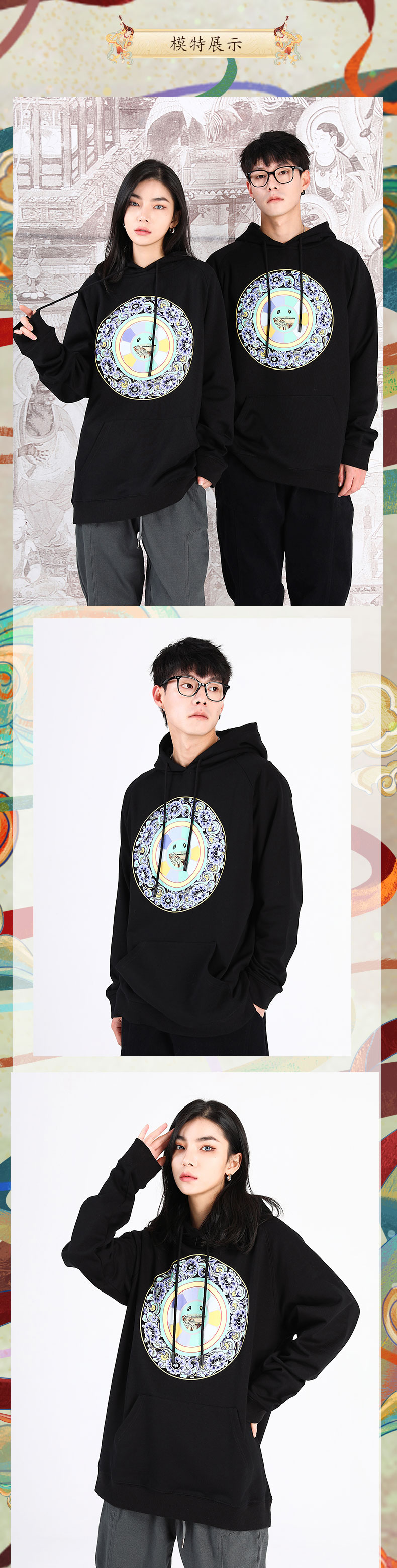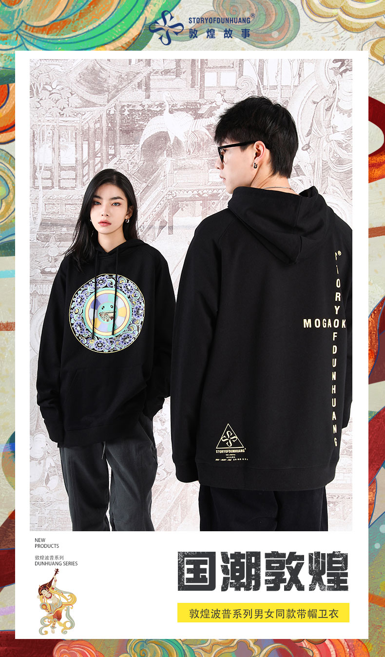 敦煌故事山茶圆光情侣卫衣男女套头连帽秋冬款宽松国潮棉抗皱