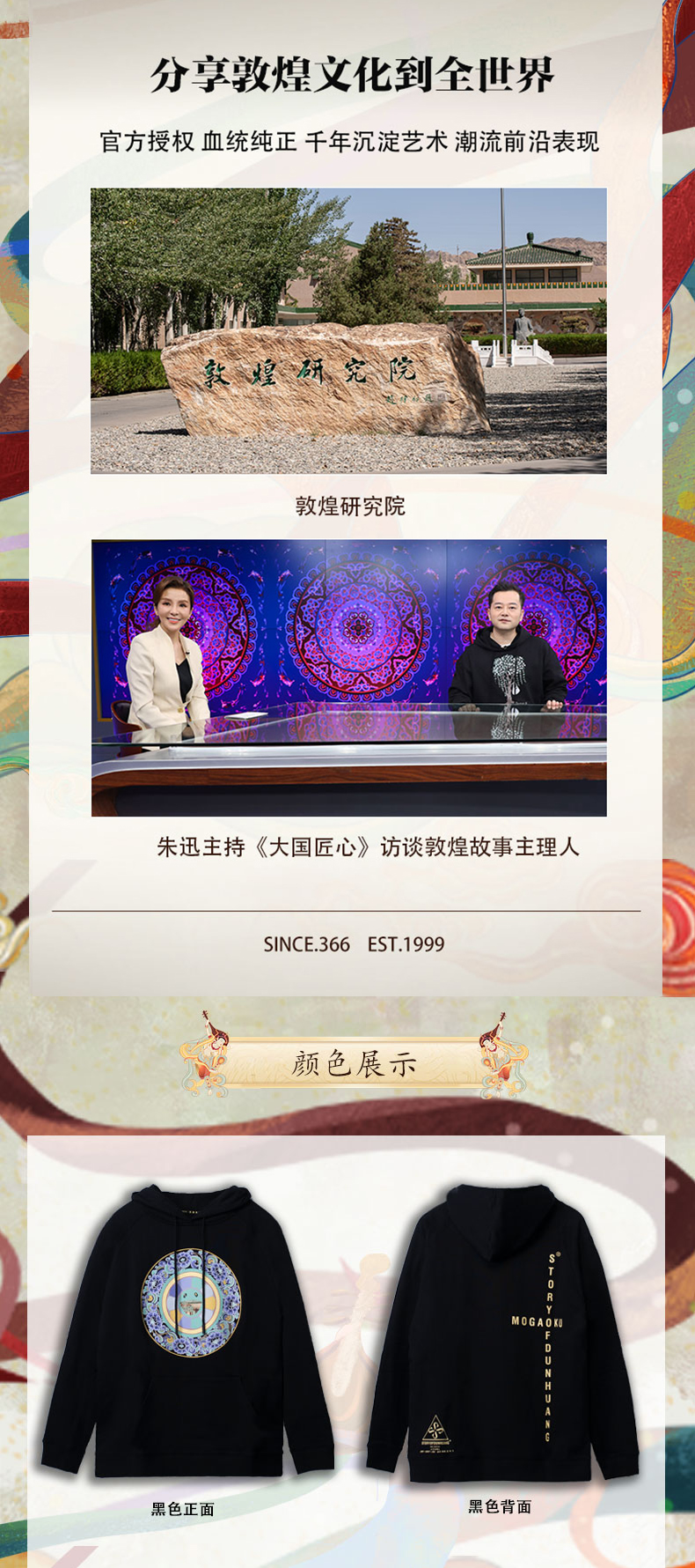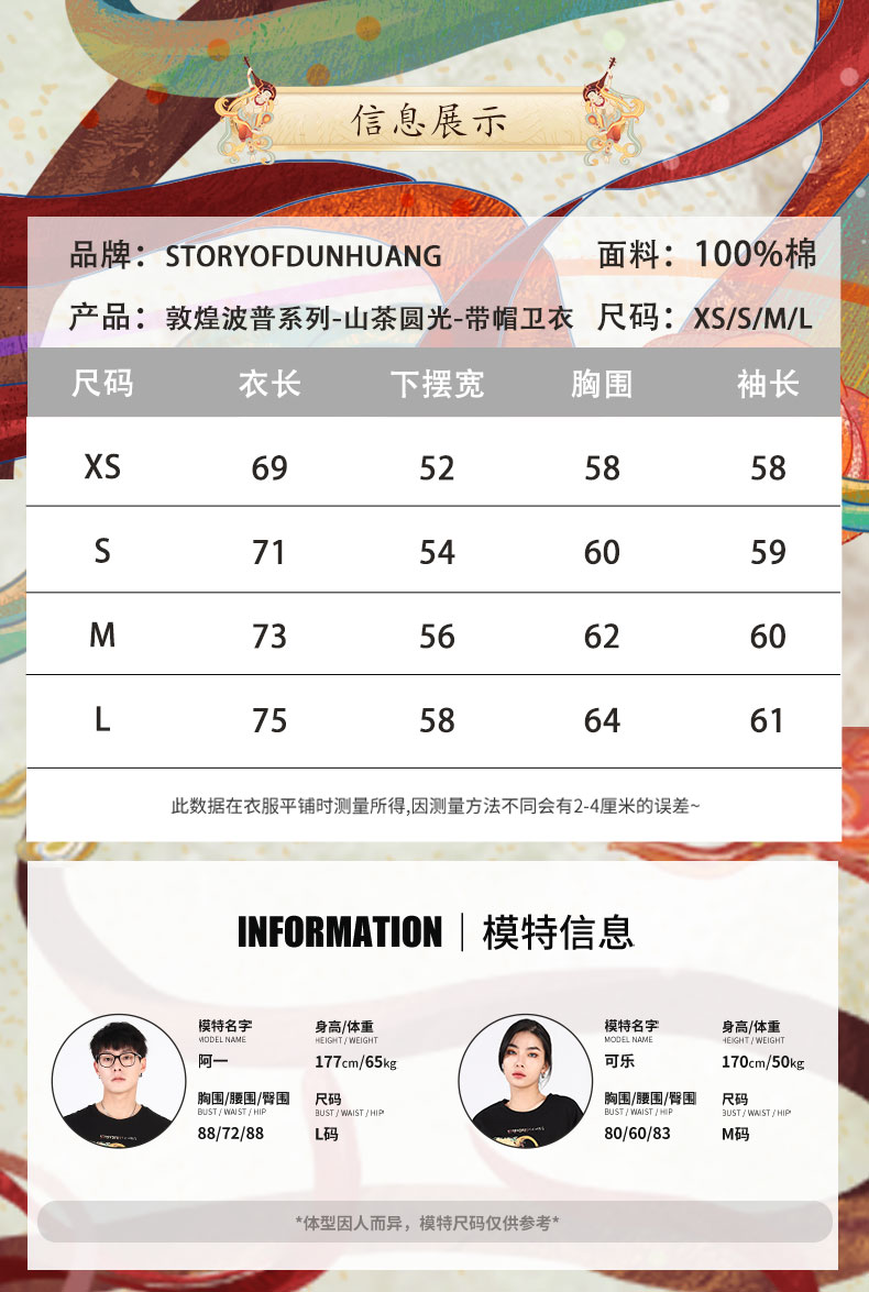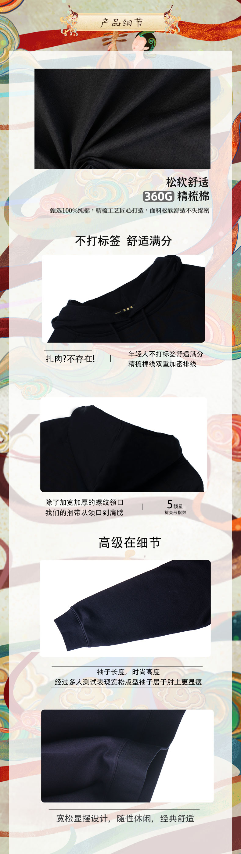 敦煌故事山茶圆光情侣卫衣男女套头连帽秋冬款宽松国潮棉抗皱