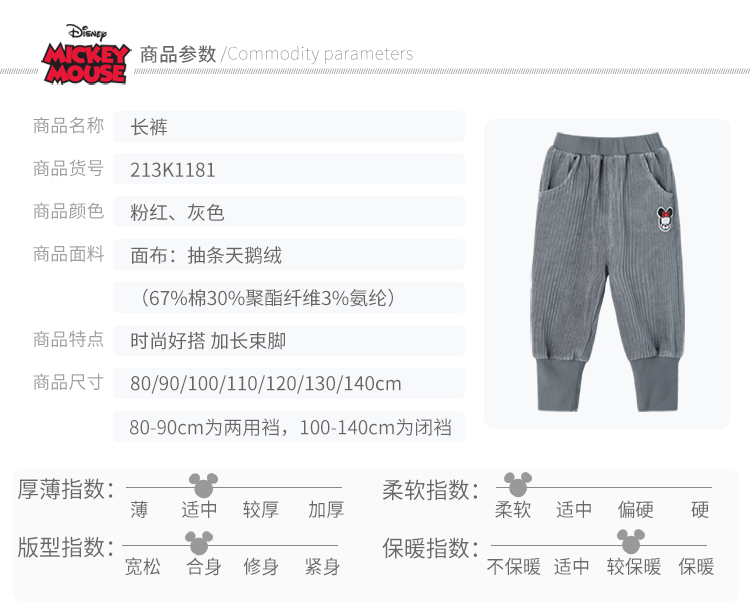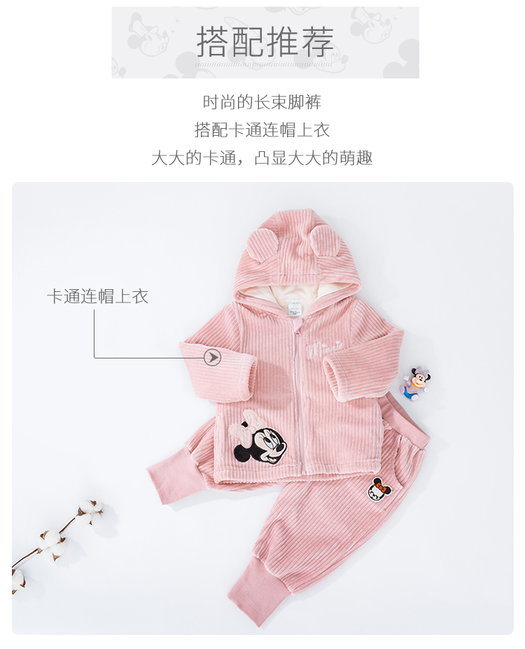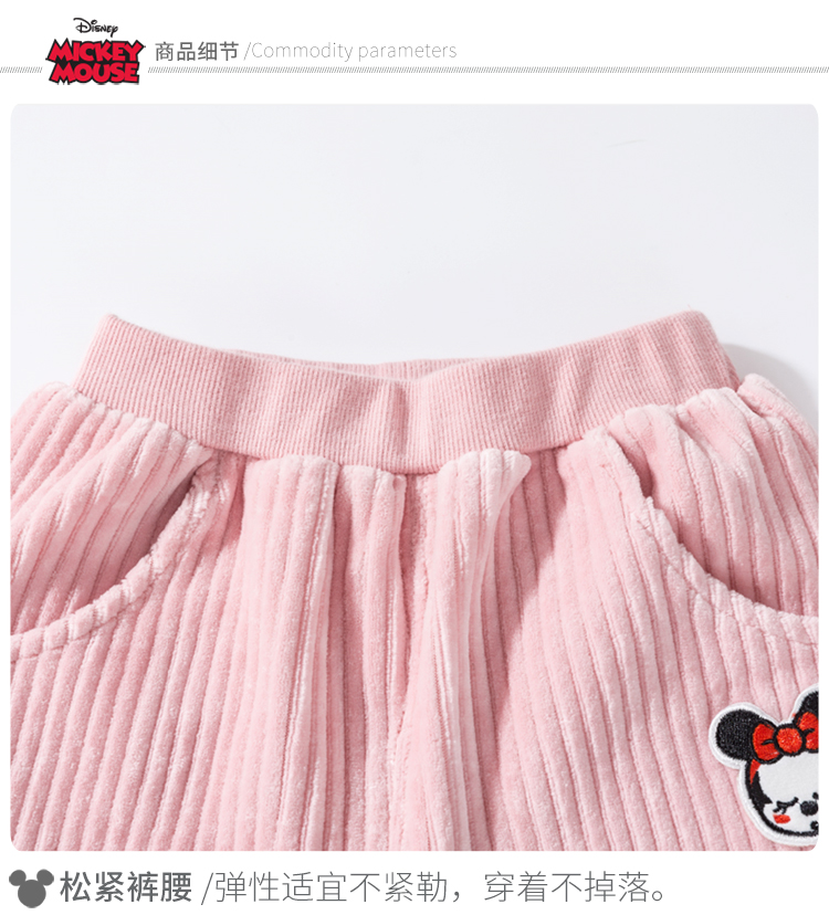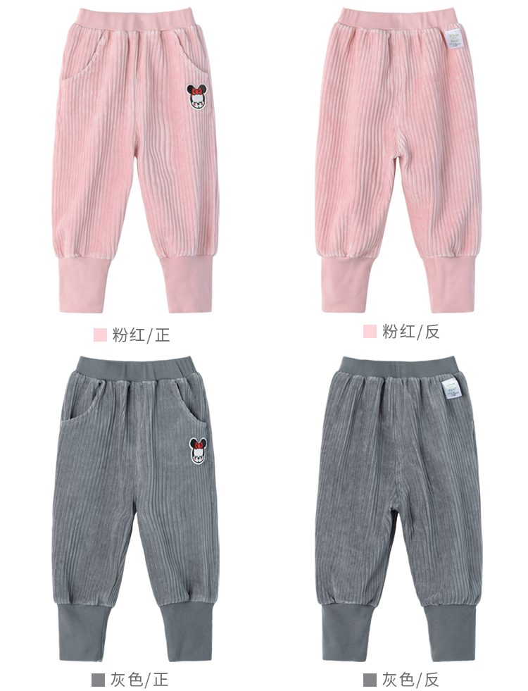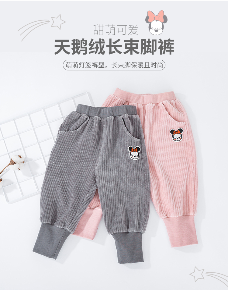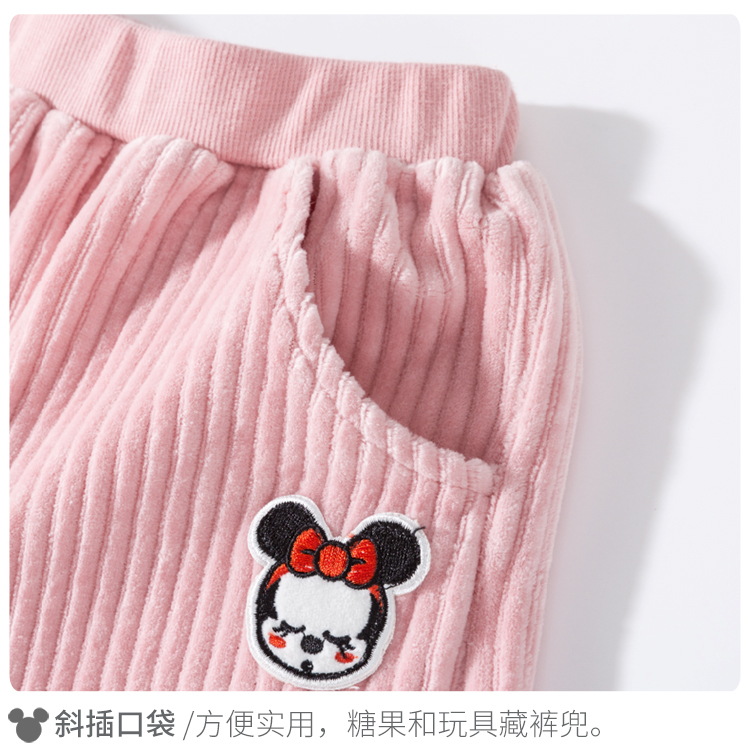 迪士尼女童宝宝春秋束脚甜美天鹅绒长裤裤子
