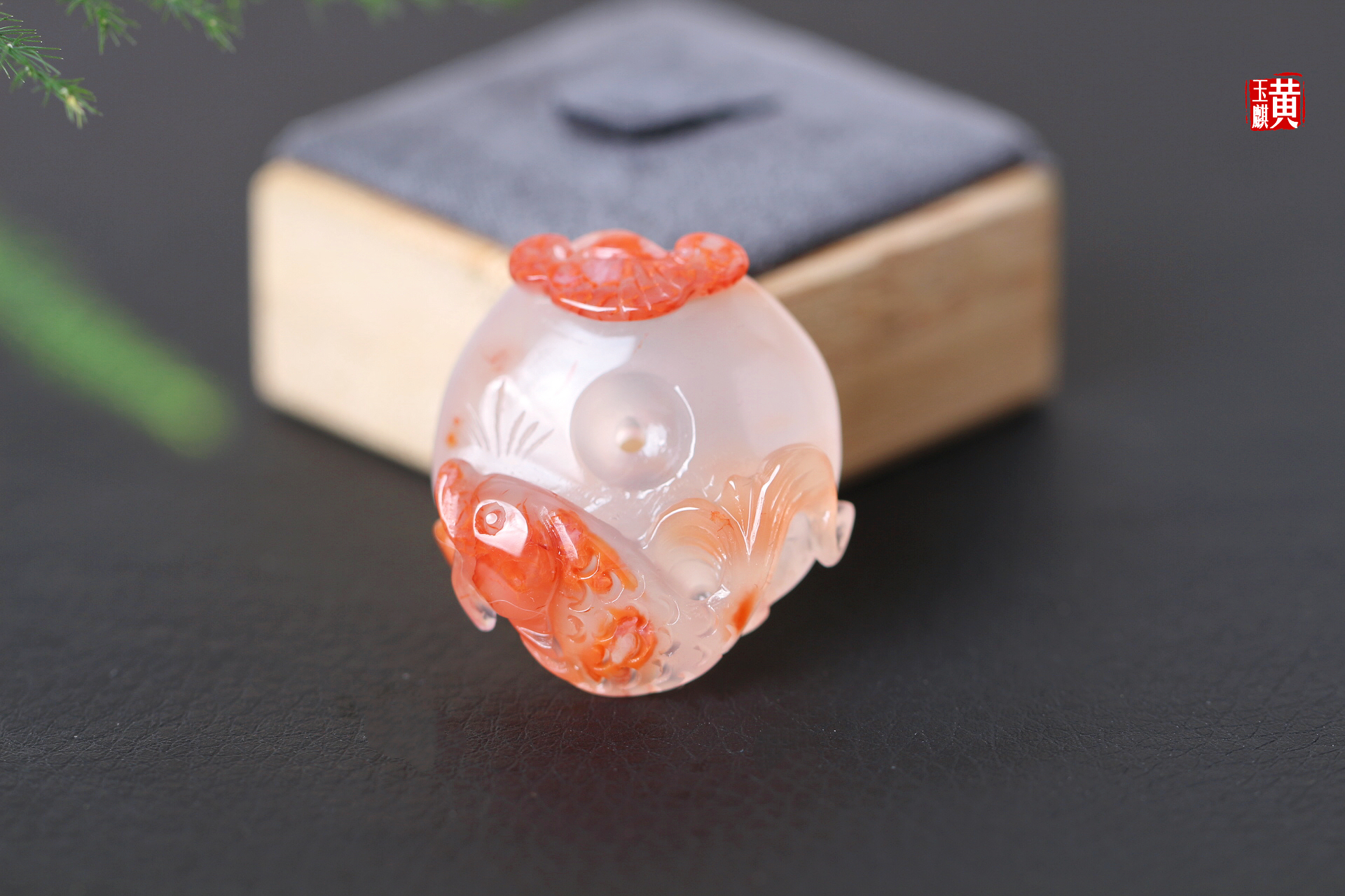 【如意锦鲤】南红冰飘平安扣吊坠,配精美挂绳