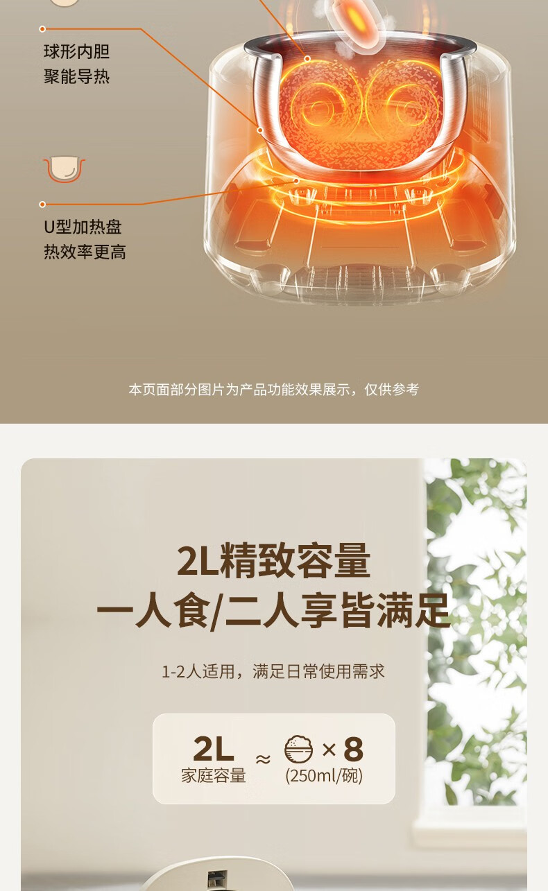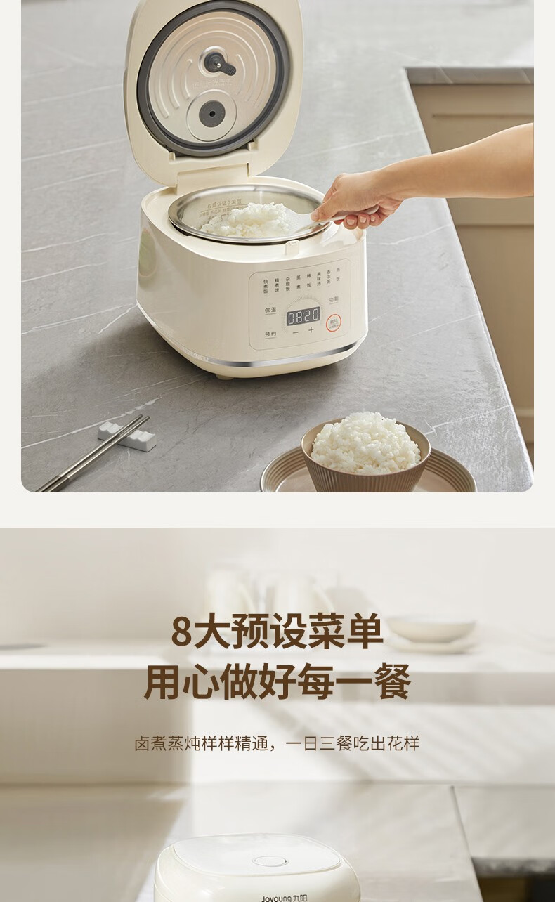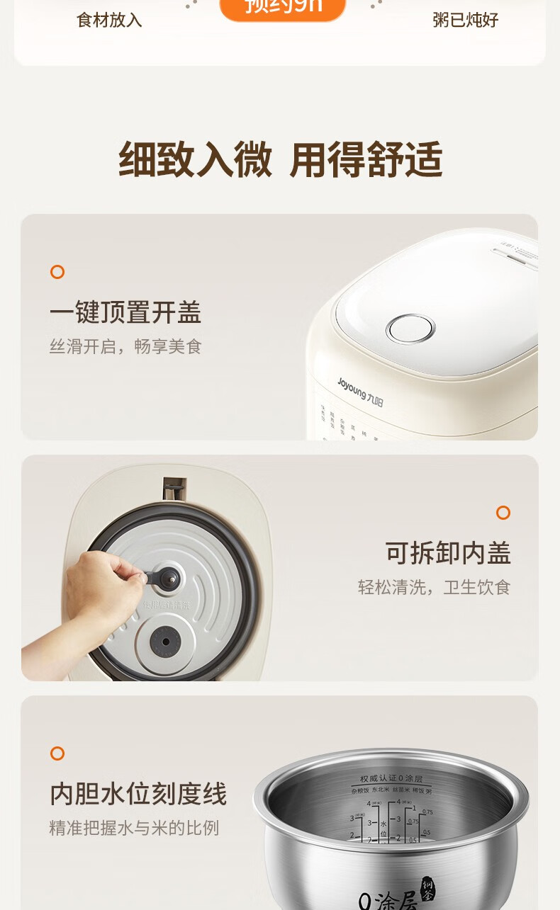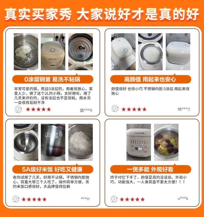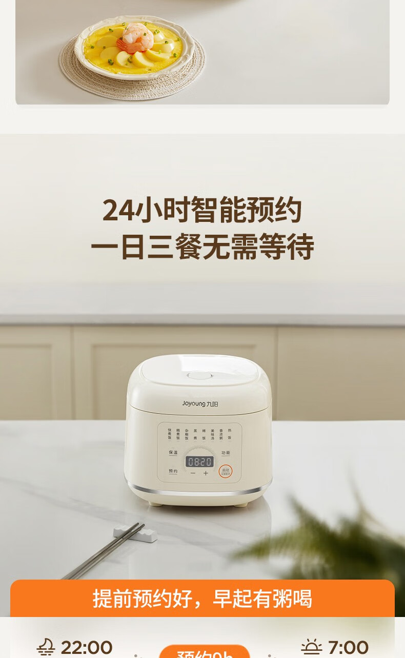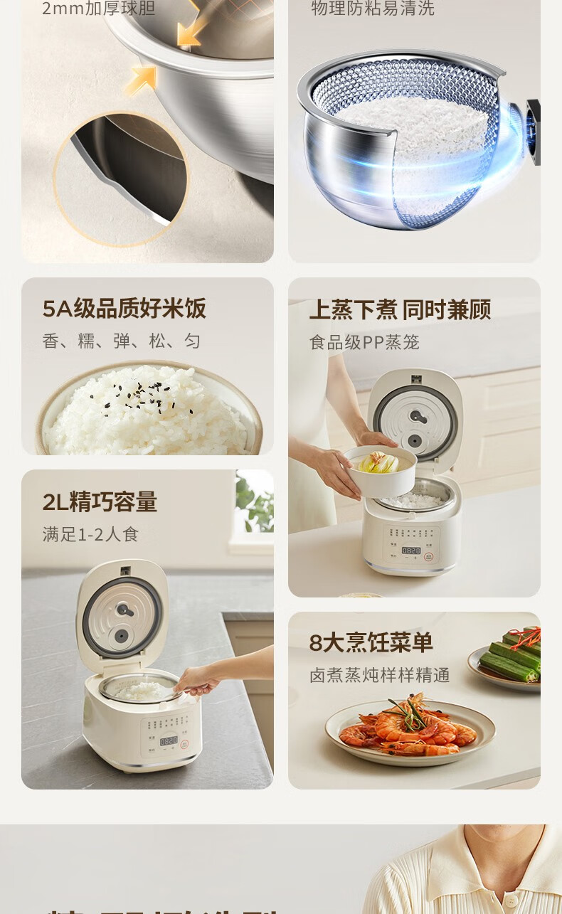 九阳0涂层电饭煲家用2L升304不锈钢球形内胆智能预约多功能电饭锅
