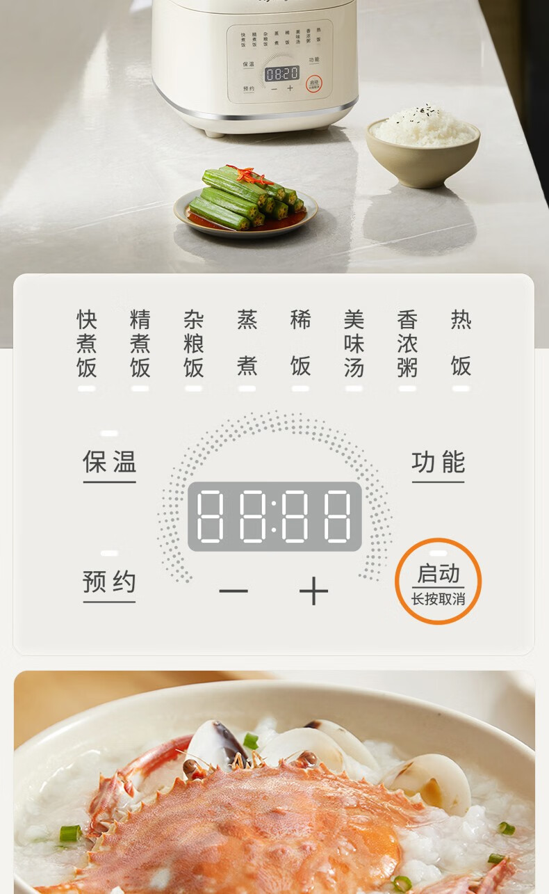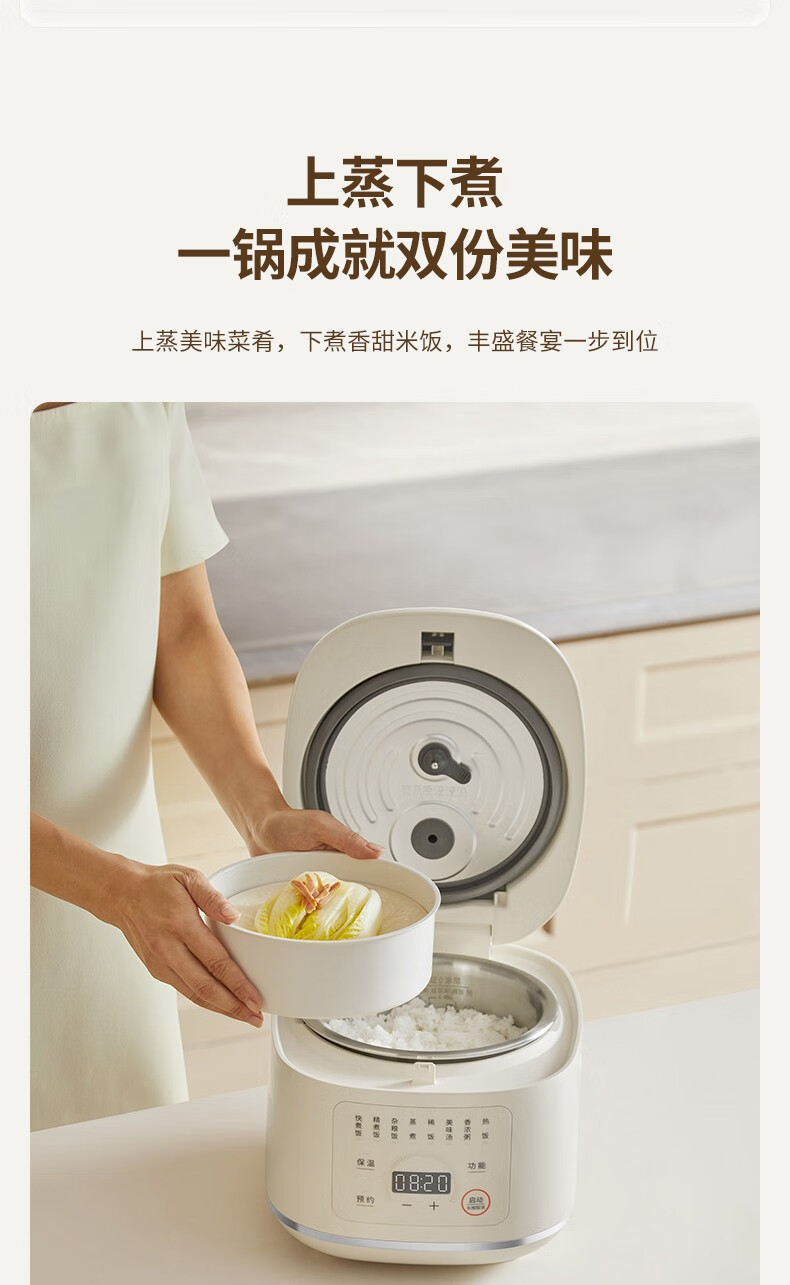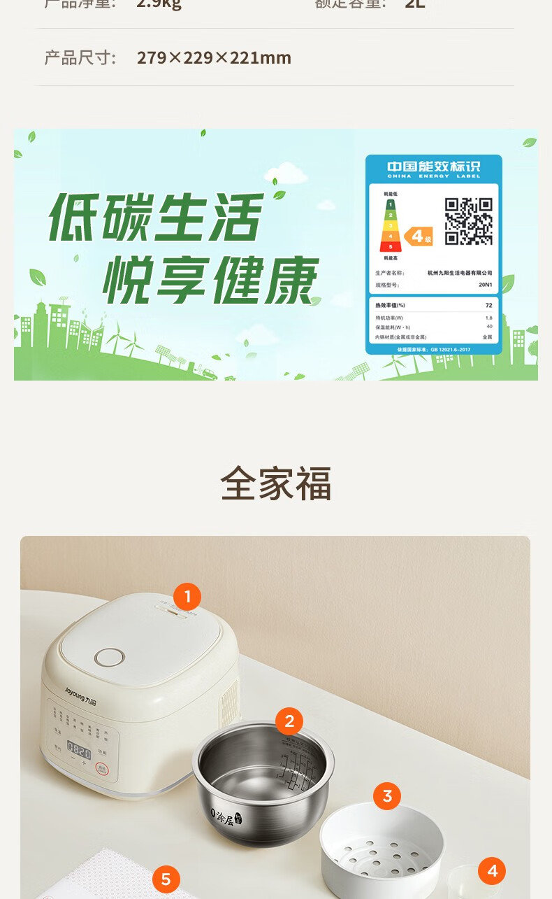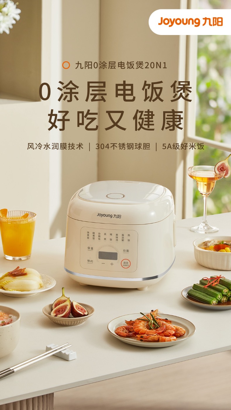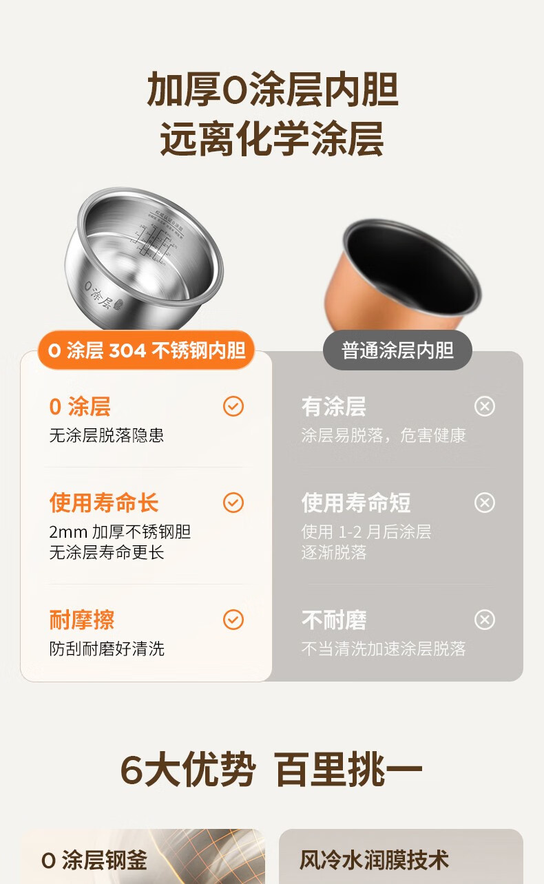 九阳0涂层电饭煲家用2L升304不锈钢球形内胆智能预约多功能电饭锅