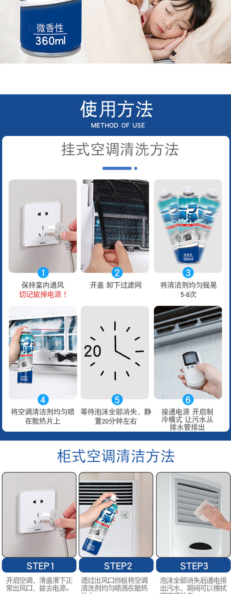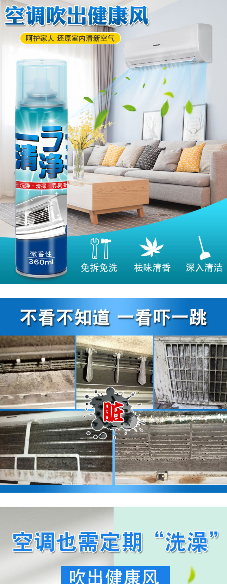 【19.9到手3瓶❗️空调清洗剂360ml】呵护家人,还原室内清新空气,家用挂式柜式汽车中央空调系统清洁剂免拆洗喷雾除异味,比风扇直吹舒服