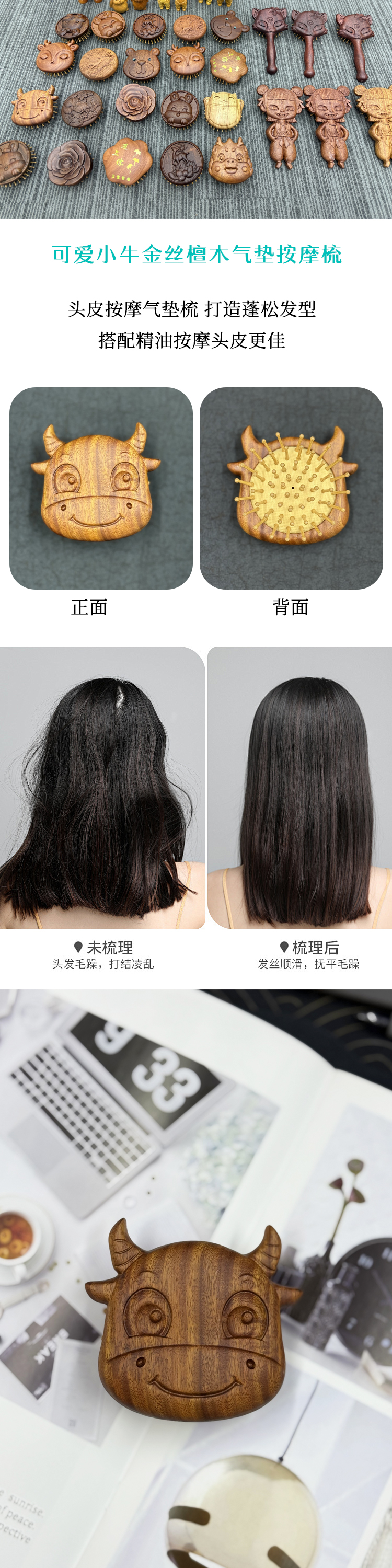 平衡小柅 可爱小牛金丝檀木气垫按摩梳 气囊梳 按摩头皮经络 顺发
