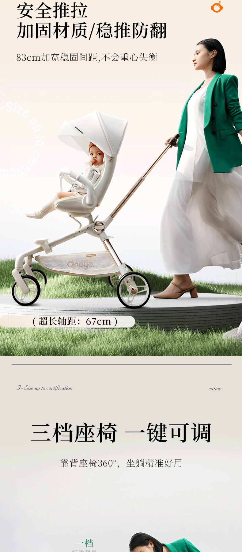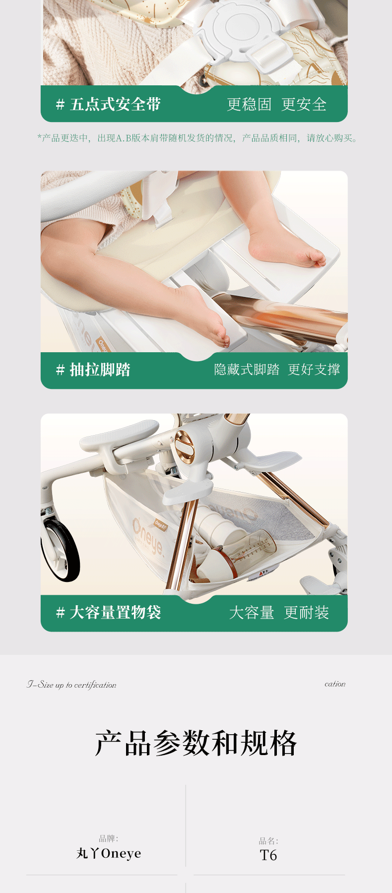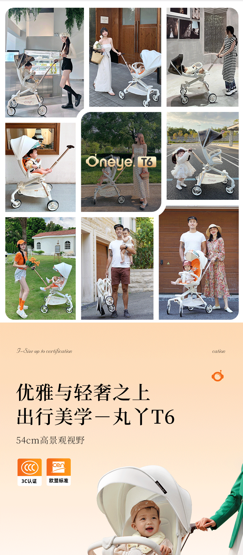 丸丫T6第二代遛娃神器可坐可躺婴儿车高景观推车plus