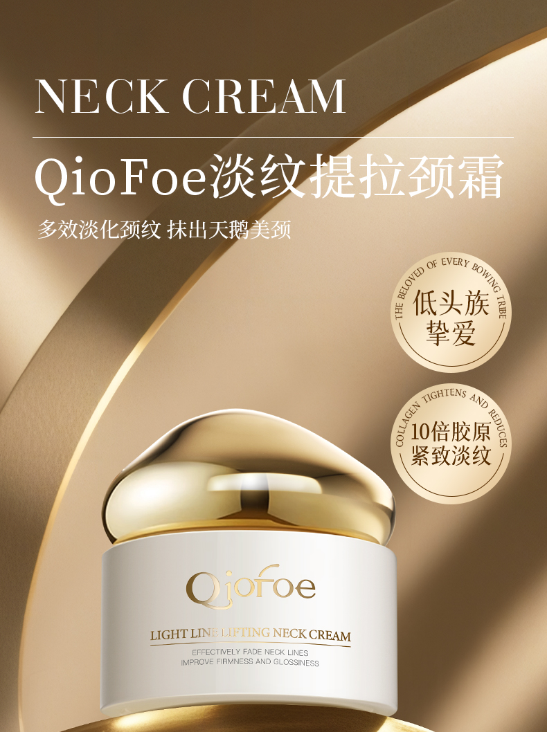 颈纹克星!【QioFoe--淡纹提拉颈霜55g】淡化颈纹/提亮颈部肤色/提拉紧致颈部皮肤 乳霜质地轻盈不厚重 超滋润不粘腻好吸收 专研12肽立体填充 烟酰胺+熊果苷+VC 包装外盒防伪码可查!