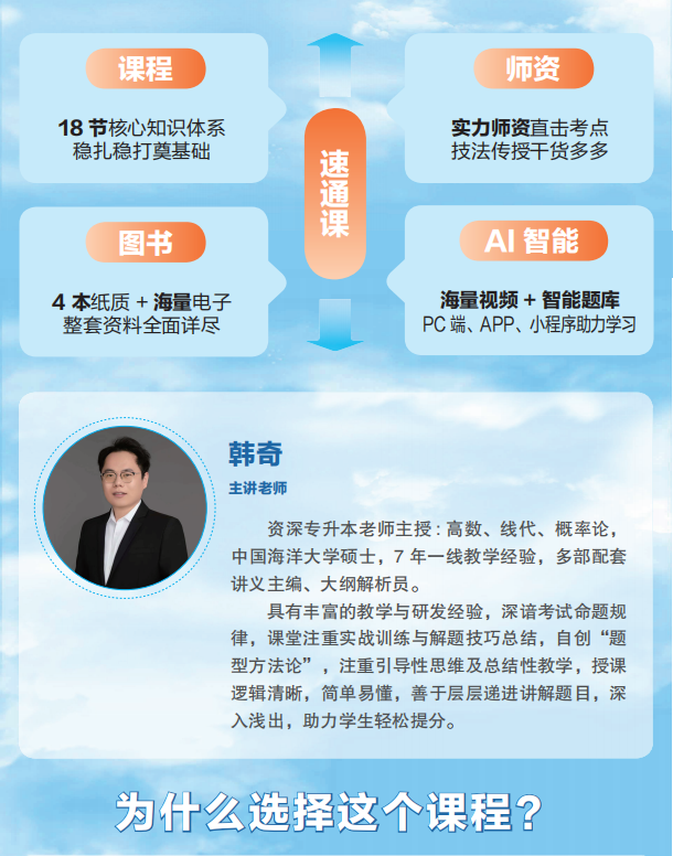 专升本高等数学速通课 (配套1本讲义,赠送3本纸质资料,18讲优质课程,提供大群答疑)