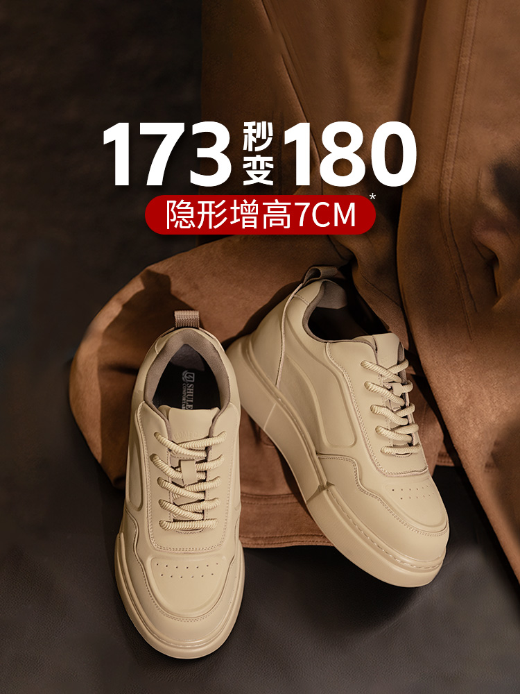 舒乐高男鞋隐形内增高8cm休闲鞋男款板鞋小白鞋透气运动