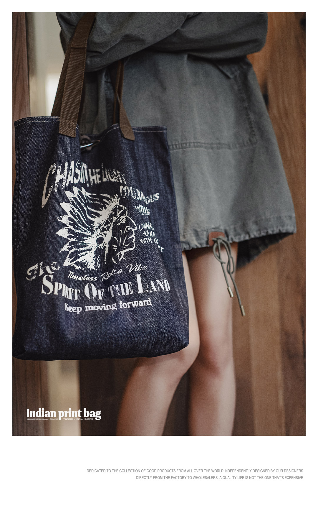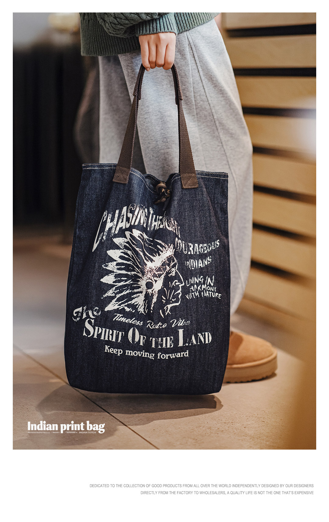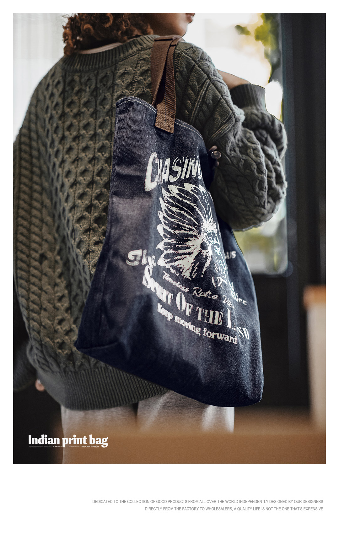 马登复古丹宁牛仔布单肩手提轻便通勤百搭大号容量休闲女士托特包
