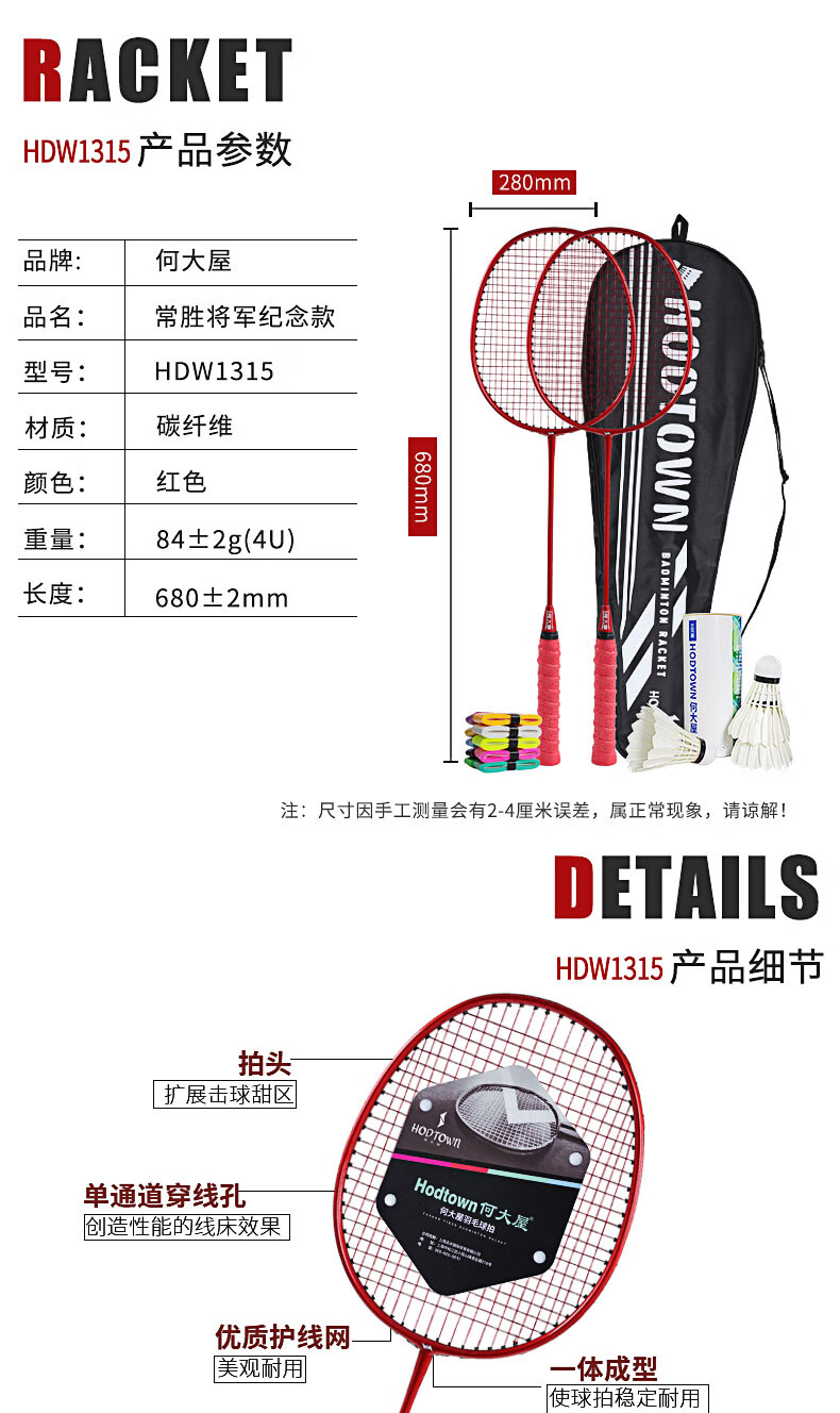 何大屋常胜将军羽毛球拍HDW1315【CZ】