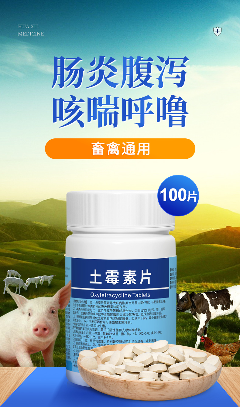 【积分兑换】华畜土霉素片兽药兽用猪龟鱼用水族鸡鸭鹅羊宠物猫狗用腹泻拉稀消炎药