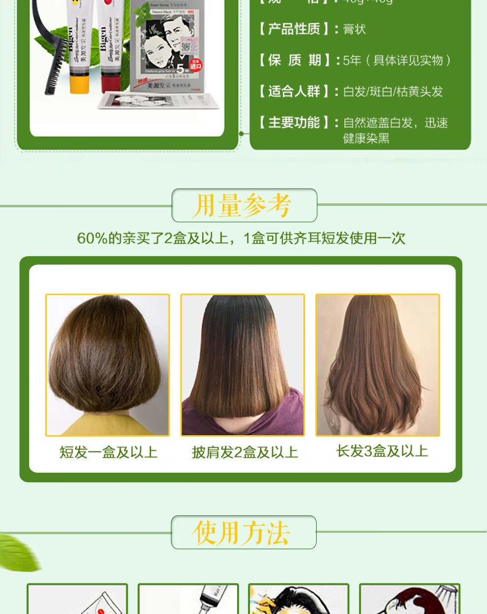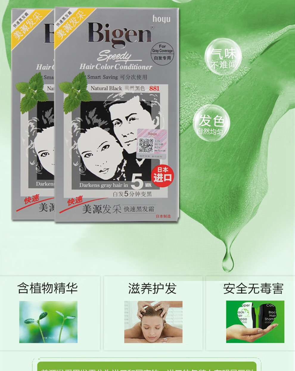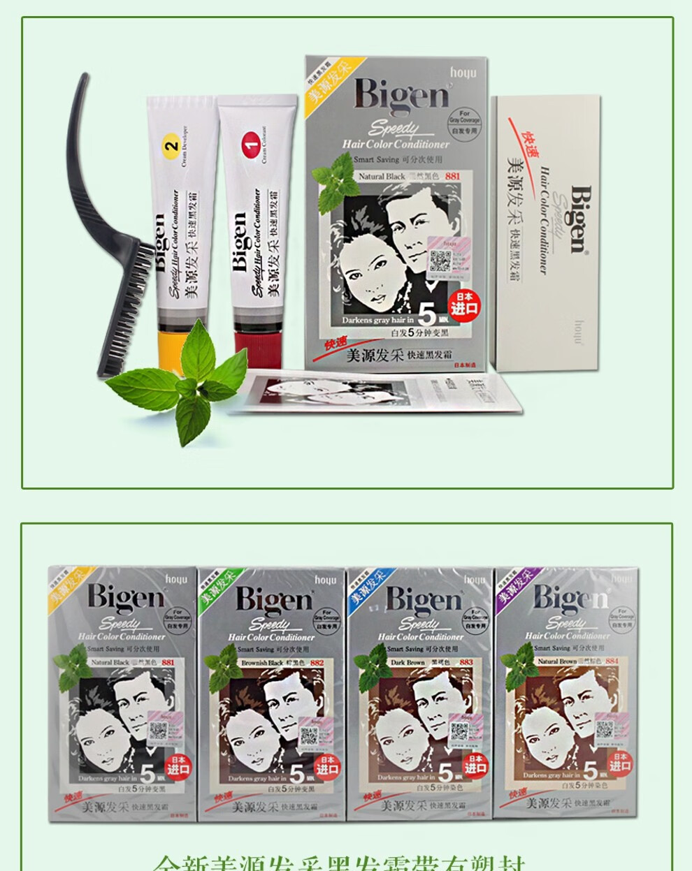 bigen美源发彩染发剂植物纯染发膏884s 天然棕色80g+特惠装 黑发霜遮盖白发男女用