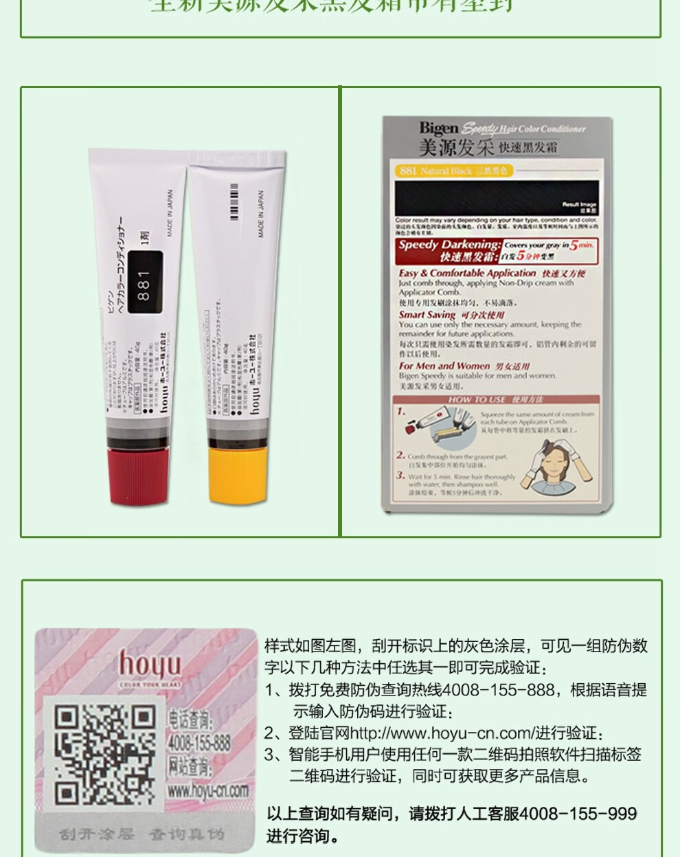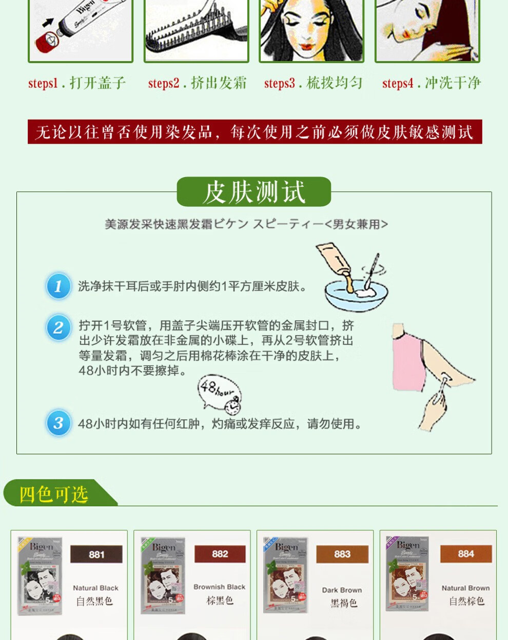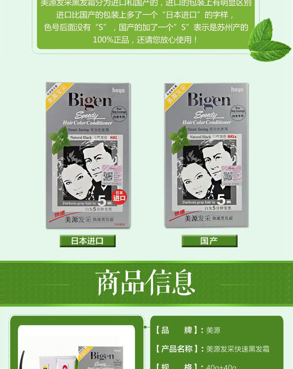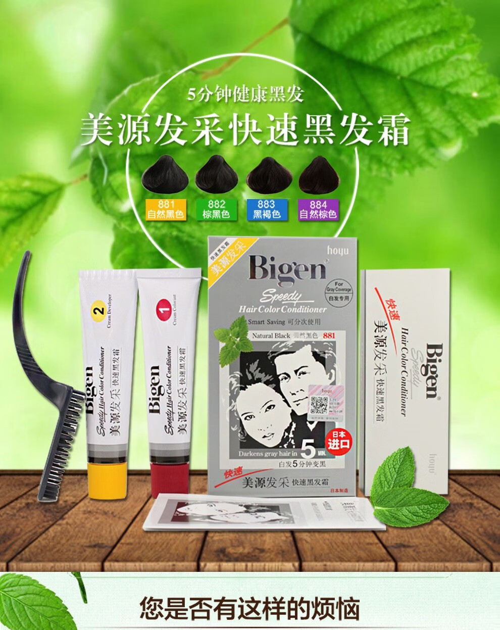 bigen美源发彩染发剂植物纯染发膏884s 天然棕色80g+特惠装 黑发霜遮盖白发男女用
