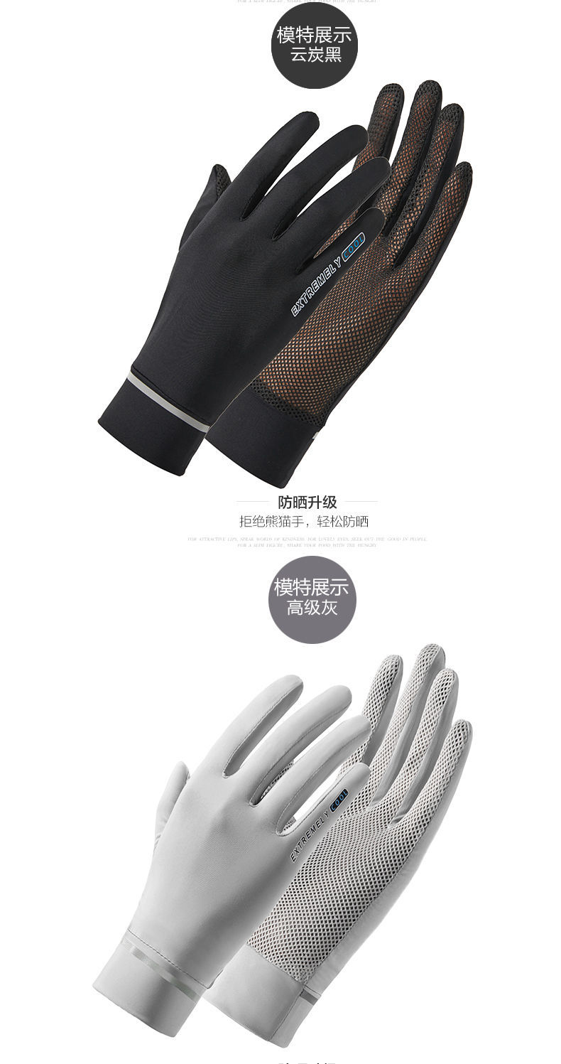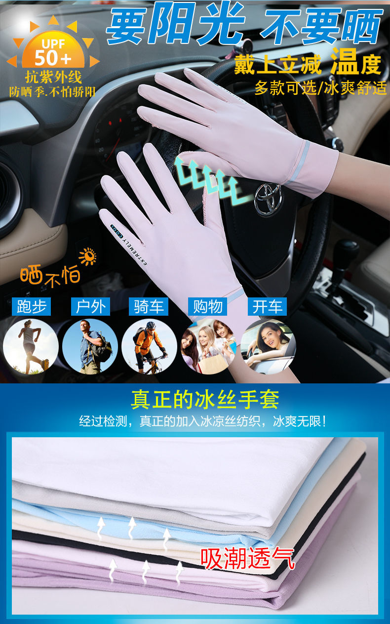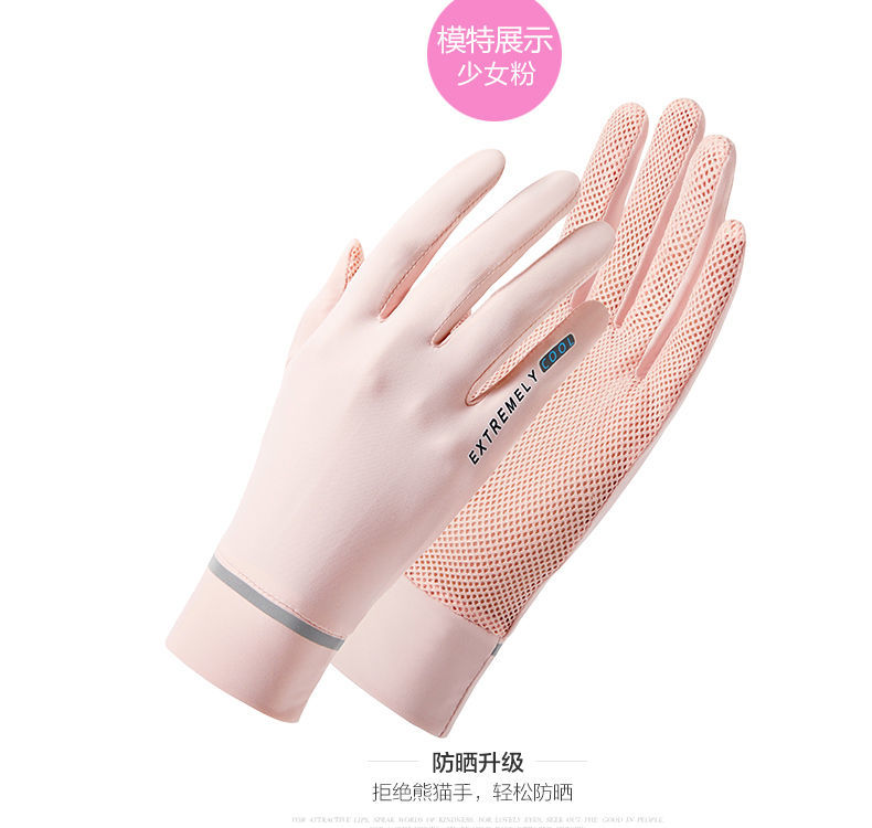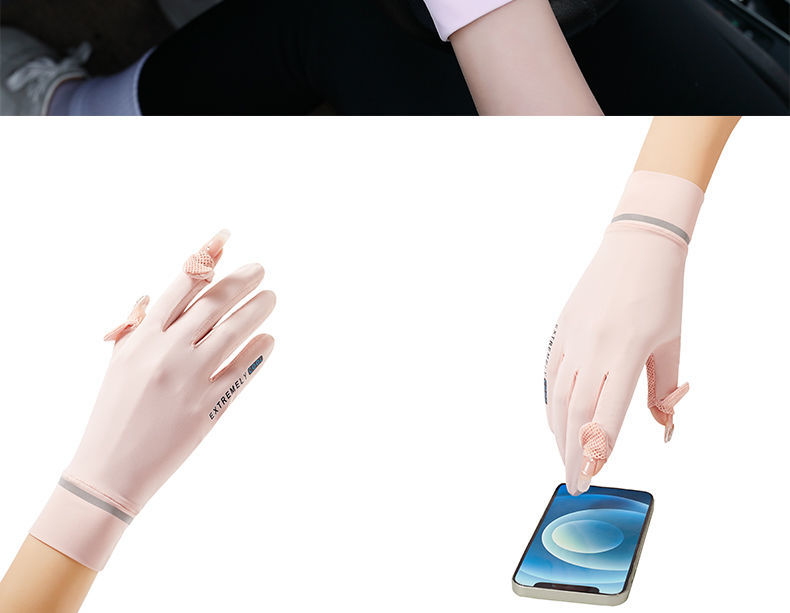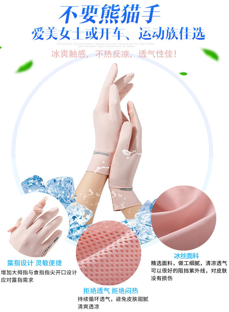 冰丝防晒手套女士春夏季薄款防滑触屏漏二指防紫外线开车骑行透气