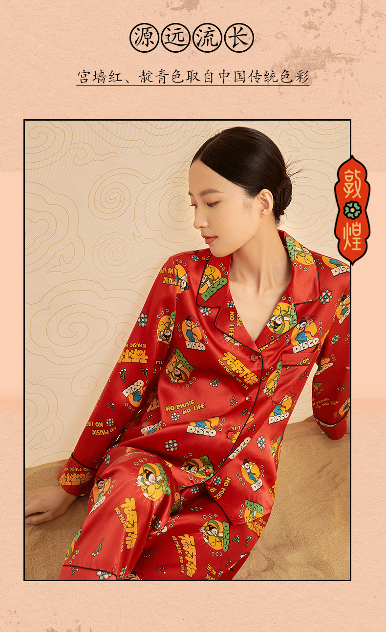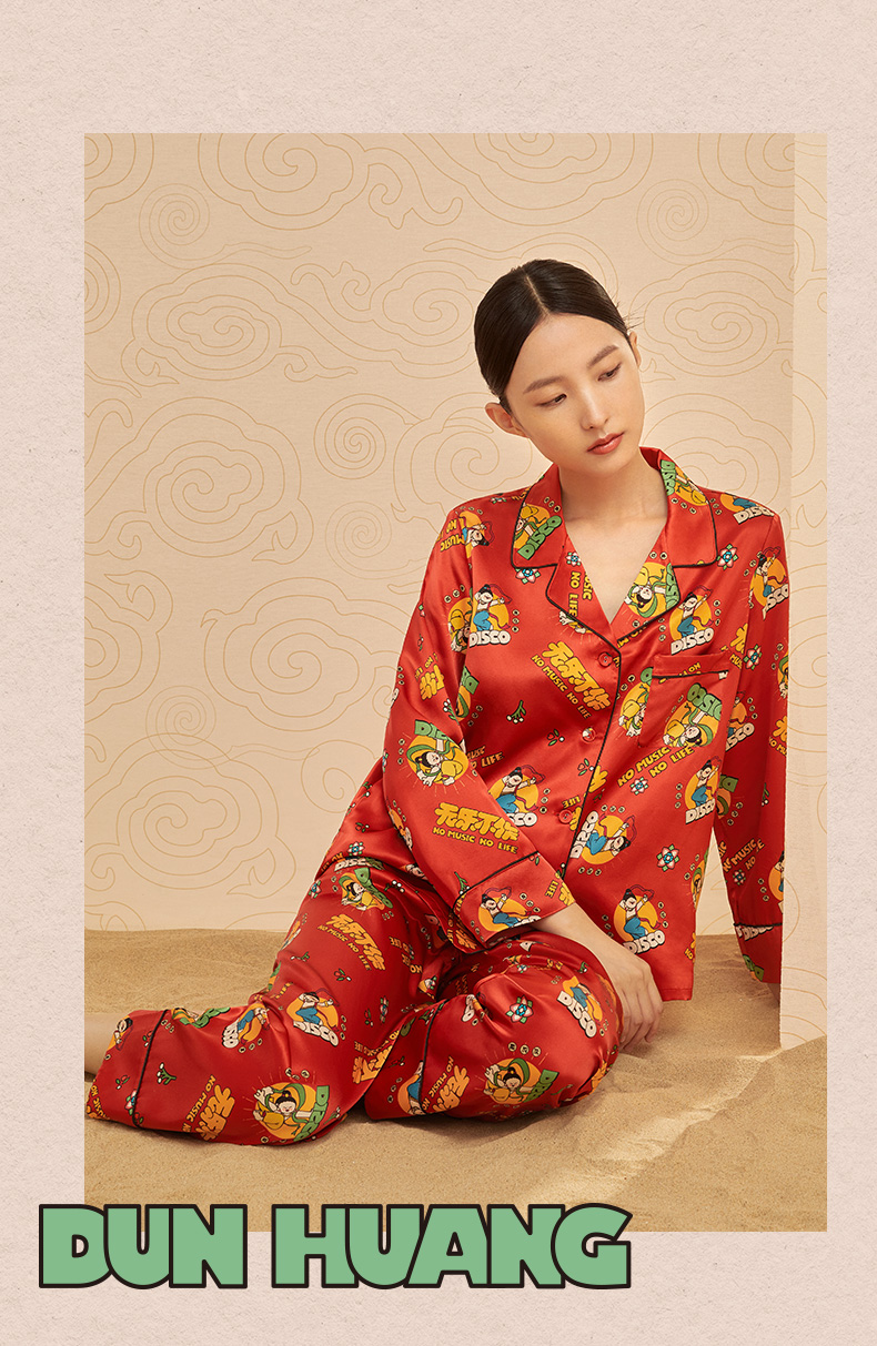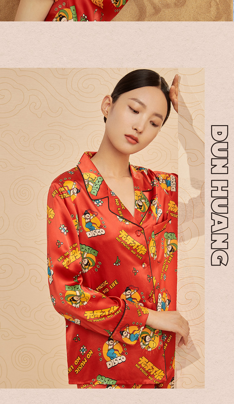 金三塔重磅真丝敦煌联名100%桑蚕丝时尚印花衣裤套新品可外穿 YSFCA202