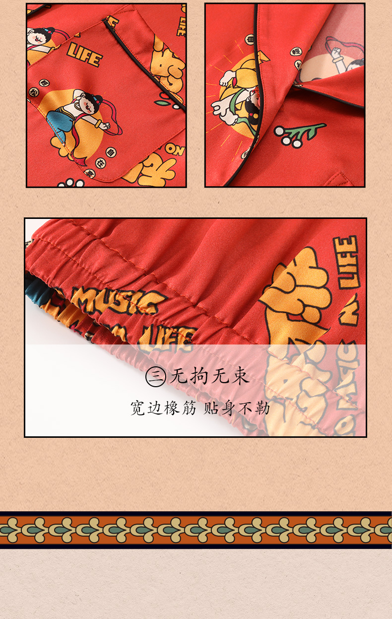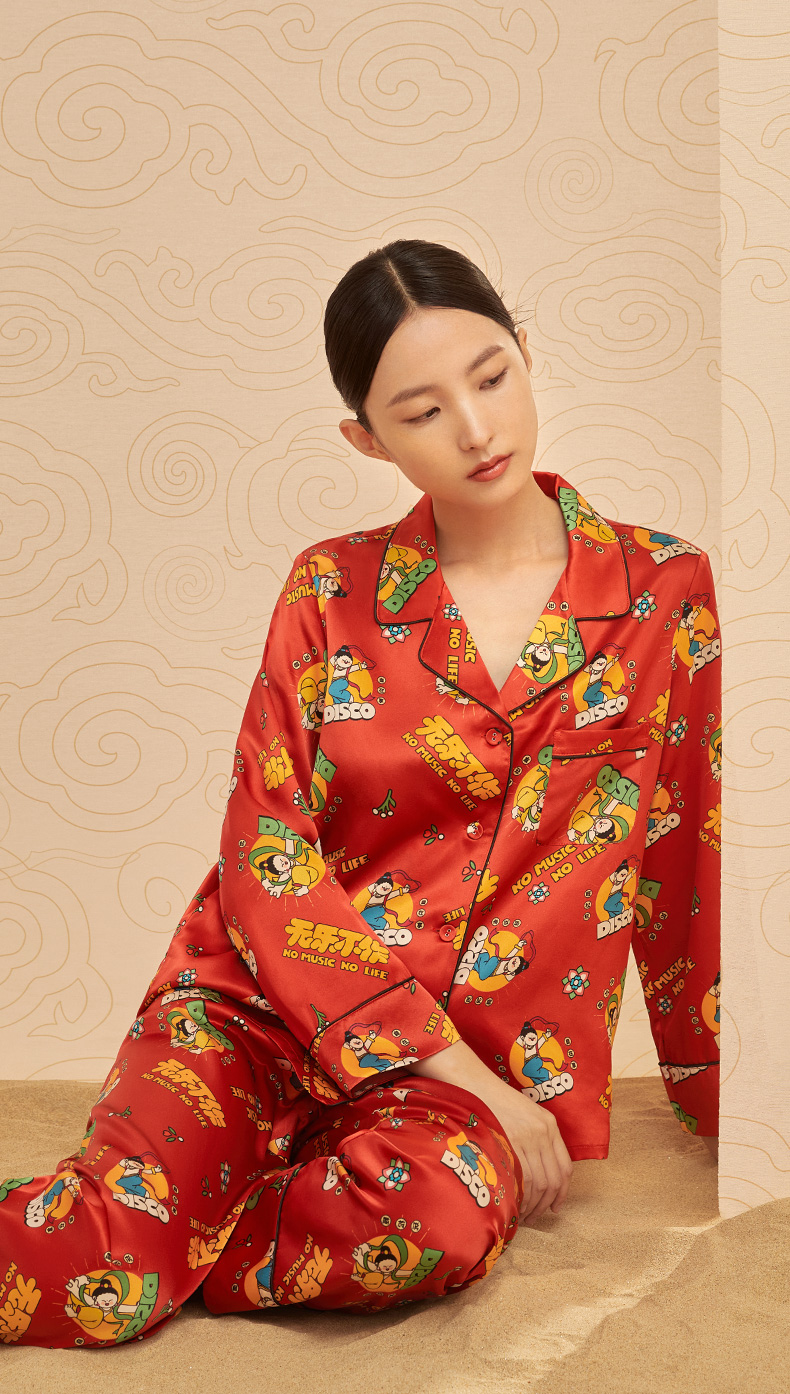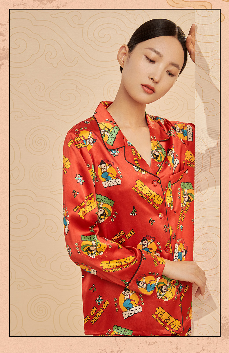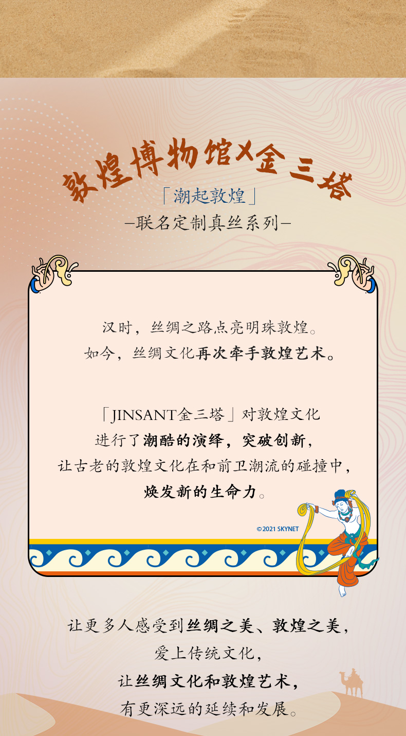 金三塔重磅真丝敦煌联名100%桑蚕丝时尚印花衣裤套新品可外穿 YSFCA202