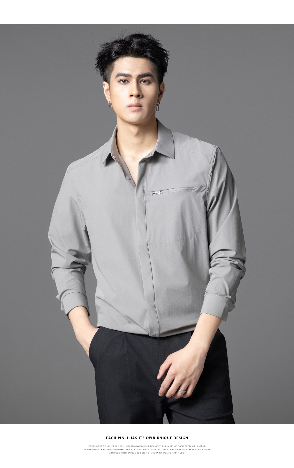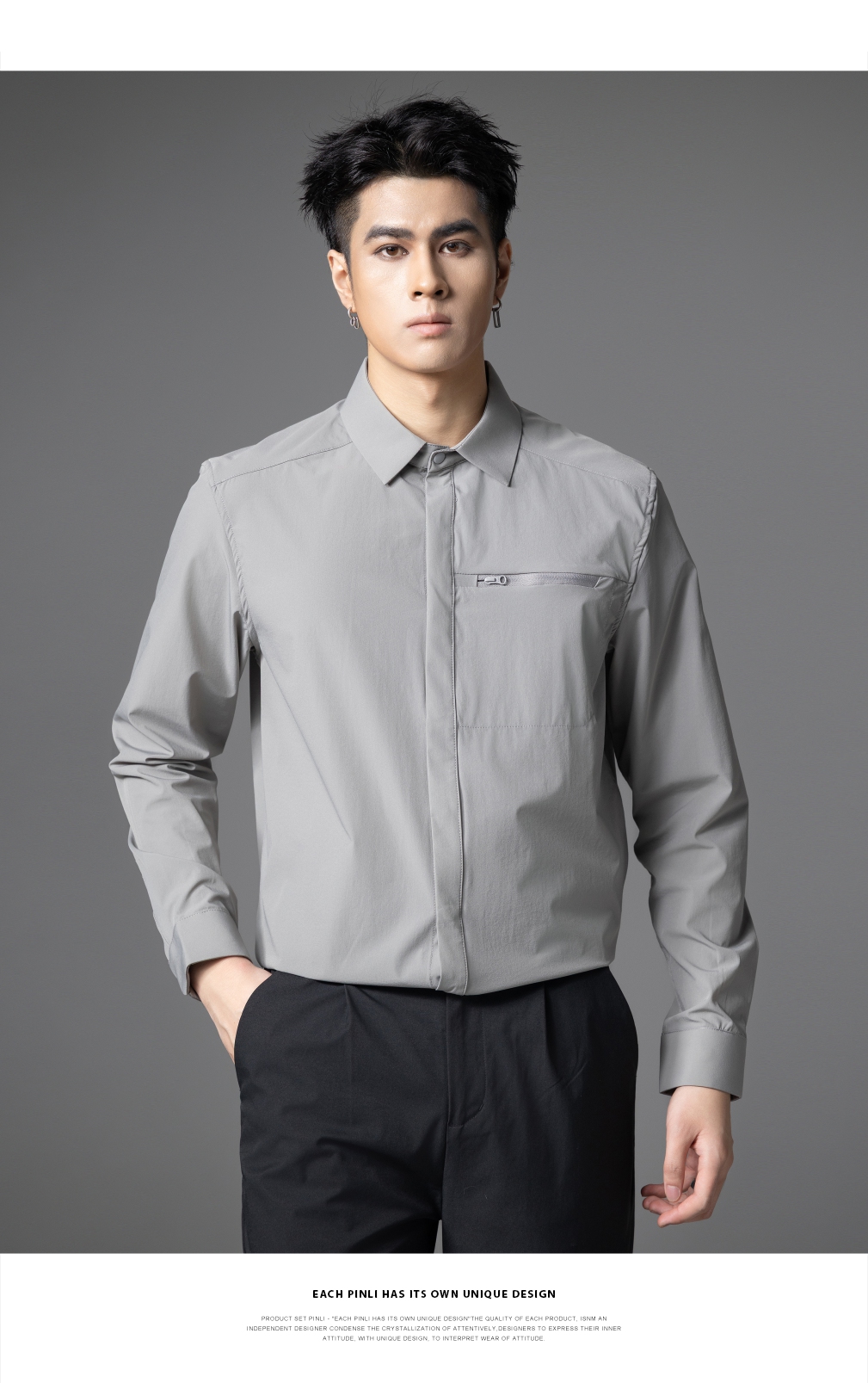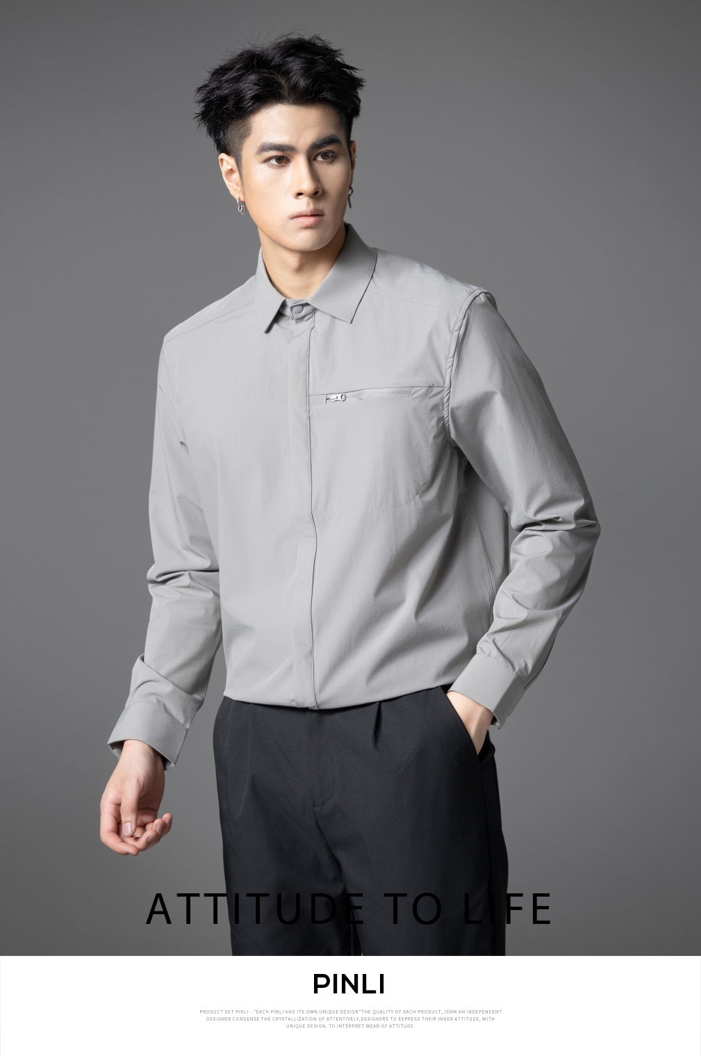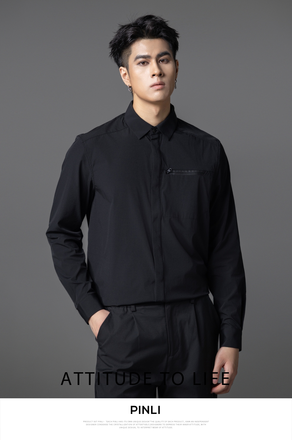 PINLI品立2025秋季新款商务百搭打底长袖衬衫潮牌宽松弹力衬衣男GD253113065