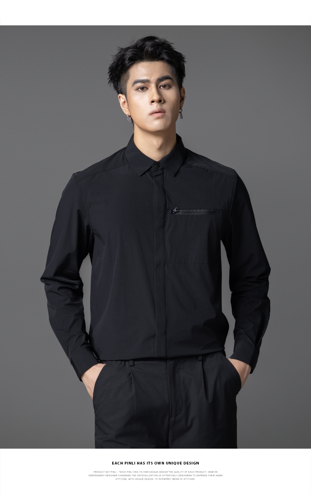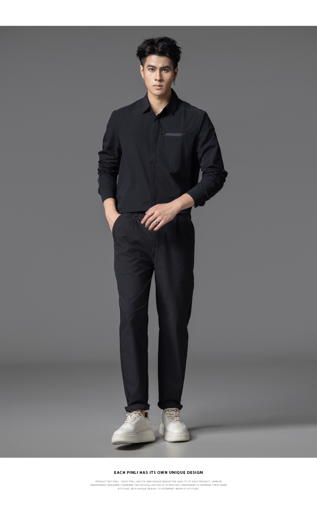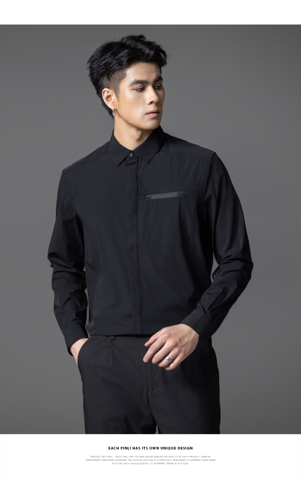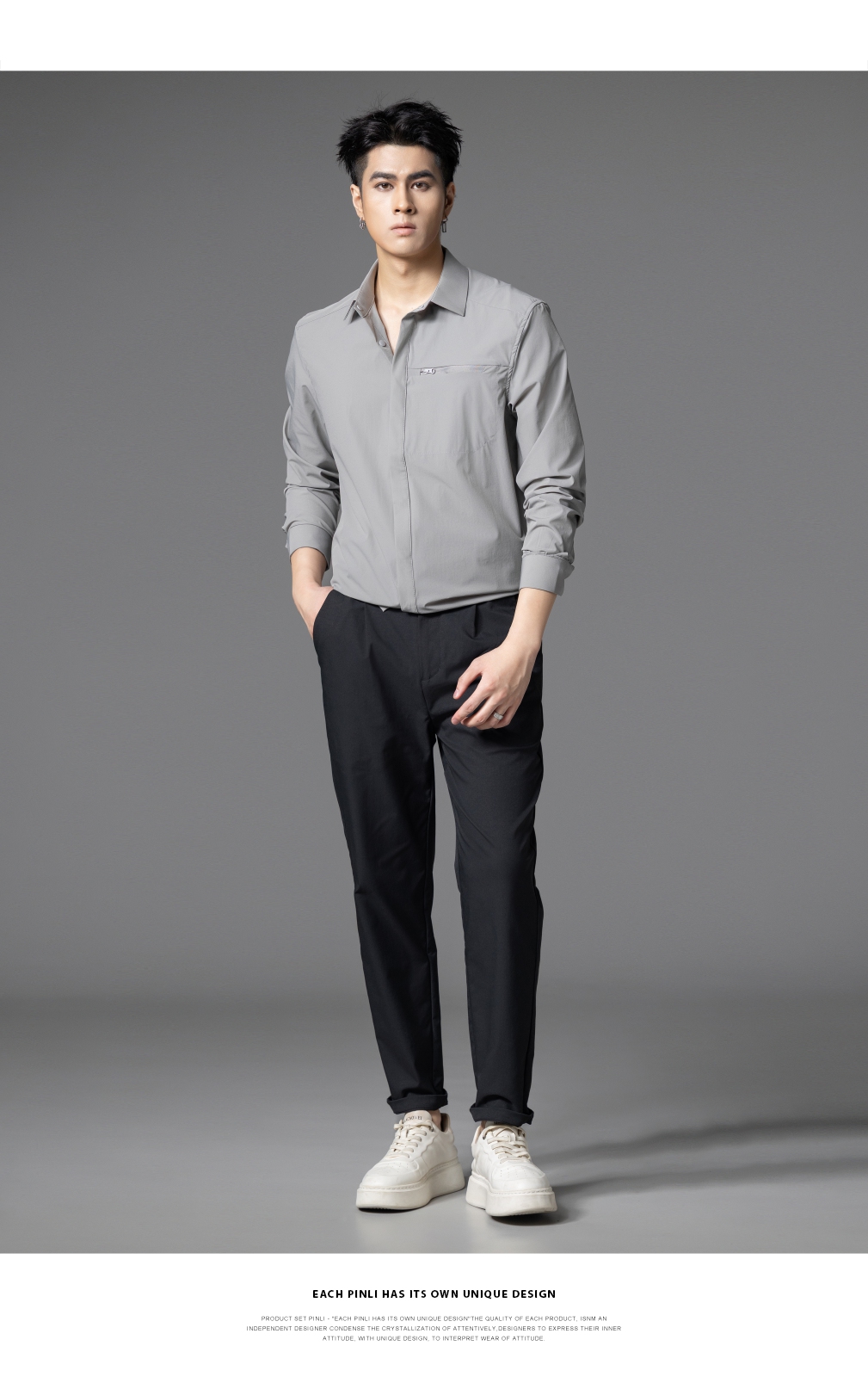 PINLI品立2025秋季新款商务百搭打底长袖衬衫潮牌宽松弹力衬衣男GD253113065