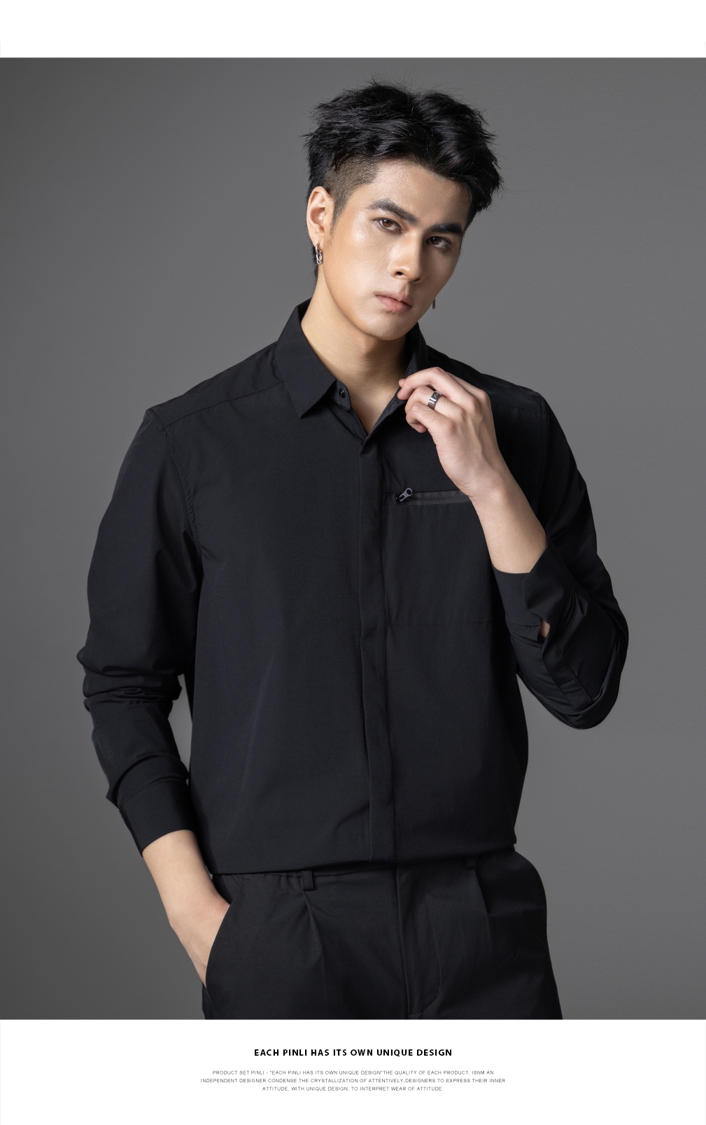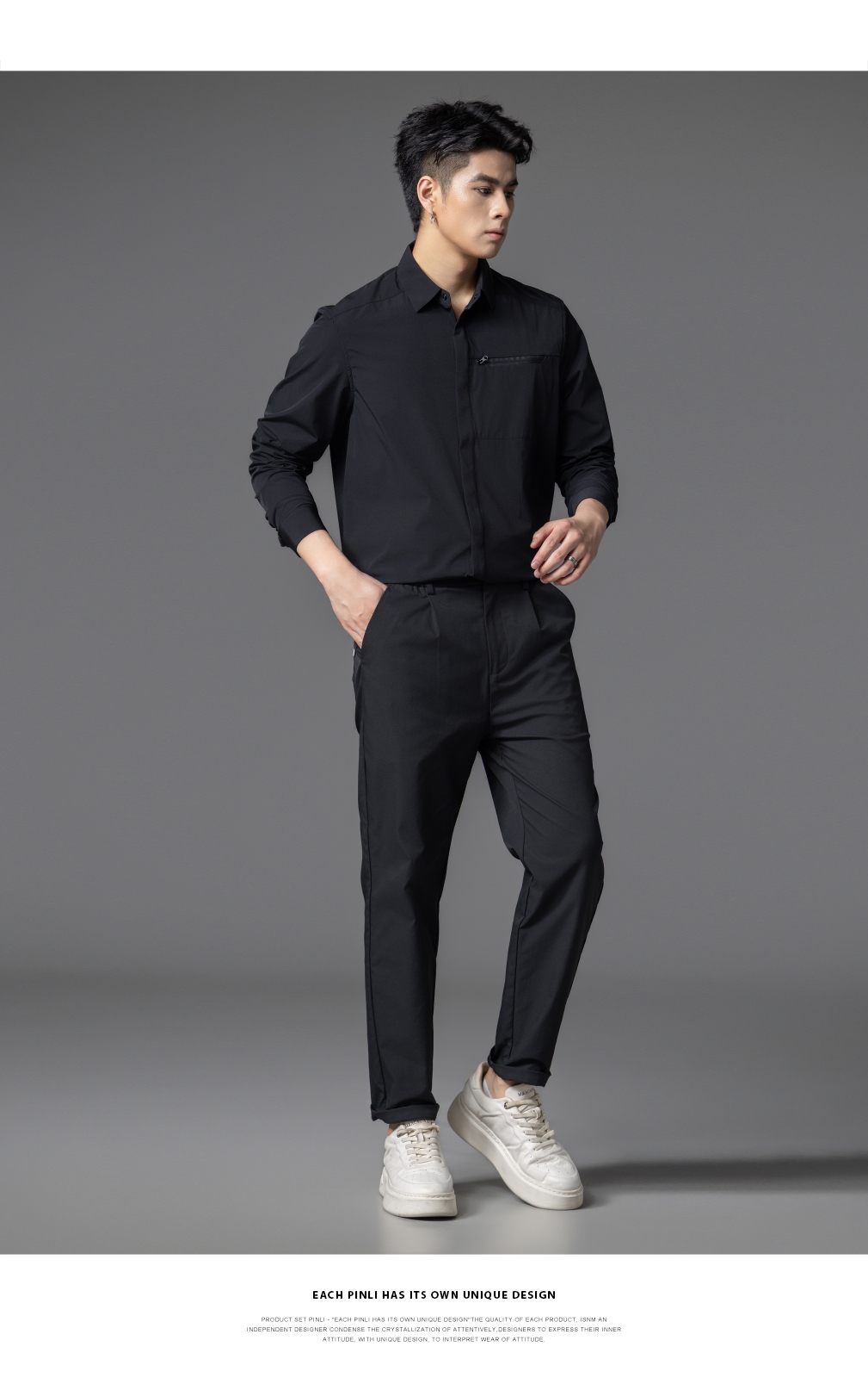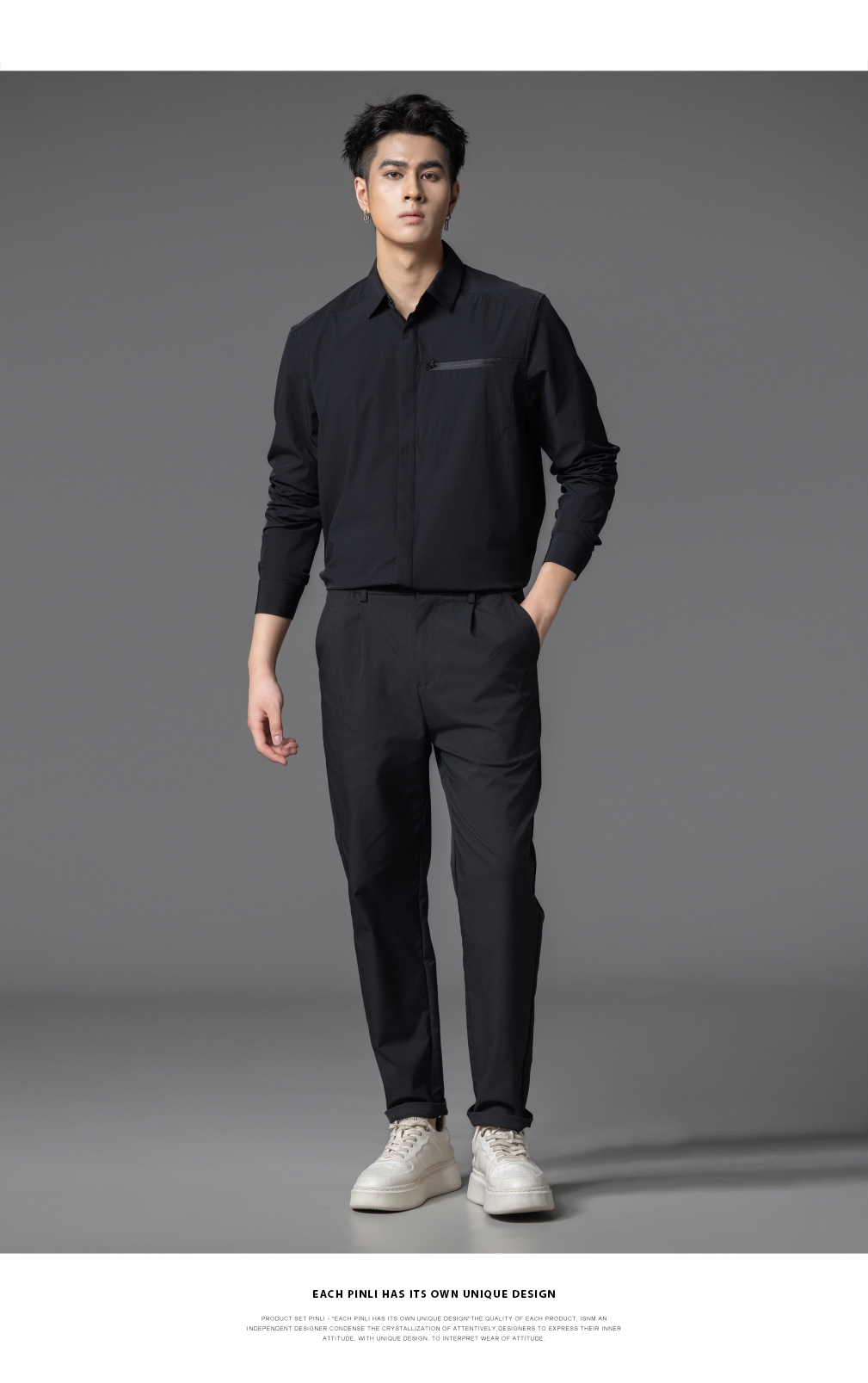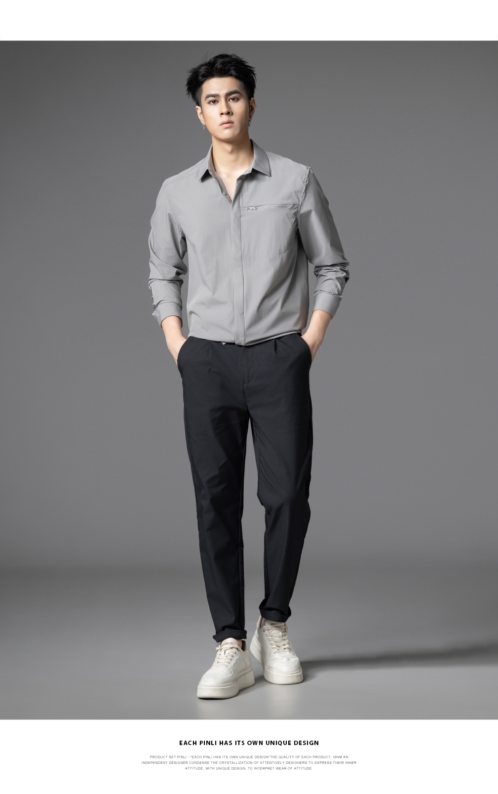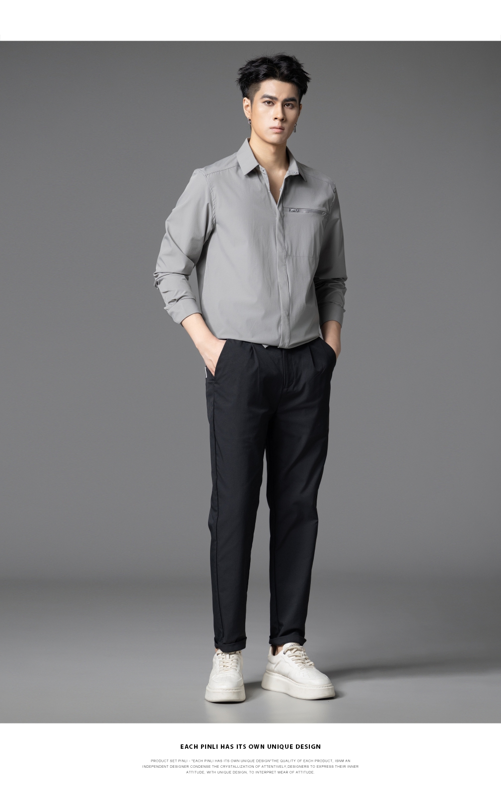 PINLI品立2025秋季新款商务百搭打底长袖衬衫潮牌宽松弹力衬衣男GD253113065