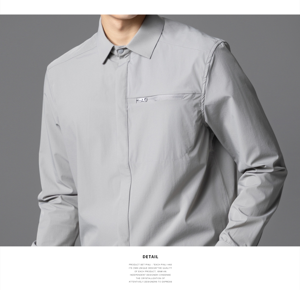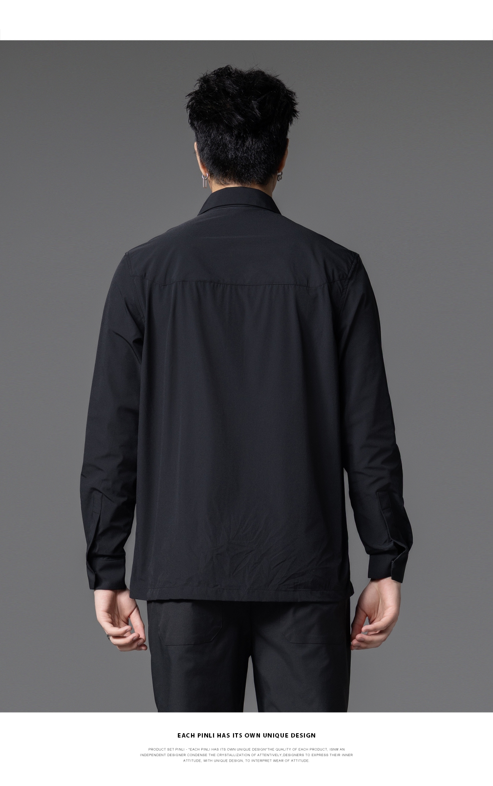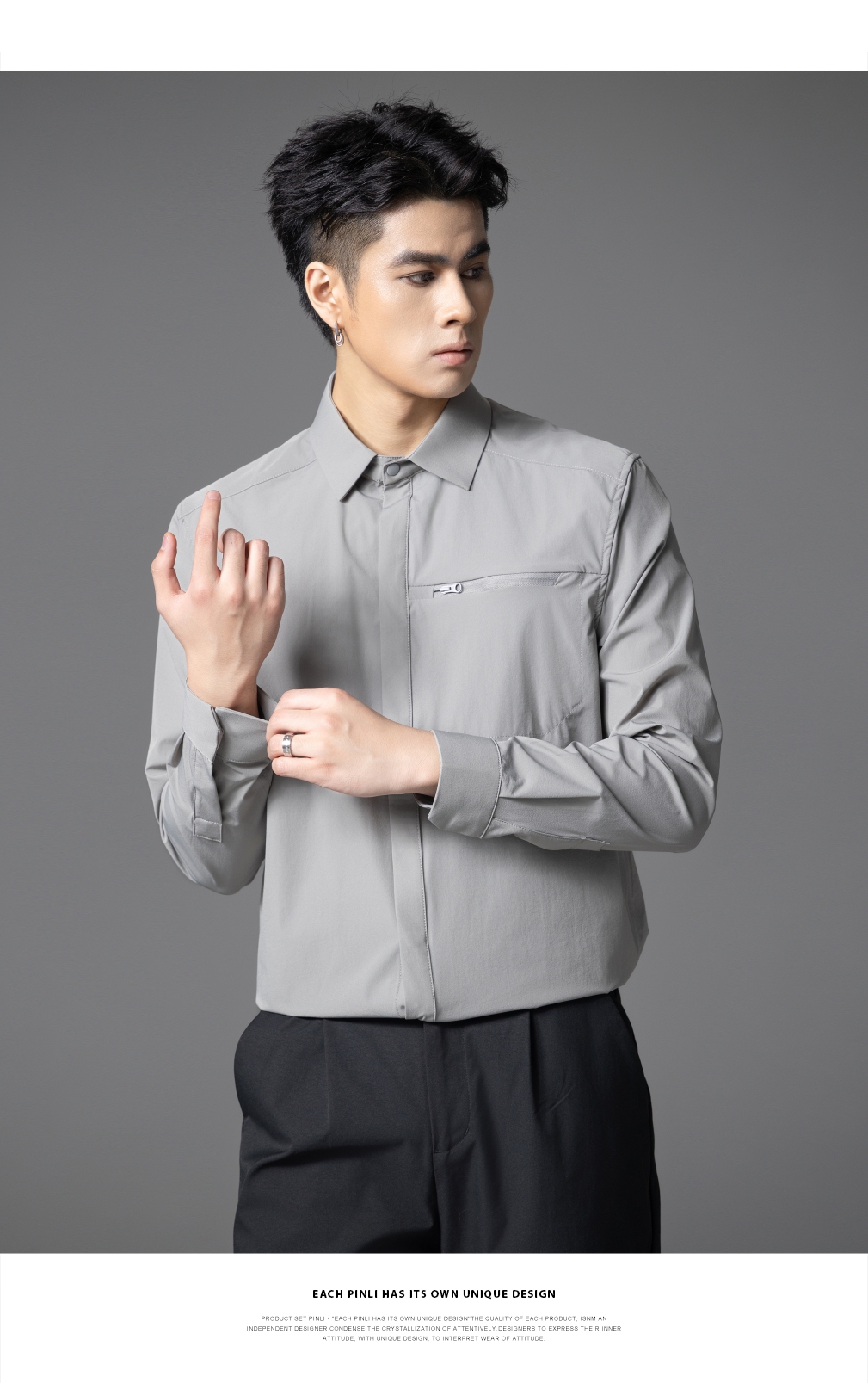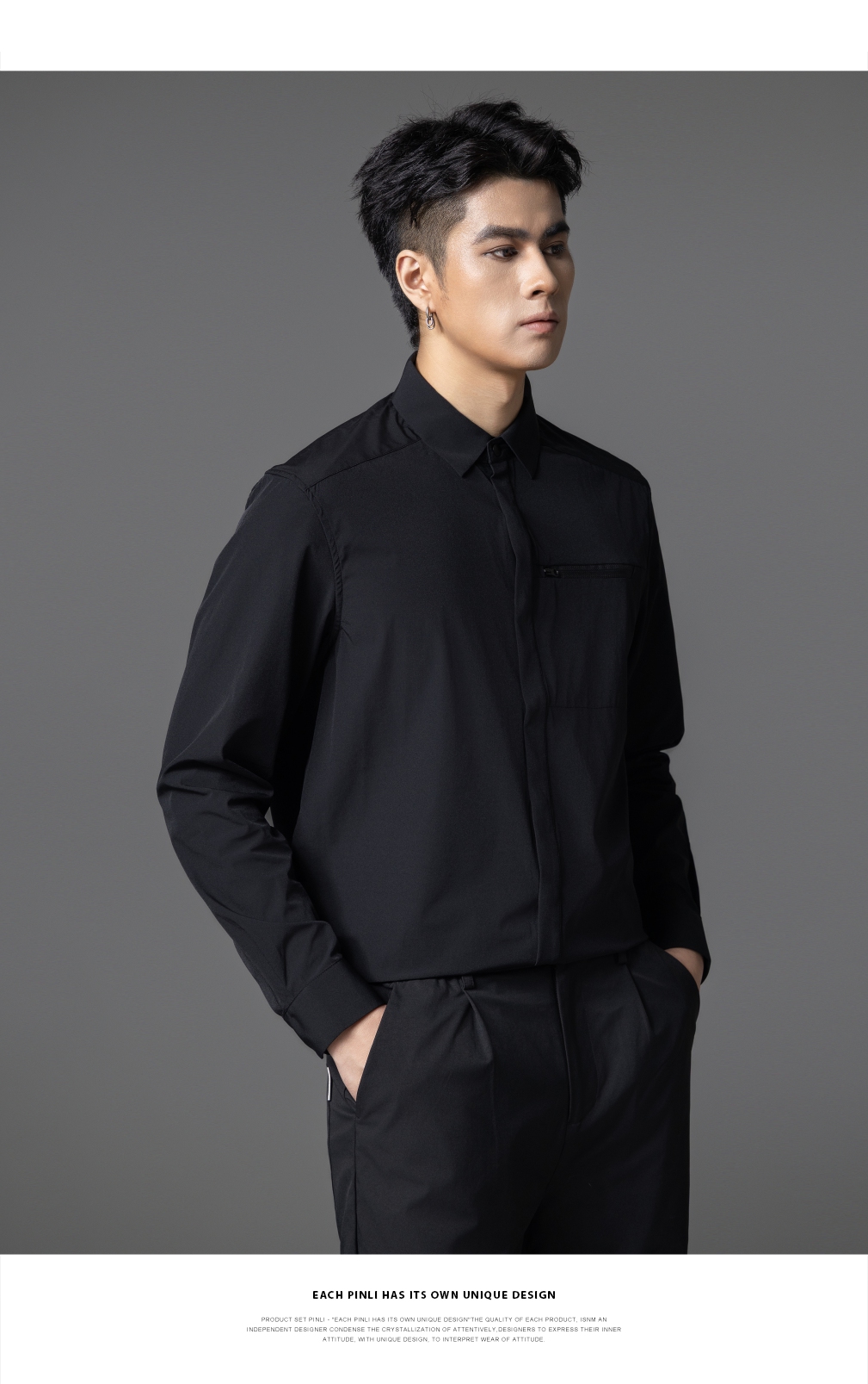 PINLI品立2025秋季新款商务百搭打底长袖衬衫潮牌宽松弹力衬衣男GD253113065